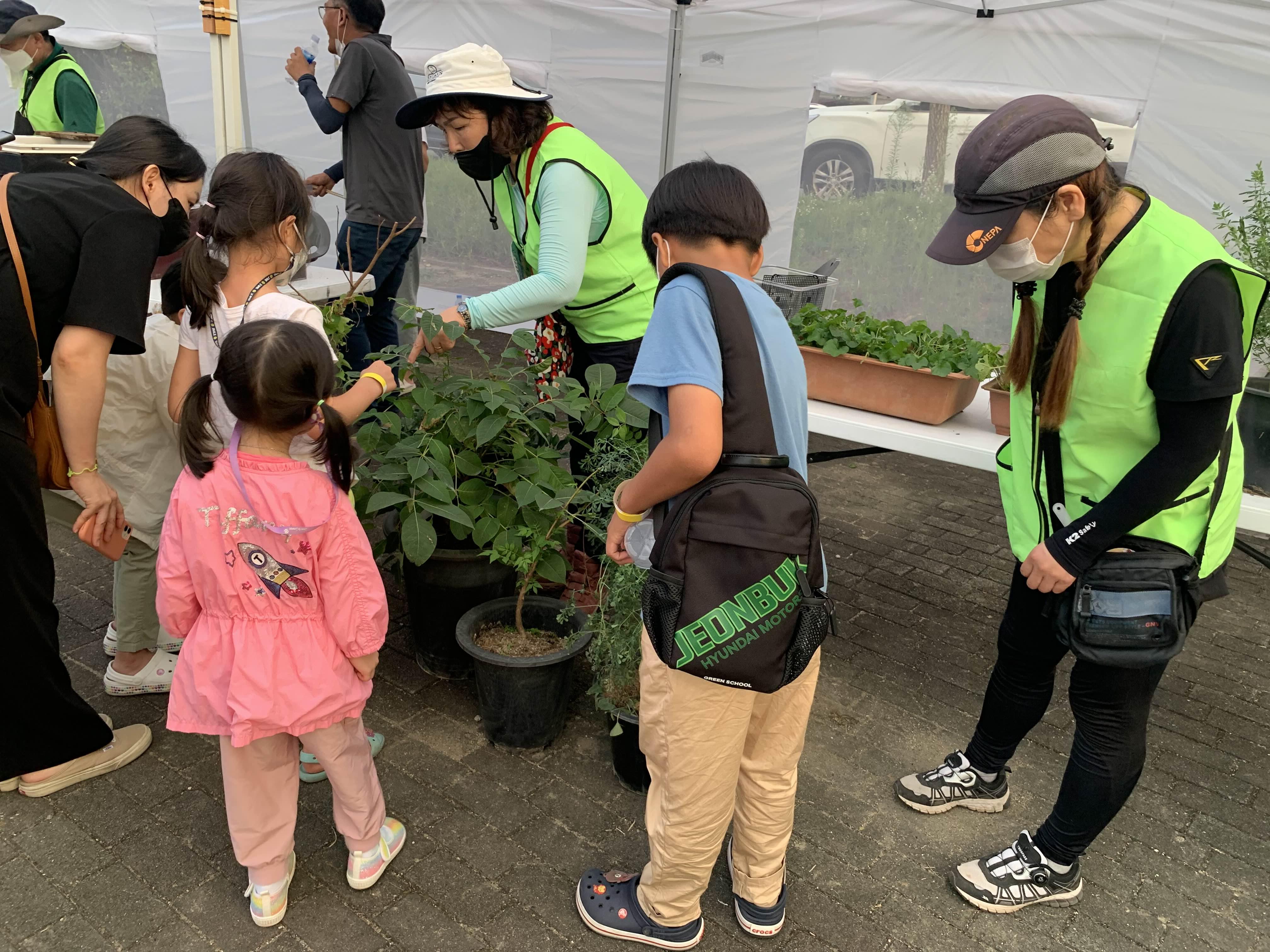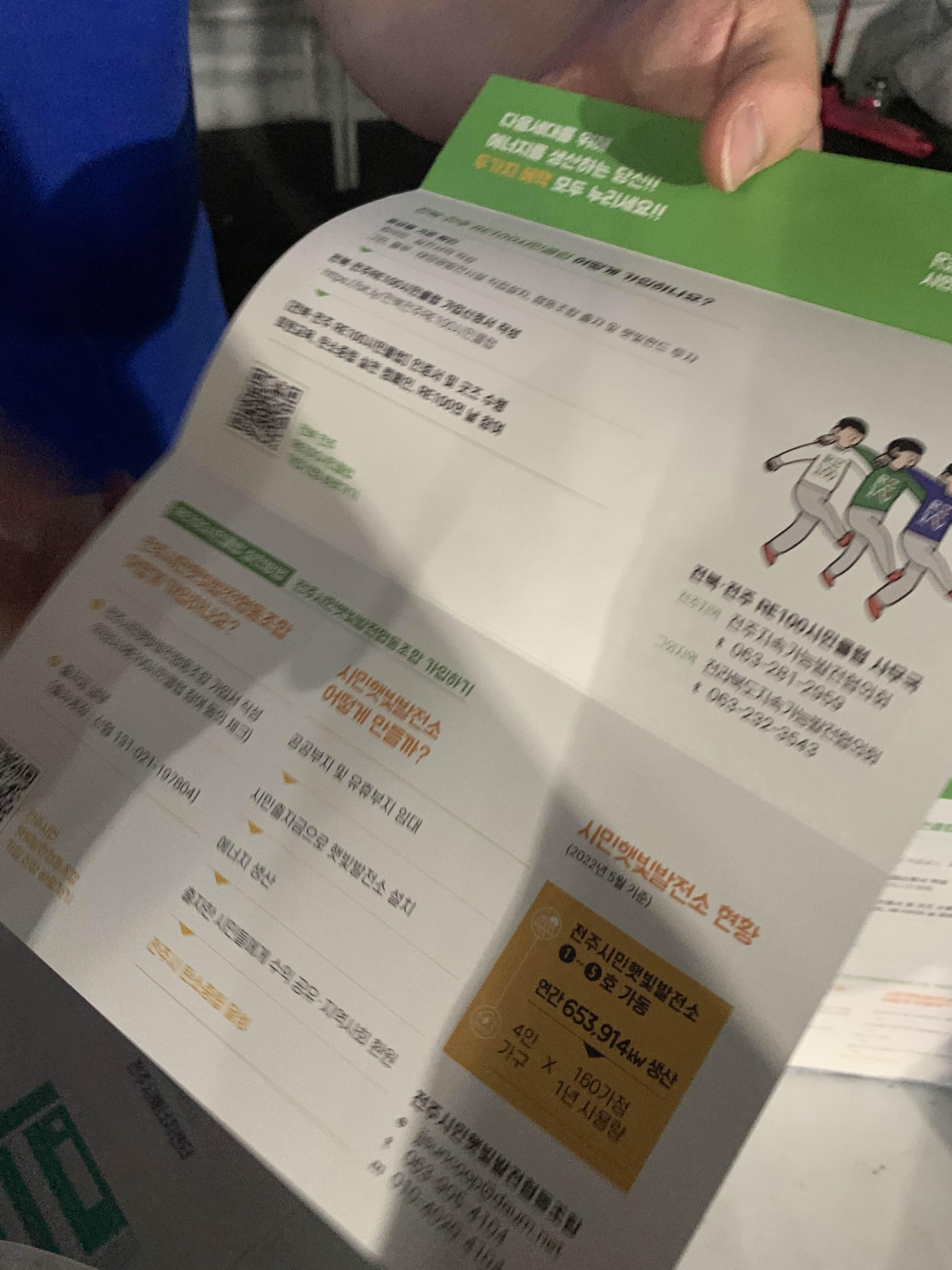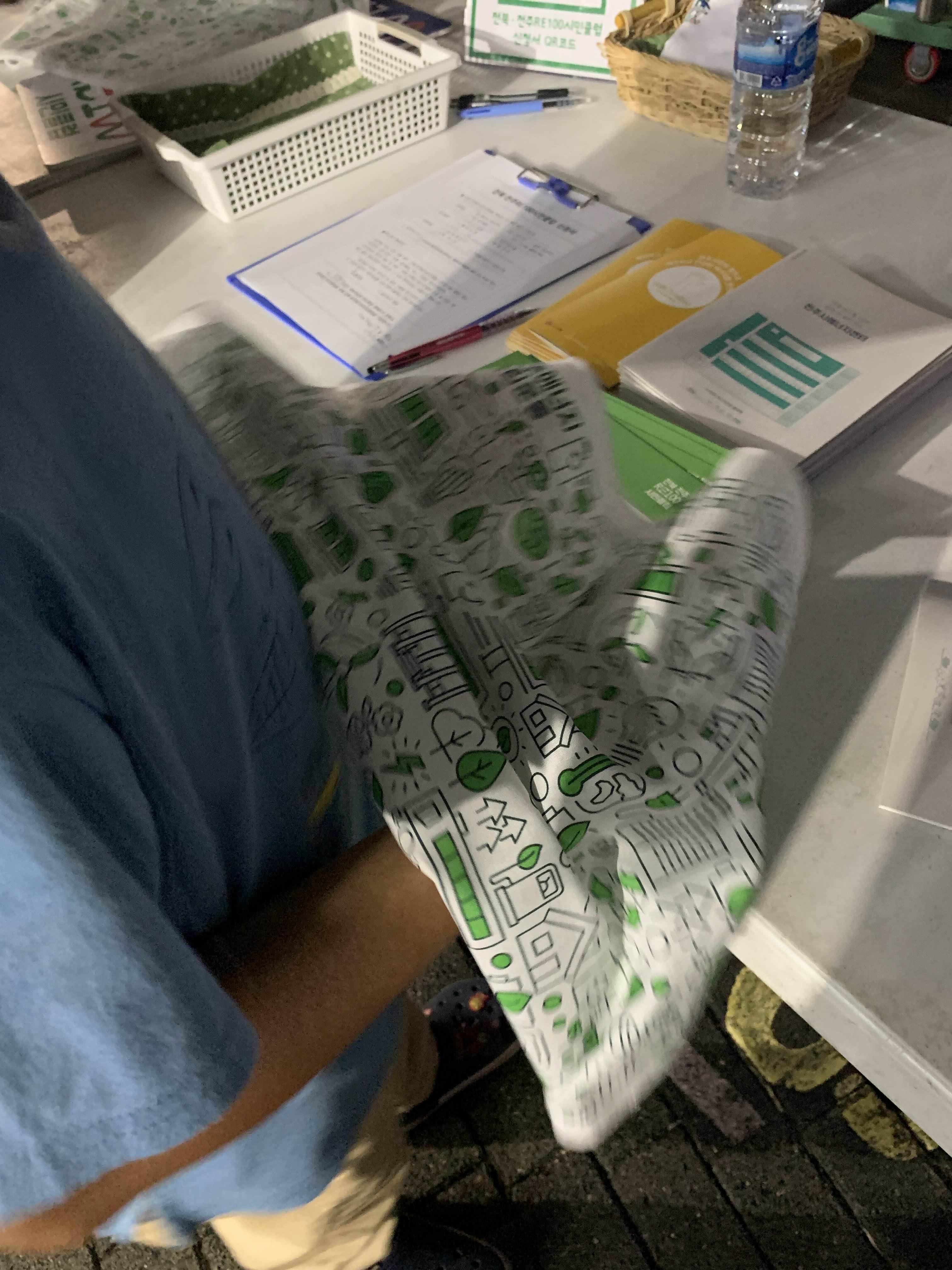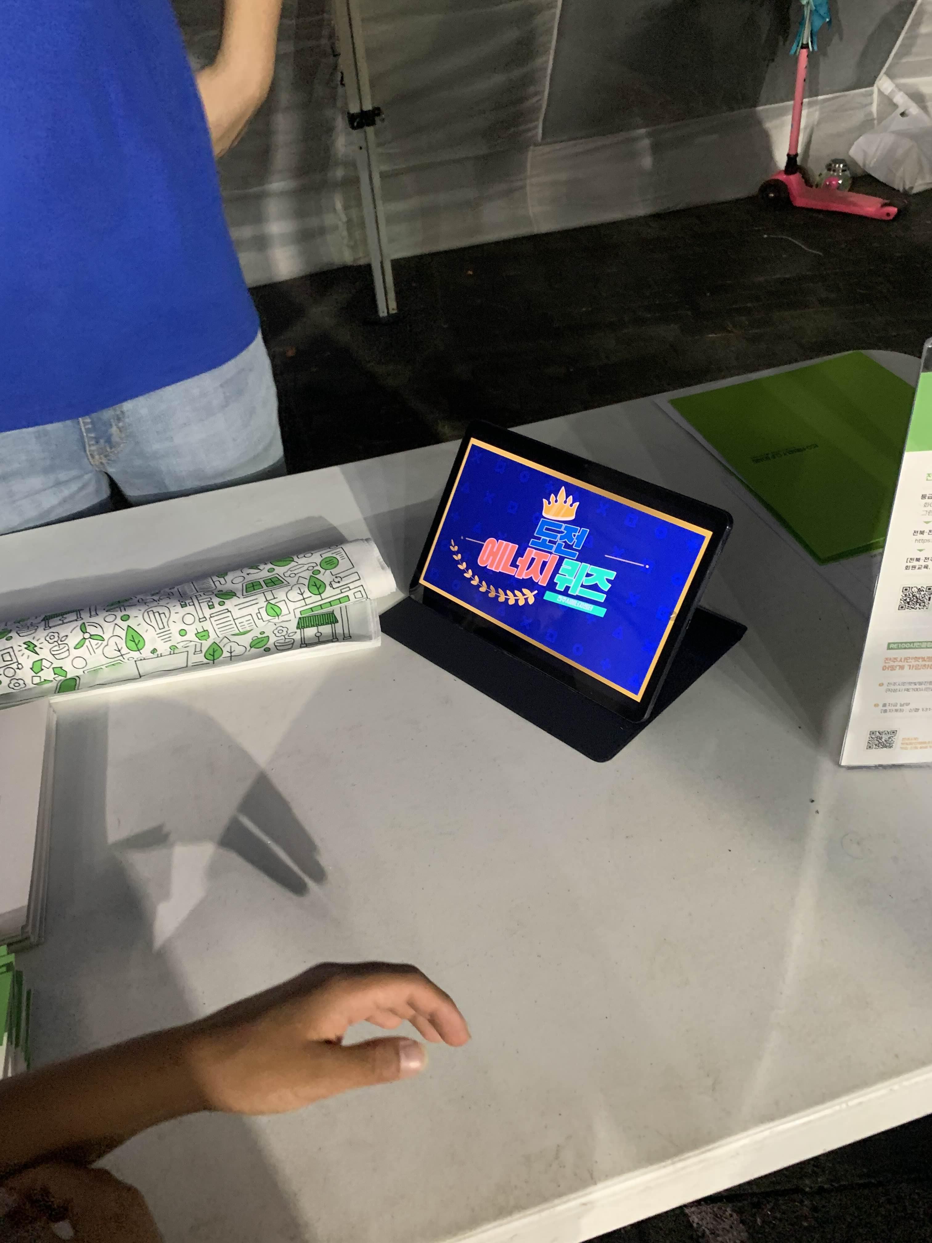 반딧불이 탐방버스 2회 차 버스를 기다리는 시간이 꽤 길더군요. 여기저기 돌아다니다 보니 전주시에너지센터에서 운영하는 부스가 눈에 들어오더군요. 신청하고, 퀴즈를 풀면 손수건과 기념 배지를 지급해주는데.. 아이가 기념품을 가지고 싶다 하여 참여하게 되었습니다. 퀴즈 시간이 꽤 길어서.~~~