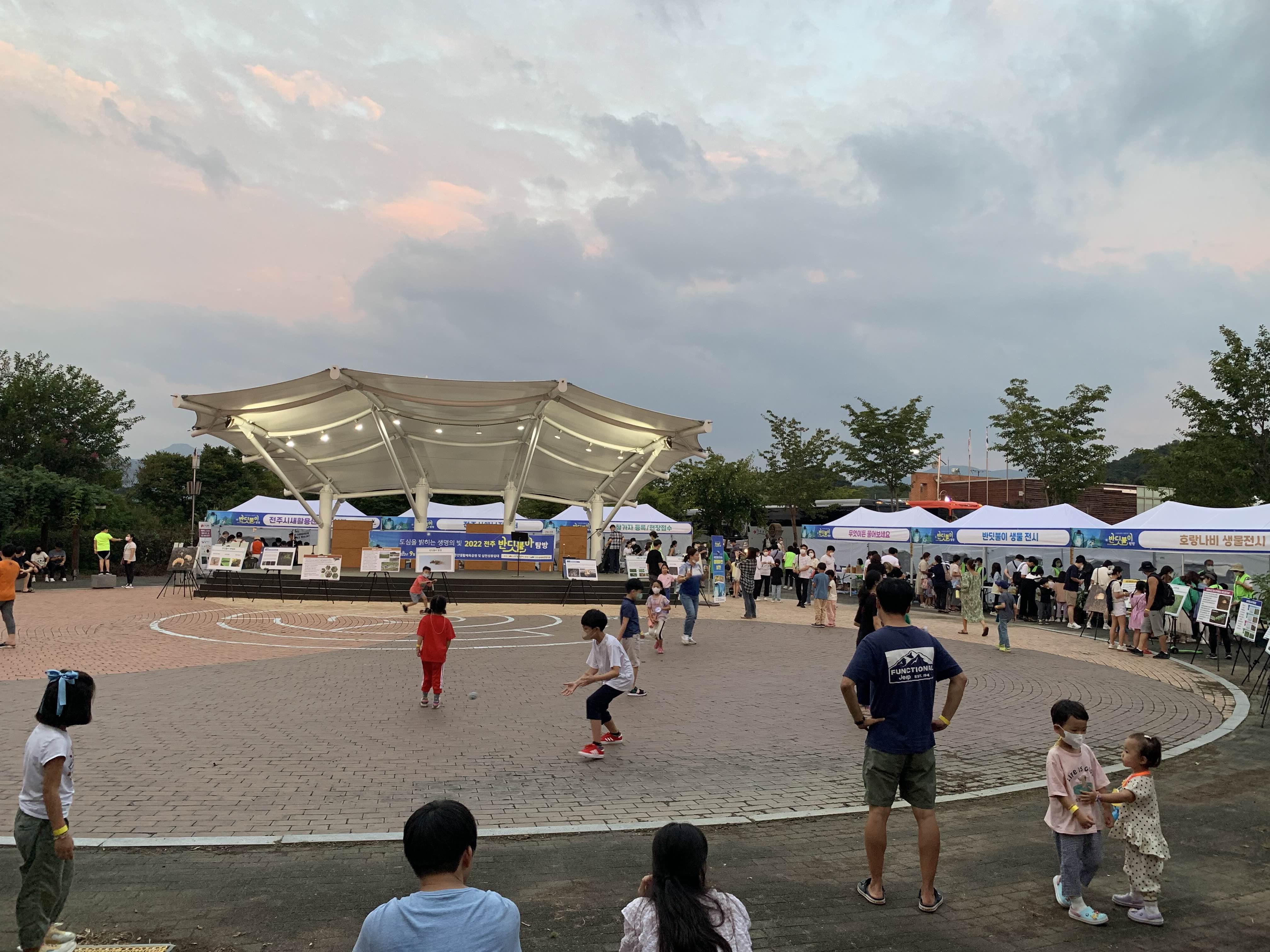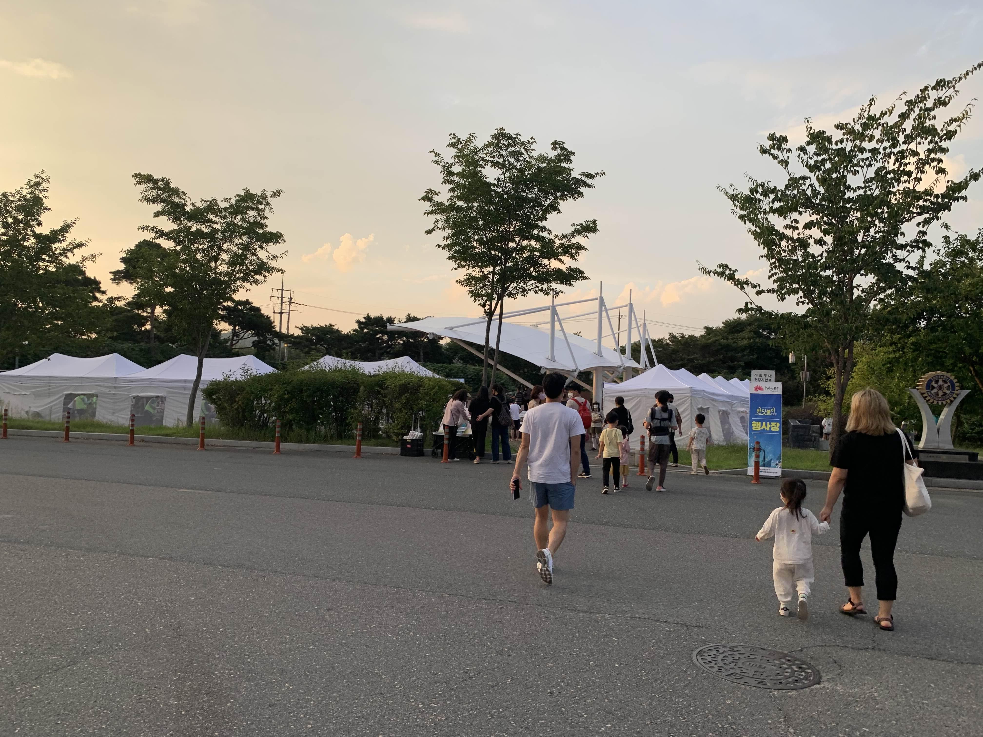 반딧불이 탐방은 저녁 6시부터 시작하여 8시 40분까지 운영하는 것으로 되어 있더군요. 우리 가족은 탐방장소에 6시 조금 넘게 도착했습니다. 행사장에 도착하니, 다른 참가인원들이 많이 도착해서 준비해온 도시락을 드시는 모습이 보이더군요. 이럴 줄 알았으면..... 치킨이라도 한마라 사 가지고 오는 것인데.
