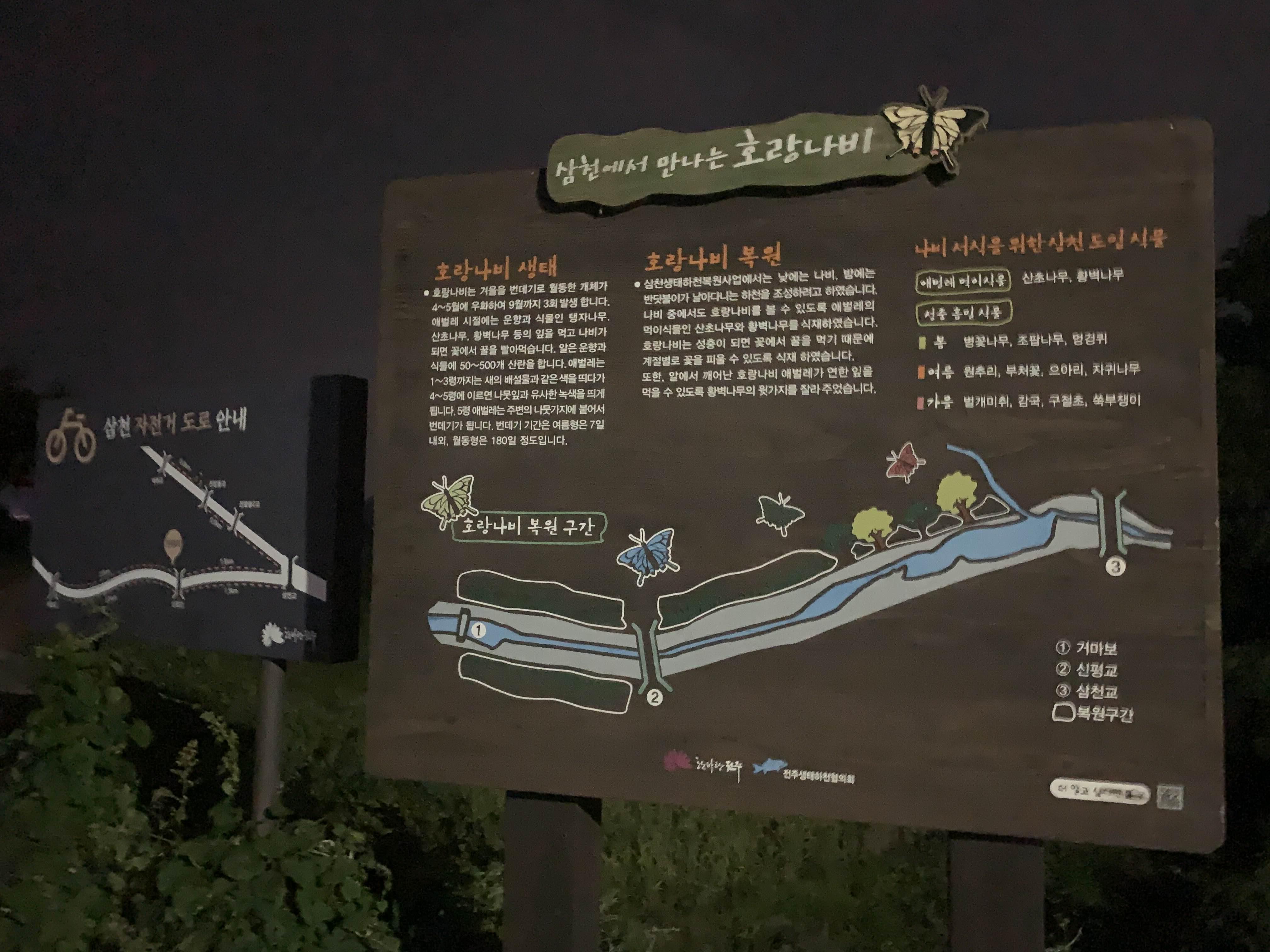 아 그리고, 버스에서 반딧불이 담방 기간에는 일반적으로 40~80개 정도의 반딧불이를 관찰할 수 있다고 하더군요. 아이와 함께 탐방하며 반딧불이를 몇 개 관찰했는지 세어보니 대략 60개 정도 관찰하였더군요. 지나가며 하나둘씩 보이는데... 신평교(목적지) 근처로 가면 갈수록 많이 관찰되더군요.