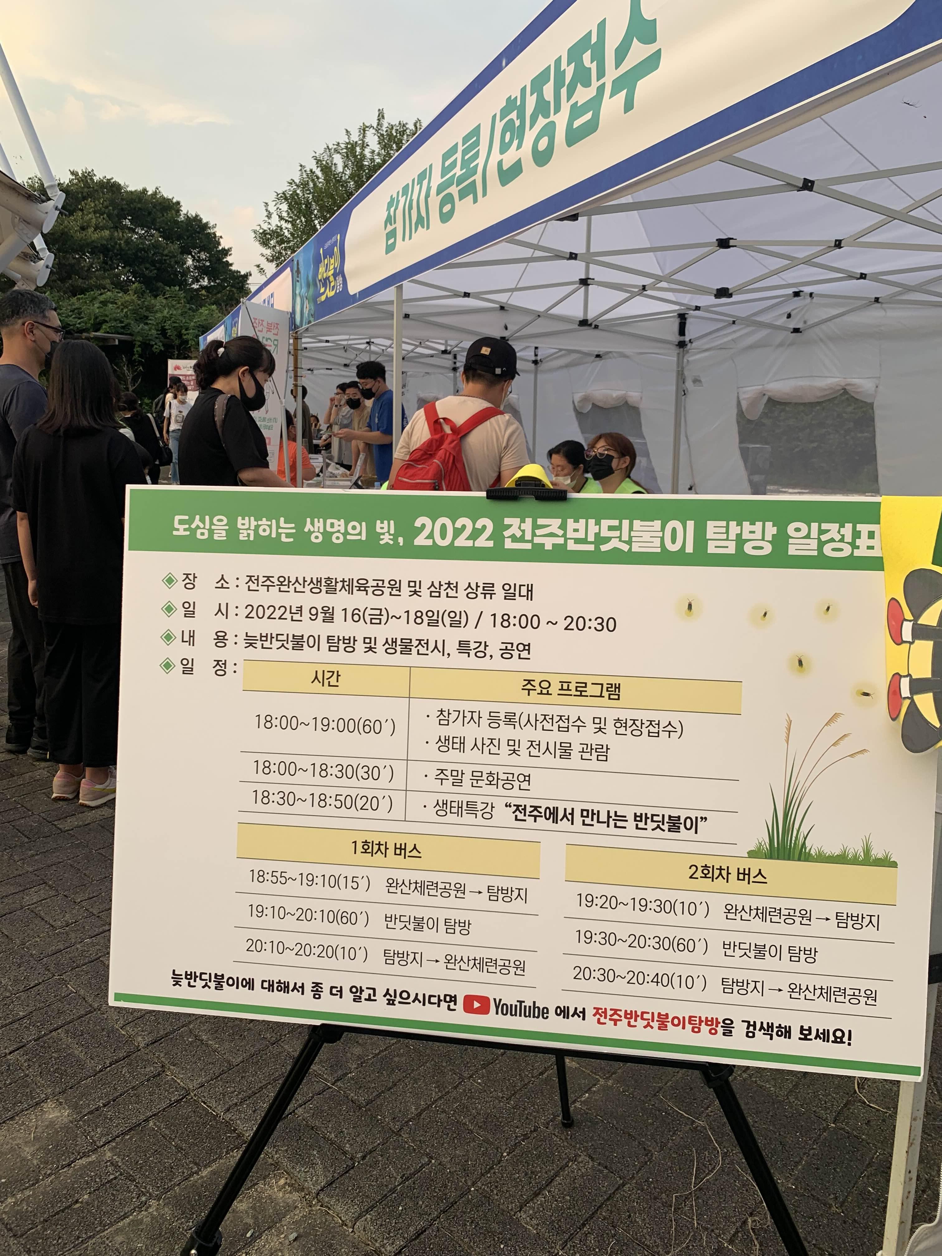 무주가 아닌 전주에서 반딧불이 축제를 한다고 해서 방문하였습니다. 축제는 아니고, 전주시에서 운영하는 탐방 프로그램으로 아이들과 함께 체험하면 좋을 것 같아서 신청하게 되었습니다.