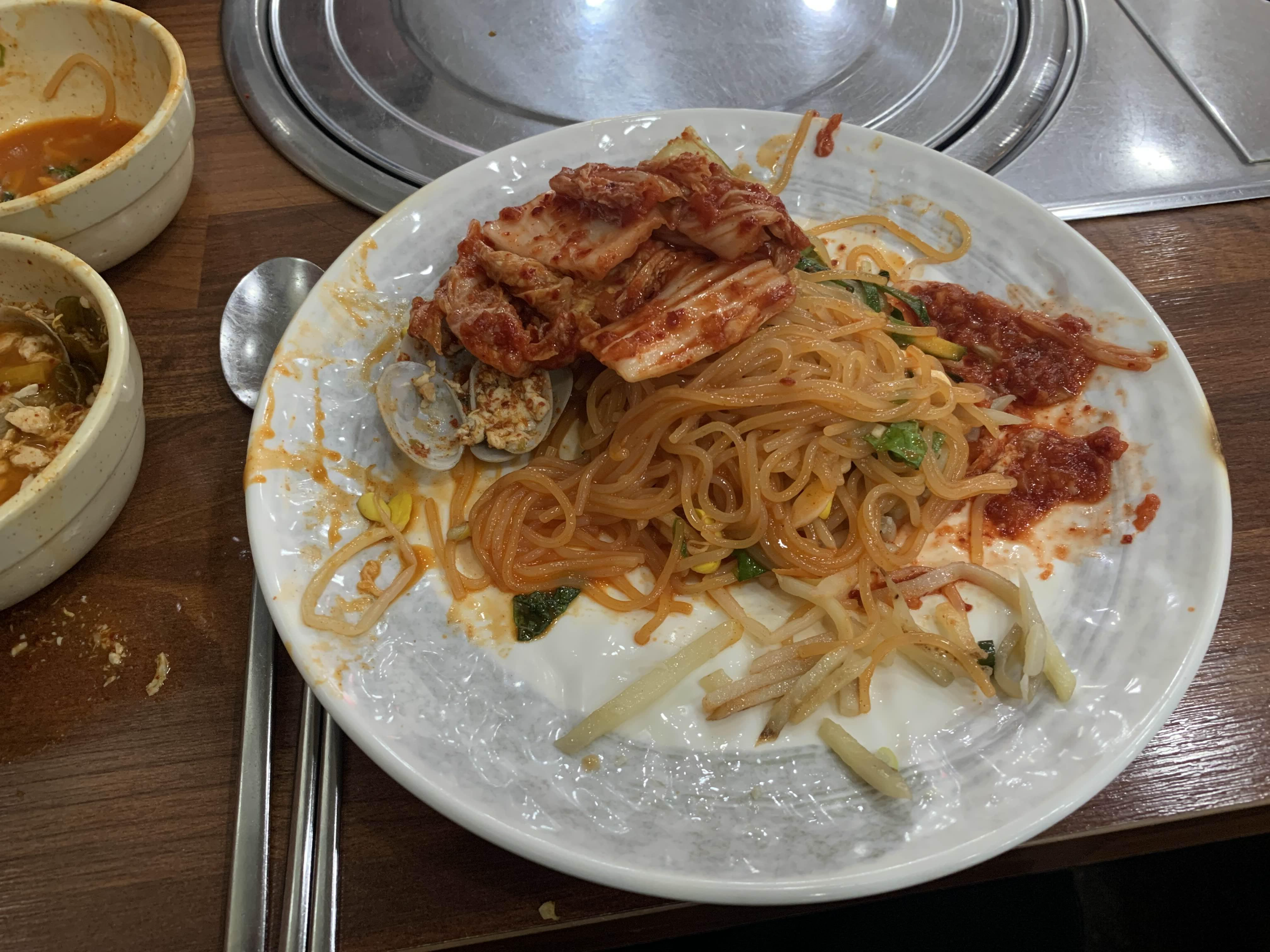 반찬 중 쫄면이 그나마 괜찮아.. 추가로 가져다 먹었습니다. 그 외 밥과 순두부... 추가 추가!!