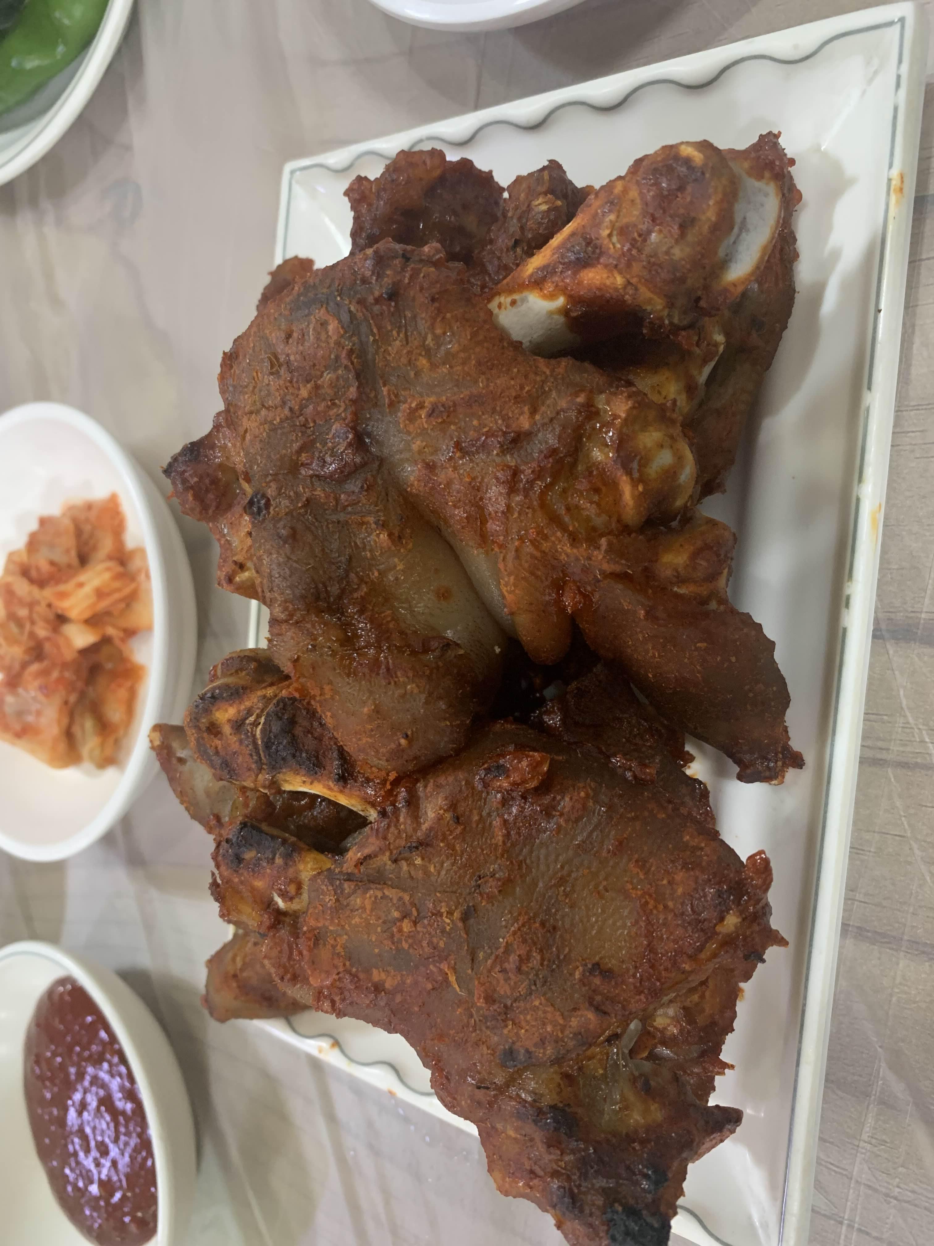 전주에서 유명한 족발!!! 요즘 족발 프랜차이즈가 많이 있지만, 단일 메뉴 족발은 판매하는 식당은 가운데 집이 유일할 것입니다. 예전에 유명했고, 지금은 유명하나? 나에게는 매우 친숙한 메뉴입니다. 식당에 방문하면... 메뉴 선택은 당연 족발!! 매운맛 하나와 보통맛 하나로 주문해주었습니다. 보통맛을 주문해서... 매운맛 소스를 찍어먹어야 매운 조절이 가능함.ㅎㅎ