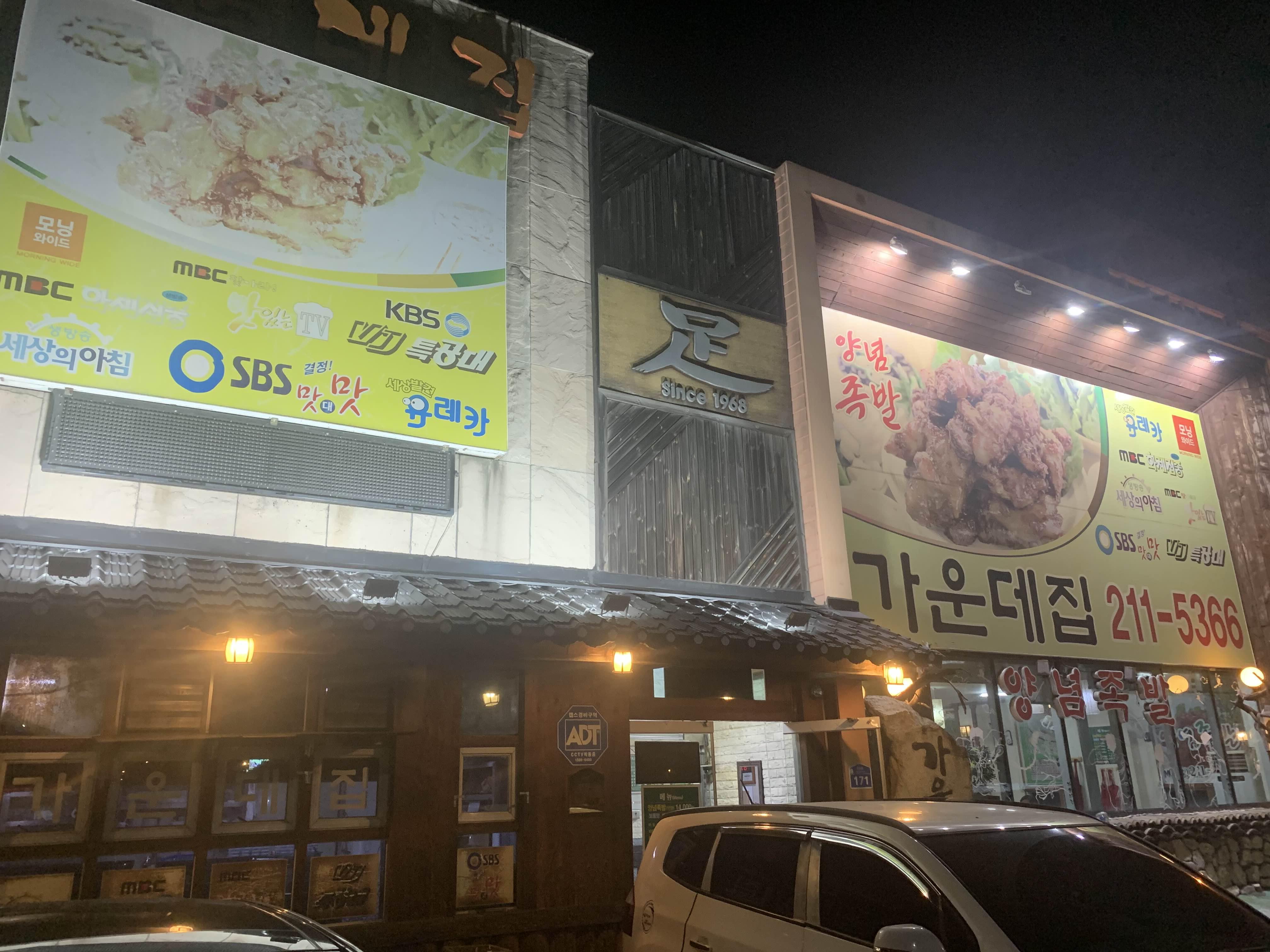 전주 팔복동 추천대교 근처에 위치한 가운데 집입니다. 여기에 족발집 3개가 있는데, 그중 가운데에 있습니다. 예전? 가운데 집은 1970~80년대 전주 천변에 테이블 설치하고 식사를 했는데,