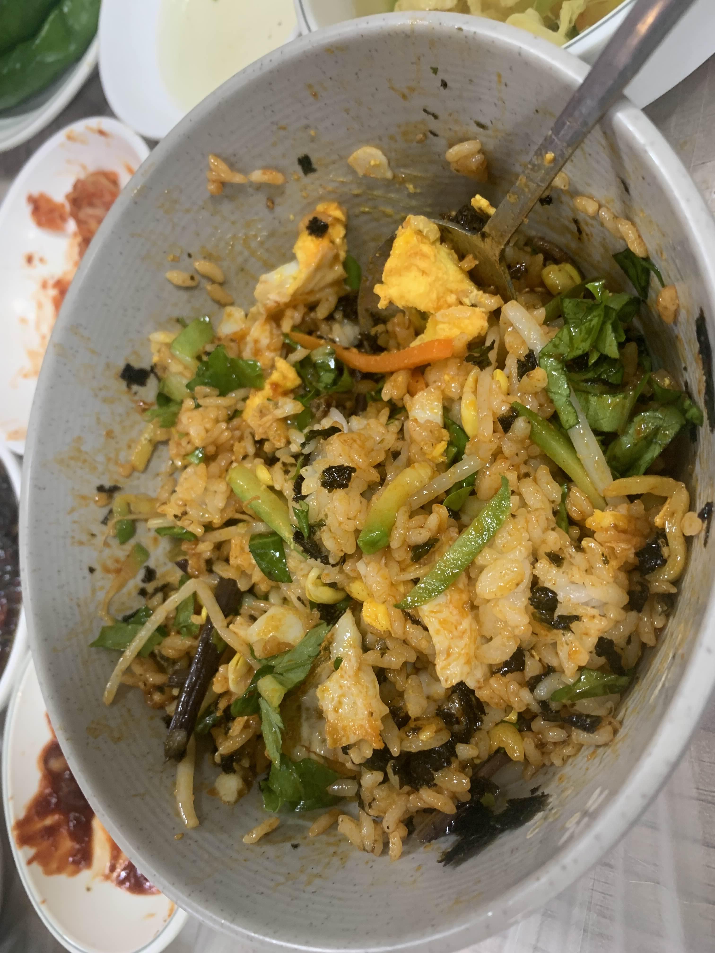 나의 후식은 비빔밥!!! 전주비빔밥이 유명한데... 나에게는 여기 비 밤 빕 아 가장 맛난 거 같다. 가격 대비 비교해보면(물론 후식으로 먹어야 하는 비빔밥이긴 하나) 비빔밥과 함께 먹는 깻입 김치!