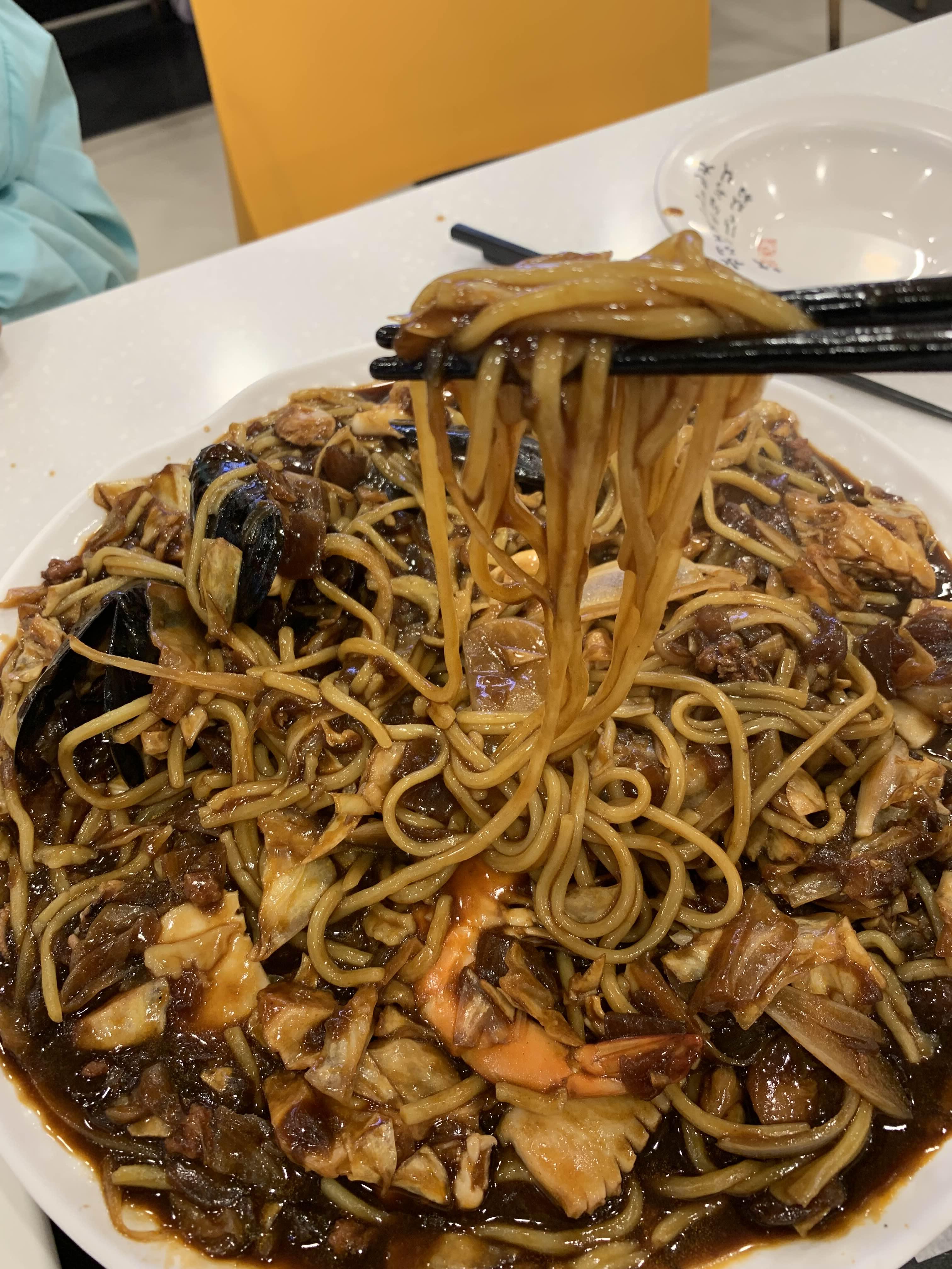 주문한 해물 쟁반짜장이 나왔는데... 살짝 매콤한 고추기름 맛이 나도건요. 짜장을 볶았다기보다는, 짜장 스푸를 이용한 물로 끊인 짜장라면 스타일이더군요. 놀이동산에 있는 음식으로는 나름 먹을만한 음식이더군요. 쟁반짜장은 어린아이가 먹기에는 좀 매콤합니다. ㅎㅎ