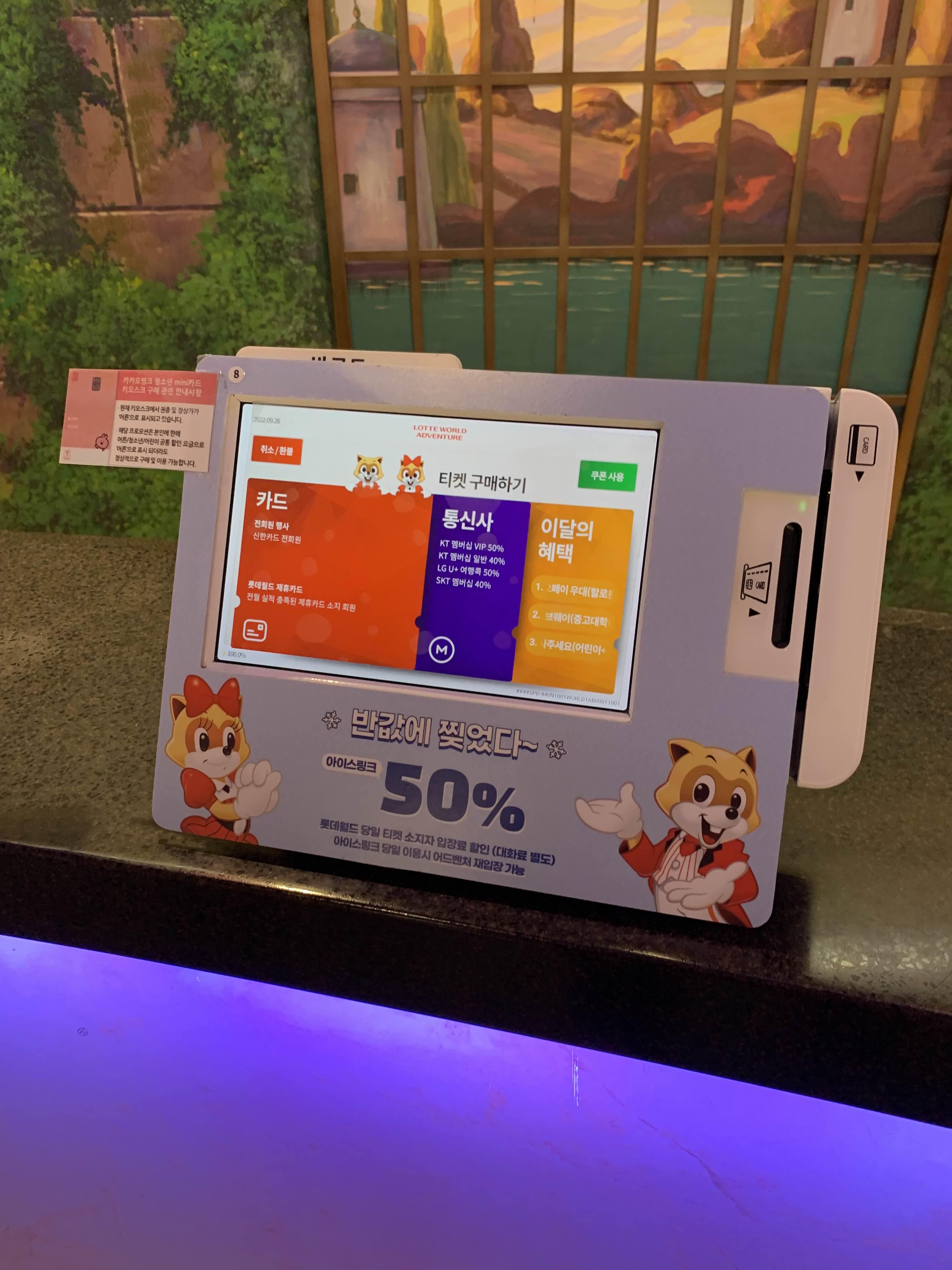 롯데월드 자유이용권 티켓 요금은 종일권은 62,000원, 4시 이후권은 50,000원입니다. 오전 중에 병원 진료 후 방문하는 롯데월드는... 5만 원(카드 할인 50%로 2.5만 원) 입장권 구입하여 롯데월드 입성!!