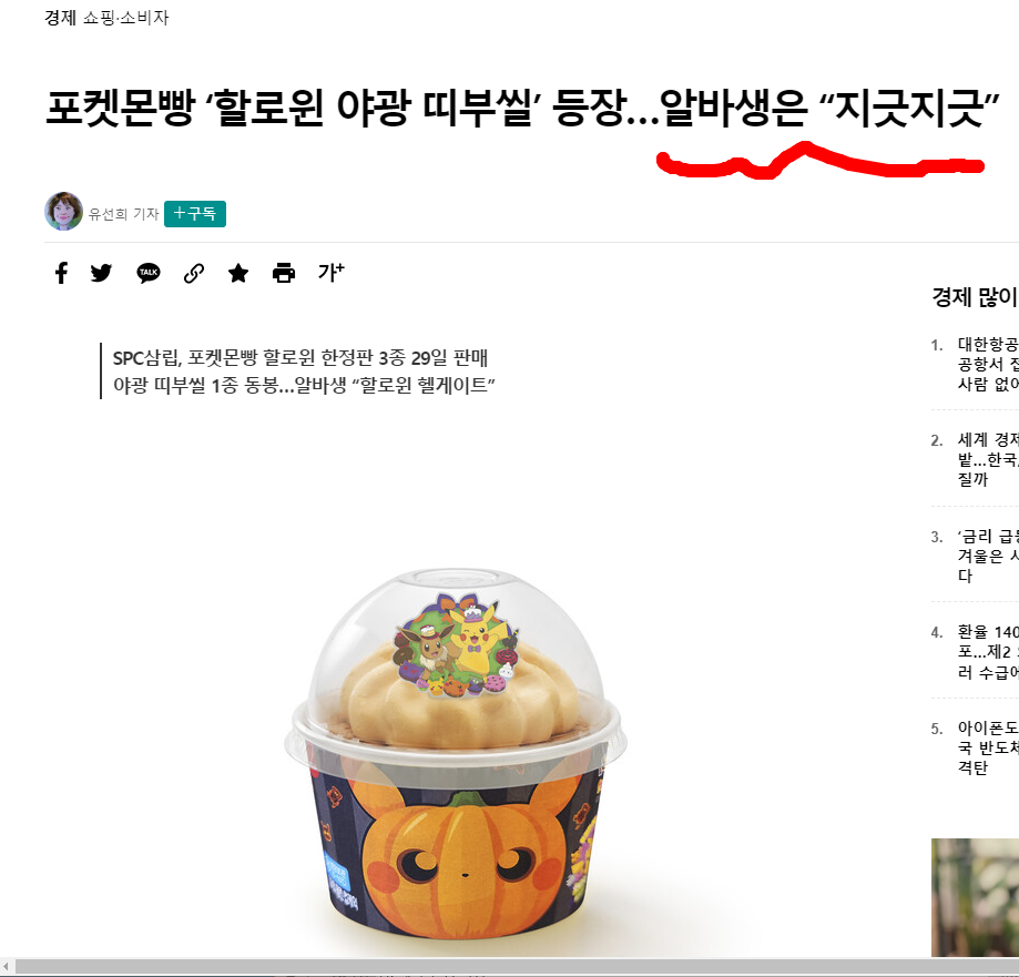포켓몬빵 핼러윈 야광 띠 부실 출시되었다는 관련기사이다. 기사 제목은 "또 시작된 개미지옥"이라는 글이다. 고객에게 재미있는 추억을 선사할 수 있어서..... 기쁘다는 기획자의 이야기와 다르게.... 되팔이들의 재미있는 추억을 남겨주고 있다.