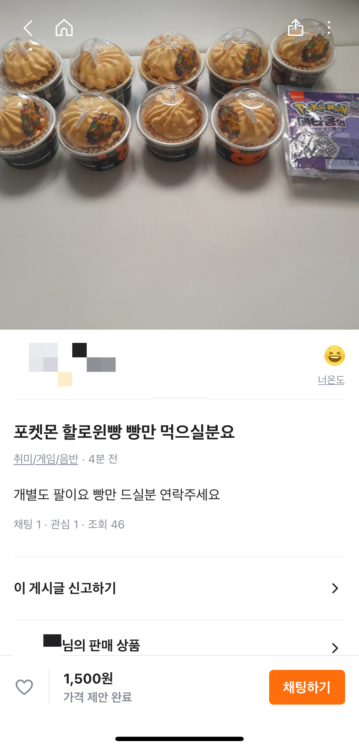 포켓몬빵을 개봉하여 핼러윈 띠부씰을 판매자가 가지고.... 빵만 판매한다는 글이다.