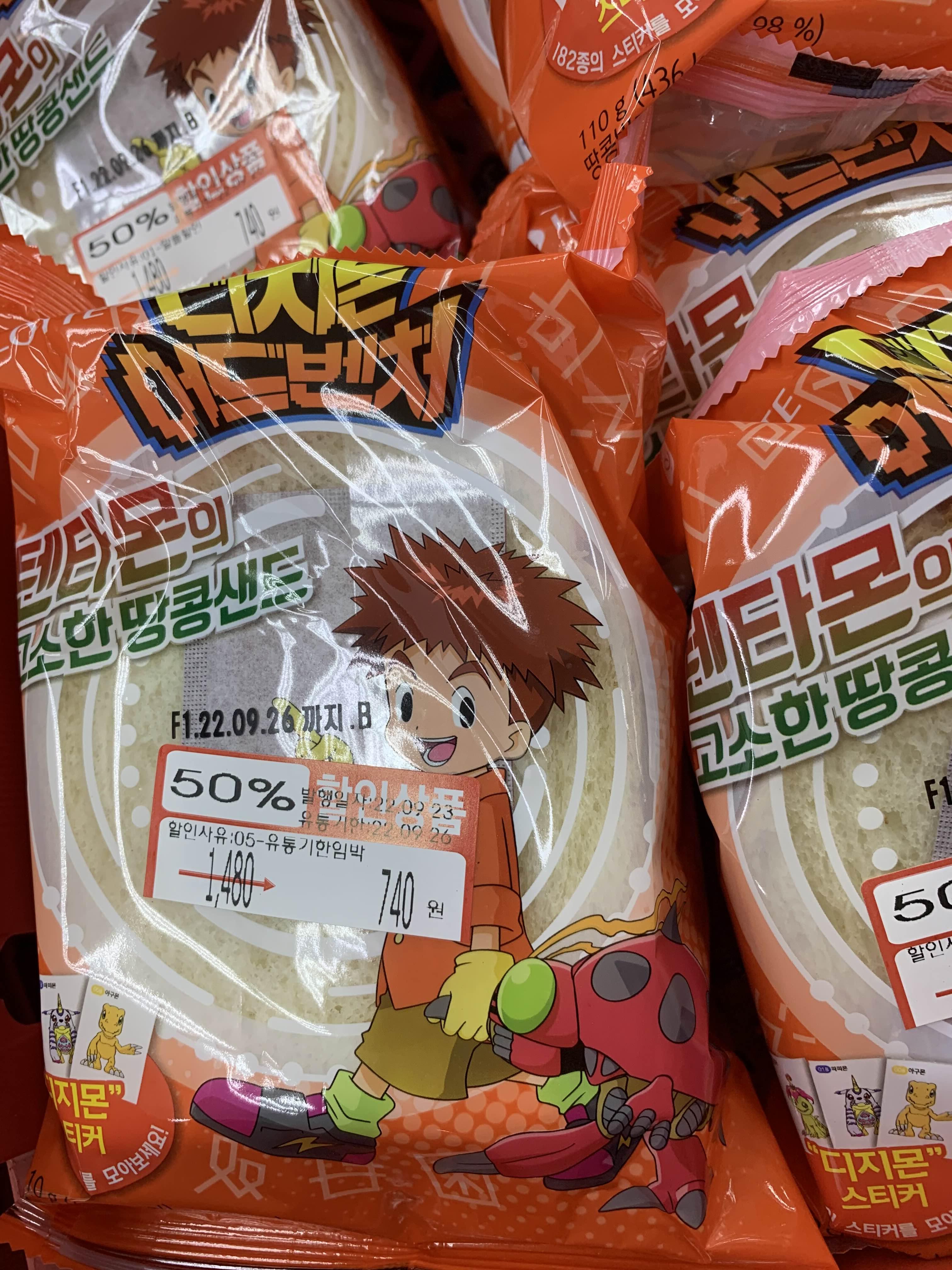 대형마트 지하에 진열 중인 디지몬 빵... 빵이 맛이 너무..... 그래서 구매하지 않는다. 포켓몬빵 먹기에도.. 속이 울렁거린다. 뮤/뮤츠를 뽑기 위해 포켓몬빵을 구입하고 있는데... 조만간 포켓몬빵도 구입하지 않을 것 같다.
