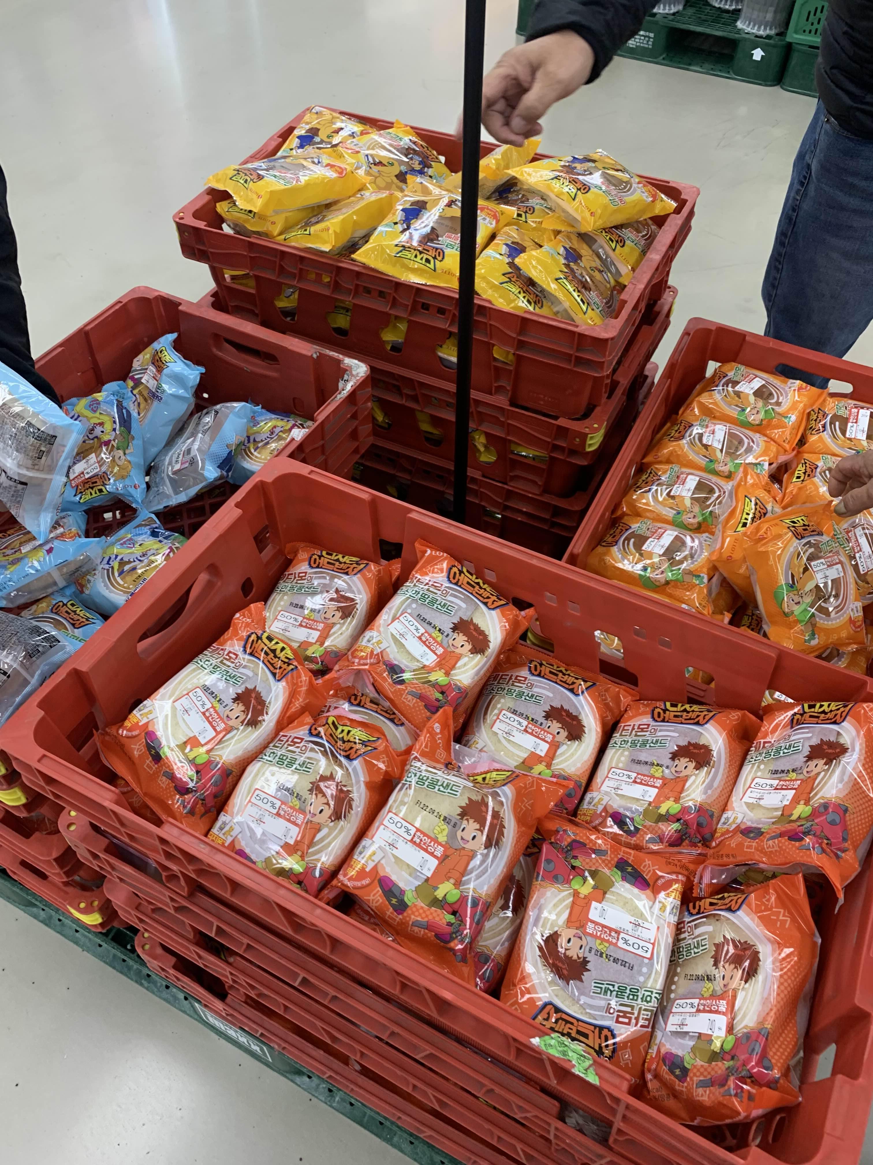 포켓몬빵을 구입하기 위해 방문한 롯데마트... 디지몬 빵 반값 할인하고 있더군요.