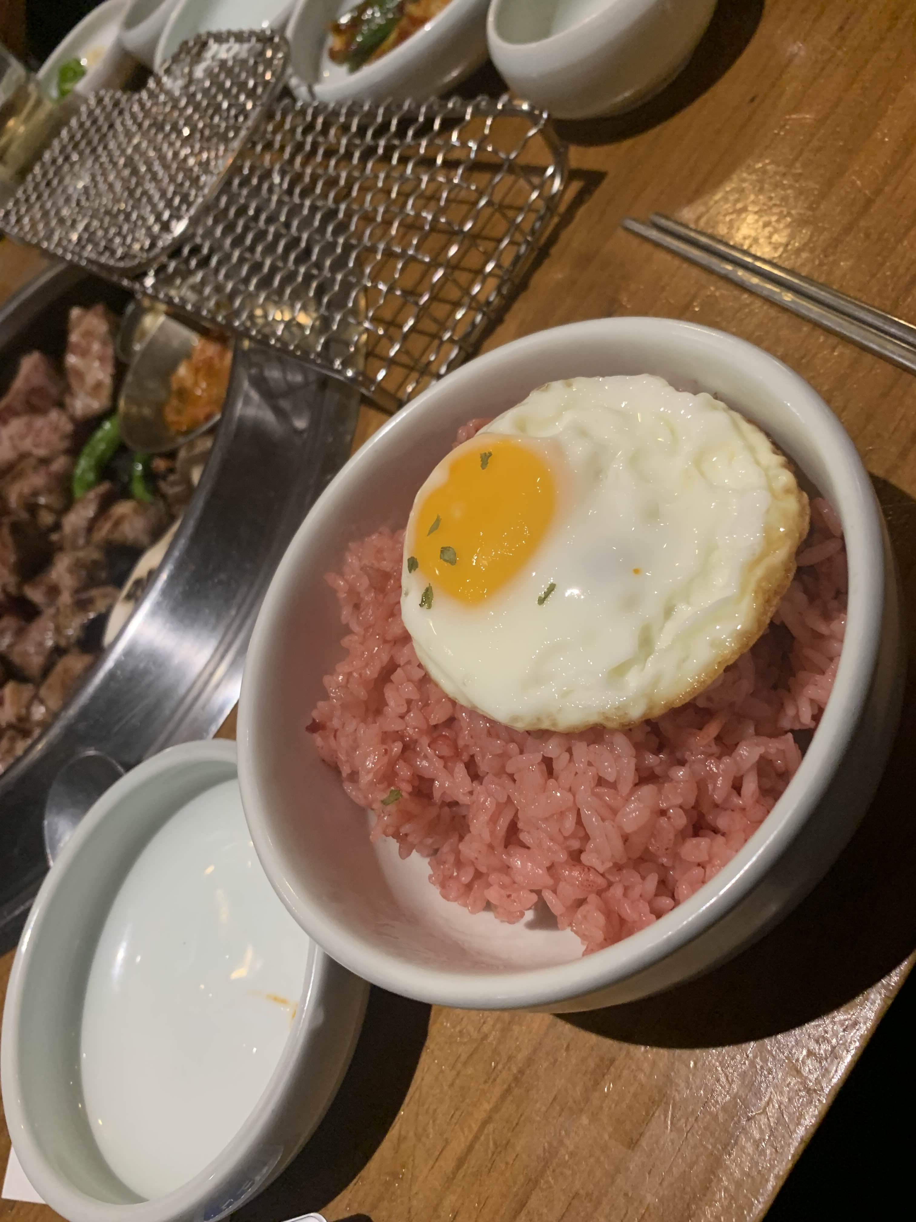 비빔국수! 가격은 6,000원으로 고기를 먹기 전 비빔국수부터 맛보았습니다. 깨가 듬뿍 들어있어서 맛은 나쁘지 않더군요. 비빔국수가 메인이 아니다 보니..ㅎㅎ 일단 맛은 평타 이상은 하더군요. 국수와 비슷하게 나온 밥! 사실 밥은 갓 지은 밥이 최고! 따른 반찬이 필요 없을 정도로 밥만 먹어도 맛이 좋더군요. 고기가 구워지기 전 볶은 김치와 함께 밥을 맛보다가... 고기가 구워지면 밥과 함께 꿀컥!