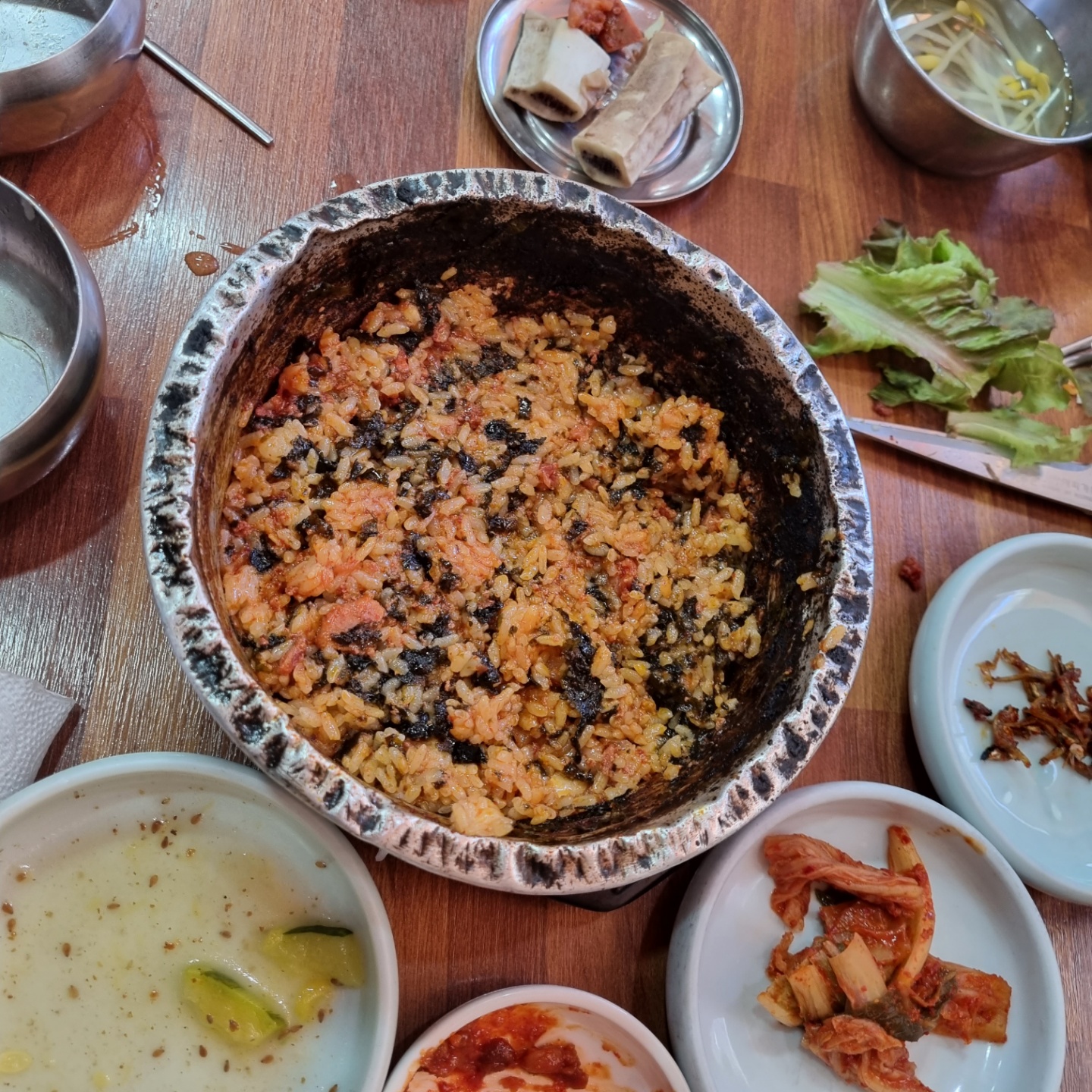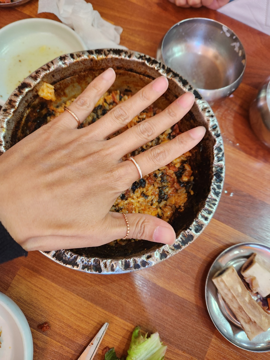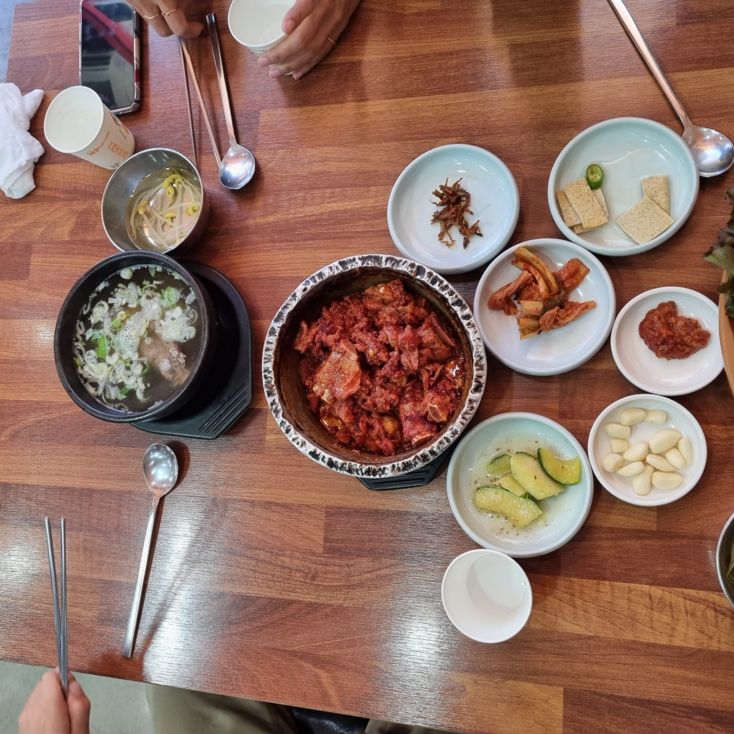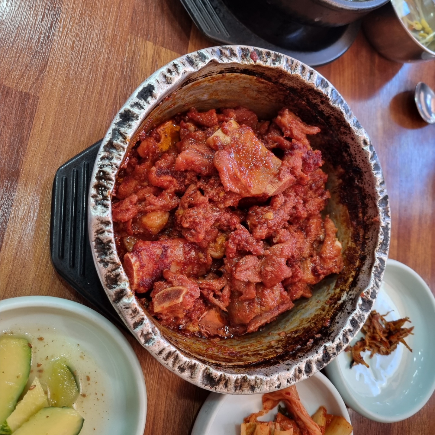 내공이 느껴지는 비주얼! 윗부분이 많이 찌그러져... 왠지 음식에 대한 포스가 많이 느껴졌습니다. 맛은 좀 매운 느낌이라... 나에게는 괜찮았는데... 큰아이는 잘 먹고, 작은아이는... 너무 매워하더군요.ㅎㅎ 그래서 갈비탕! 사진으로 보면... 저 돼지갈비찜 양은냄비가 상당이 커 보이는데, 손으로 가려지는 사이즈? 그 갈비탕 뚝배기보다 약간 큰 사이즈입니다. ㅎㅎ
