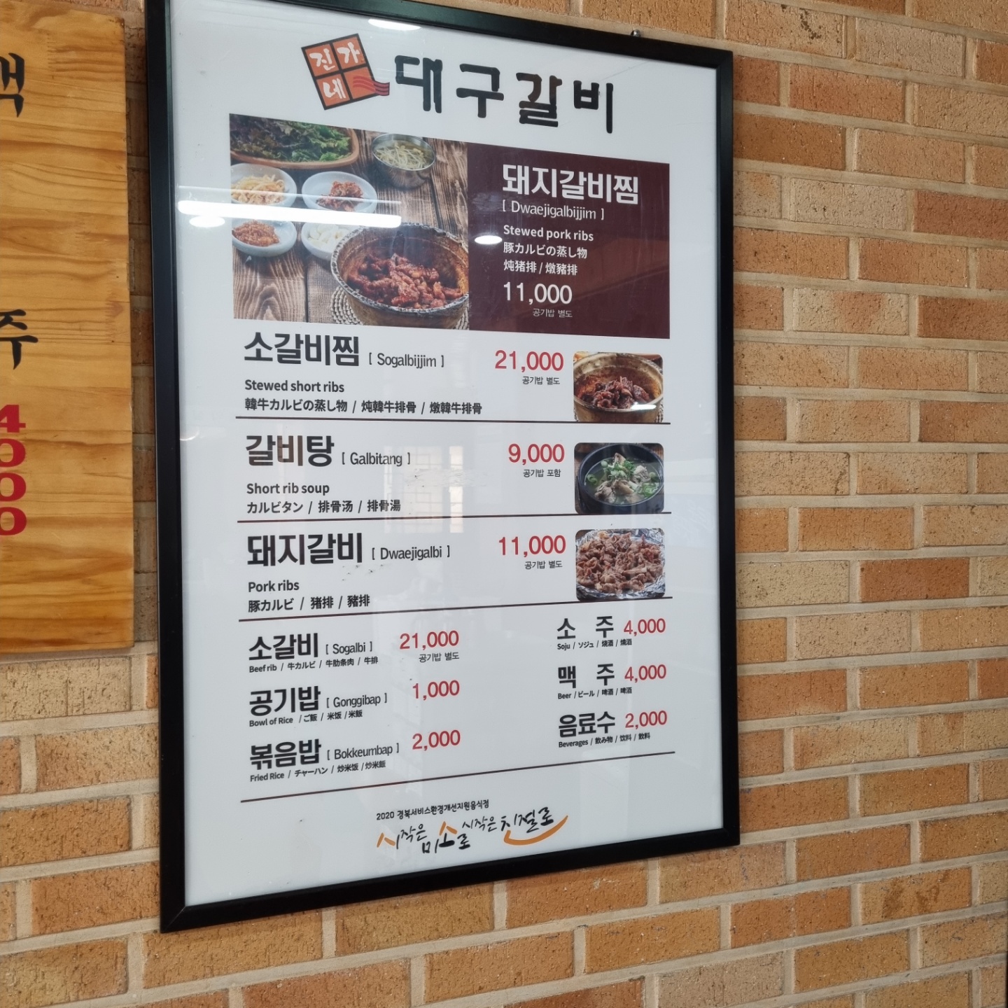 대구 갈비의 대표 메뉴는 돼지갈비찜이라고 한다! 그래서 2인분 주문했는데, 1인분 가격이 11,000원으로 그리 비싸게 느껴지지 않는다. 그리고... 아이들용 갈비탕도 하나 주문했다. 아직 매운 음식을 잘 먹지 못하는 아이에게는 만만한 갈비탕!ㅎㅎ