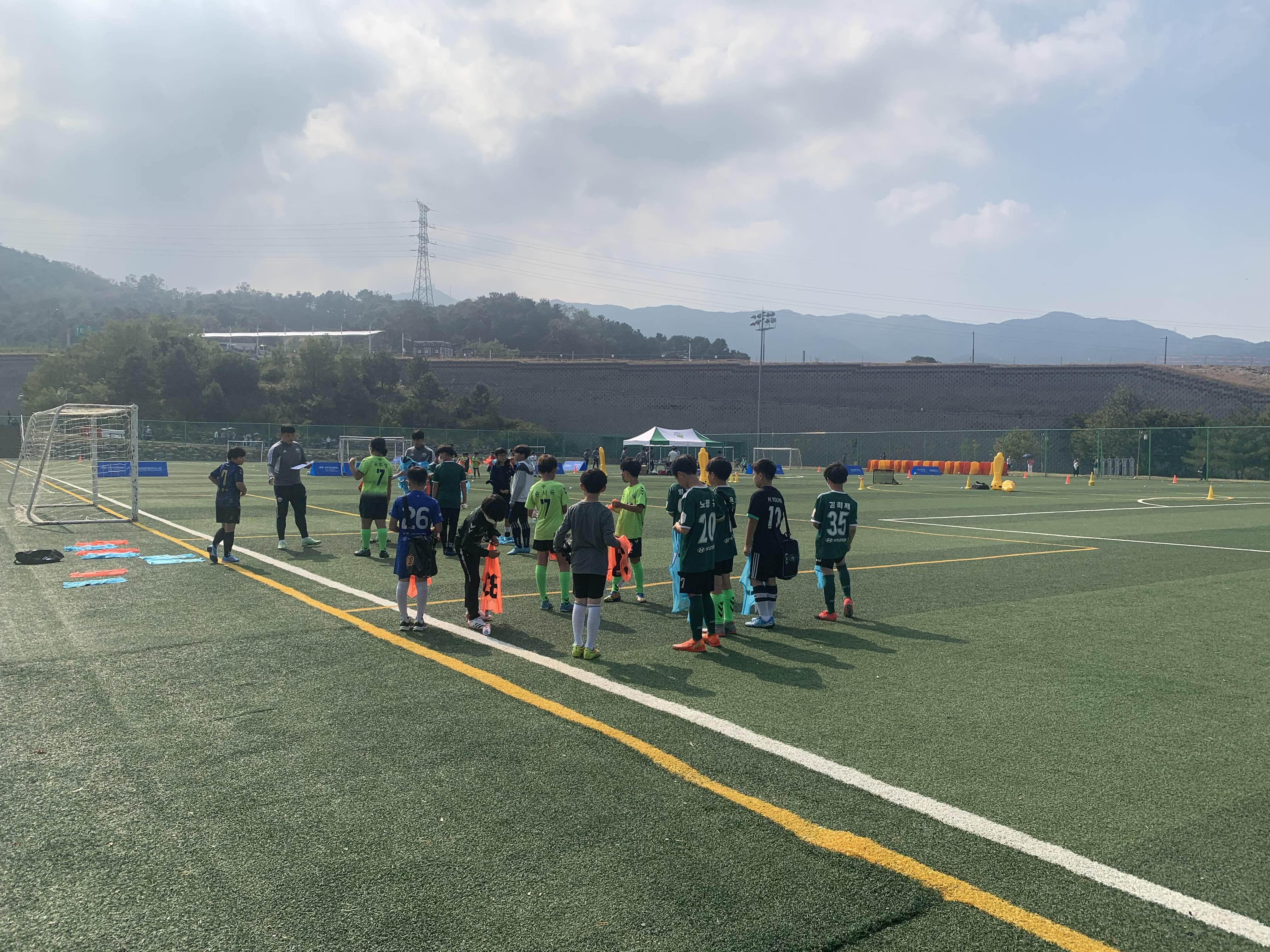 축구 경기가 끝나고 중앙으로 모이는 아이들!!! 중앙에 모여서 무엇인가 지급하는 모습?