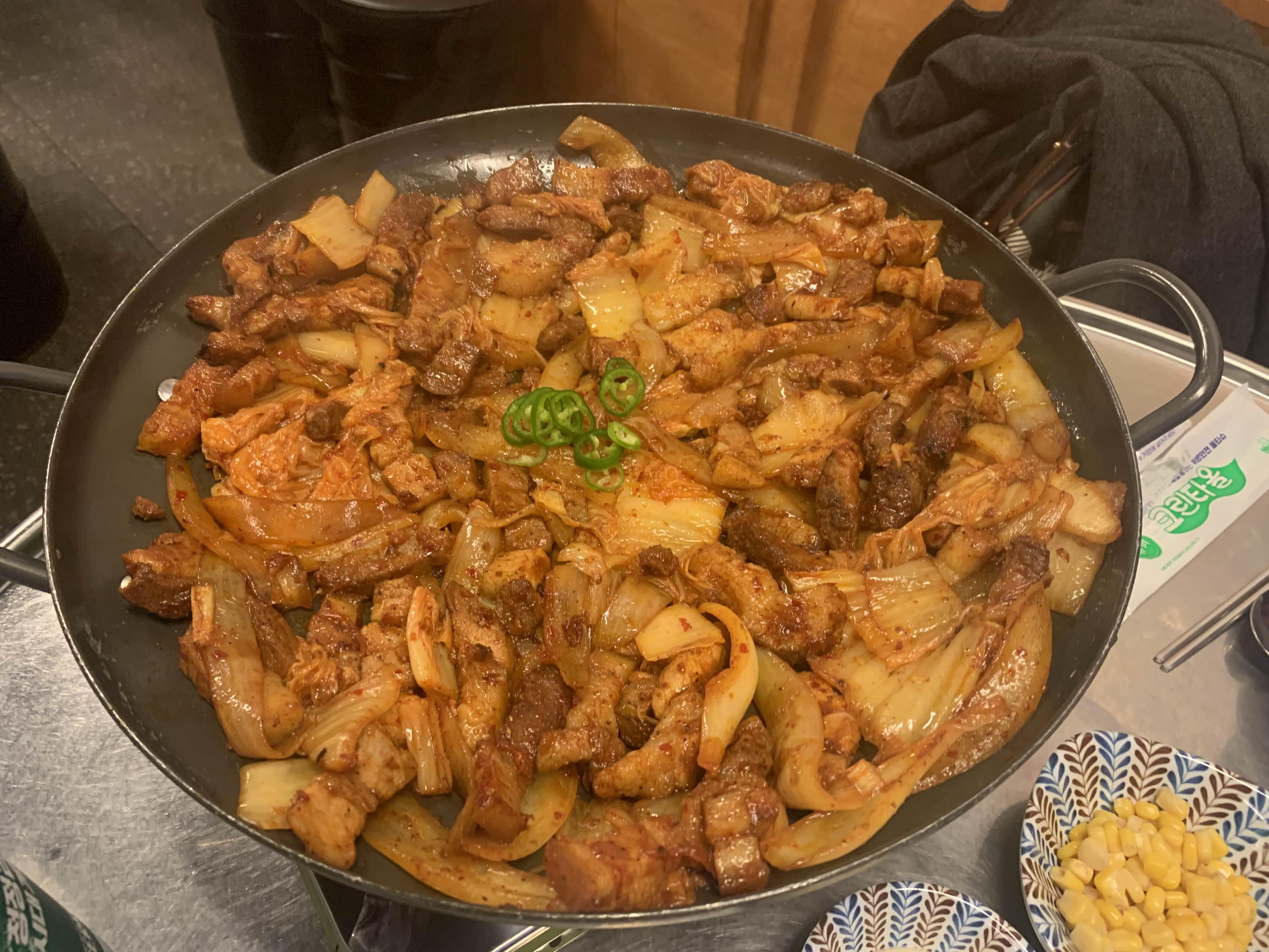 무슨 메뉴인지 처음 보는 음식인데... 돼지와 김치가 맛났으니 맛은 없을 수 없는 조합 같다.