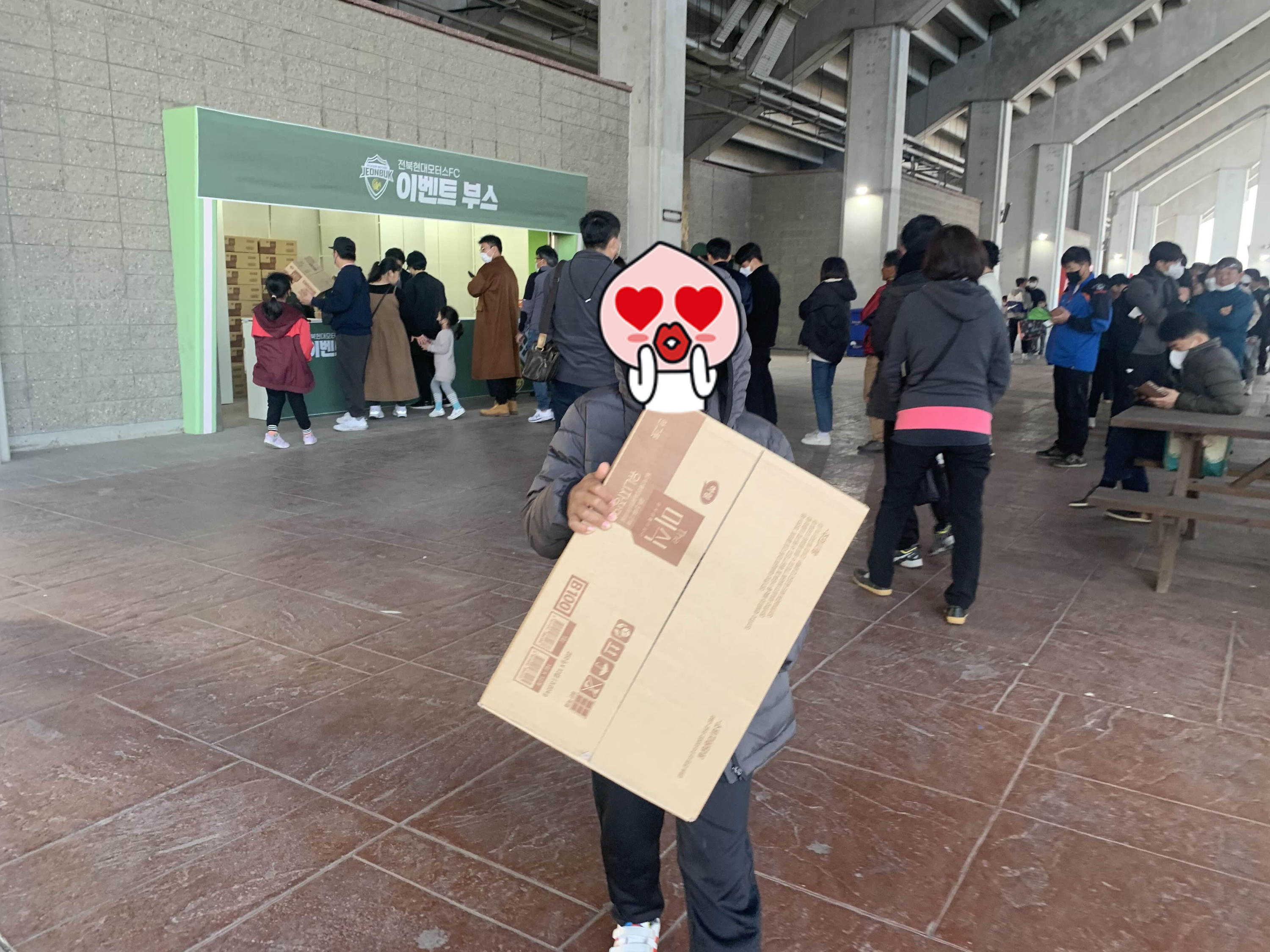 이번 홈경기 관람을 2층 관중석에서 관람하여... 이벤트 부스가 가까웠다. 그래서, 바로 이벤트 대기하고 선물 받았습니다. 아이 생일이 10월이라~ ㅎㅎ 처음에는 이벤트 대기줄이 그리 길지가 않았지만.... 시간이 조금 지나니.... 사람들이 우르르 볼려오더군요.ㅎㅎ