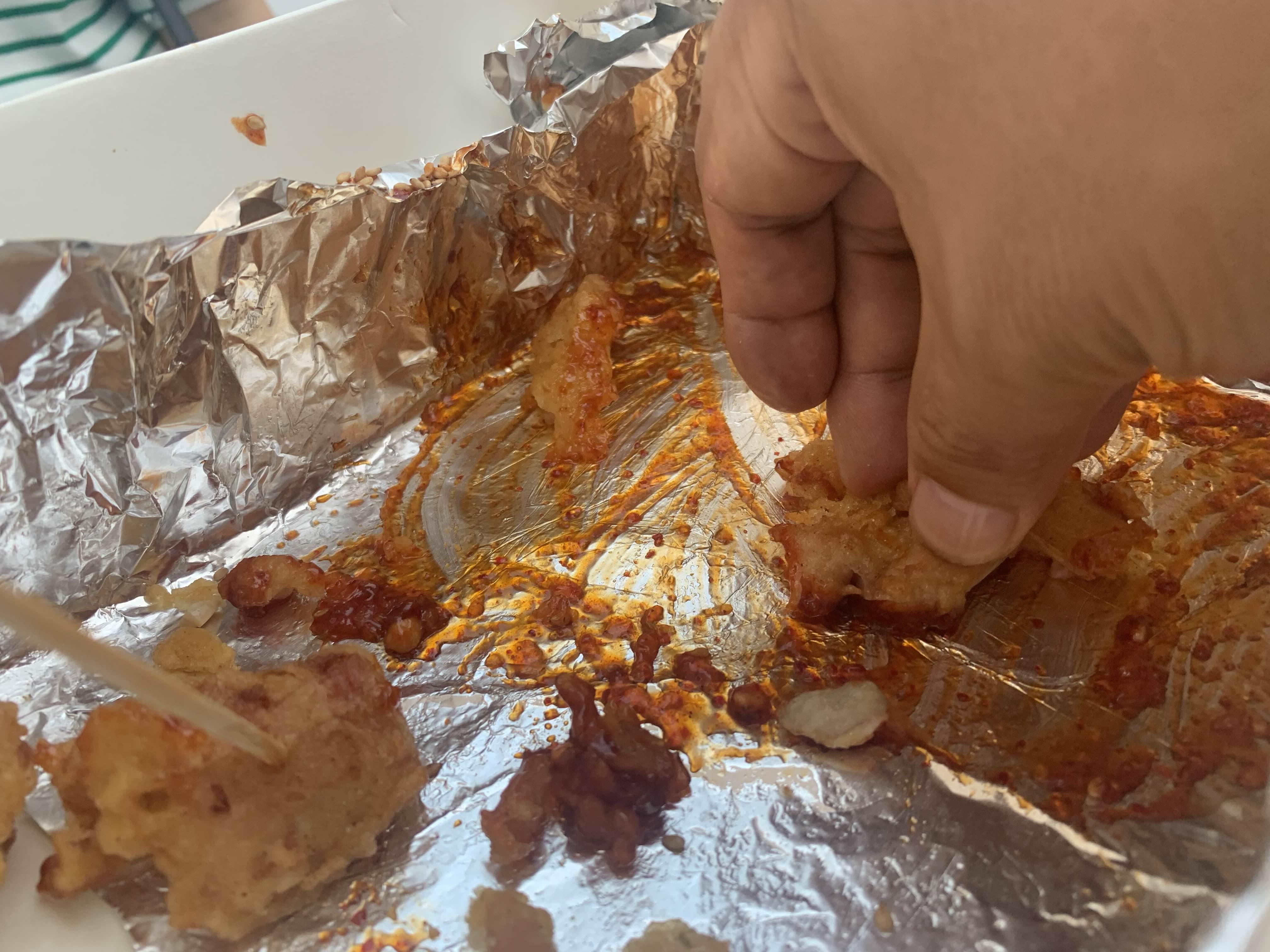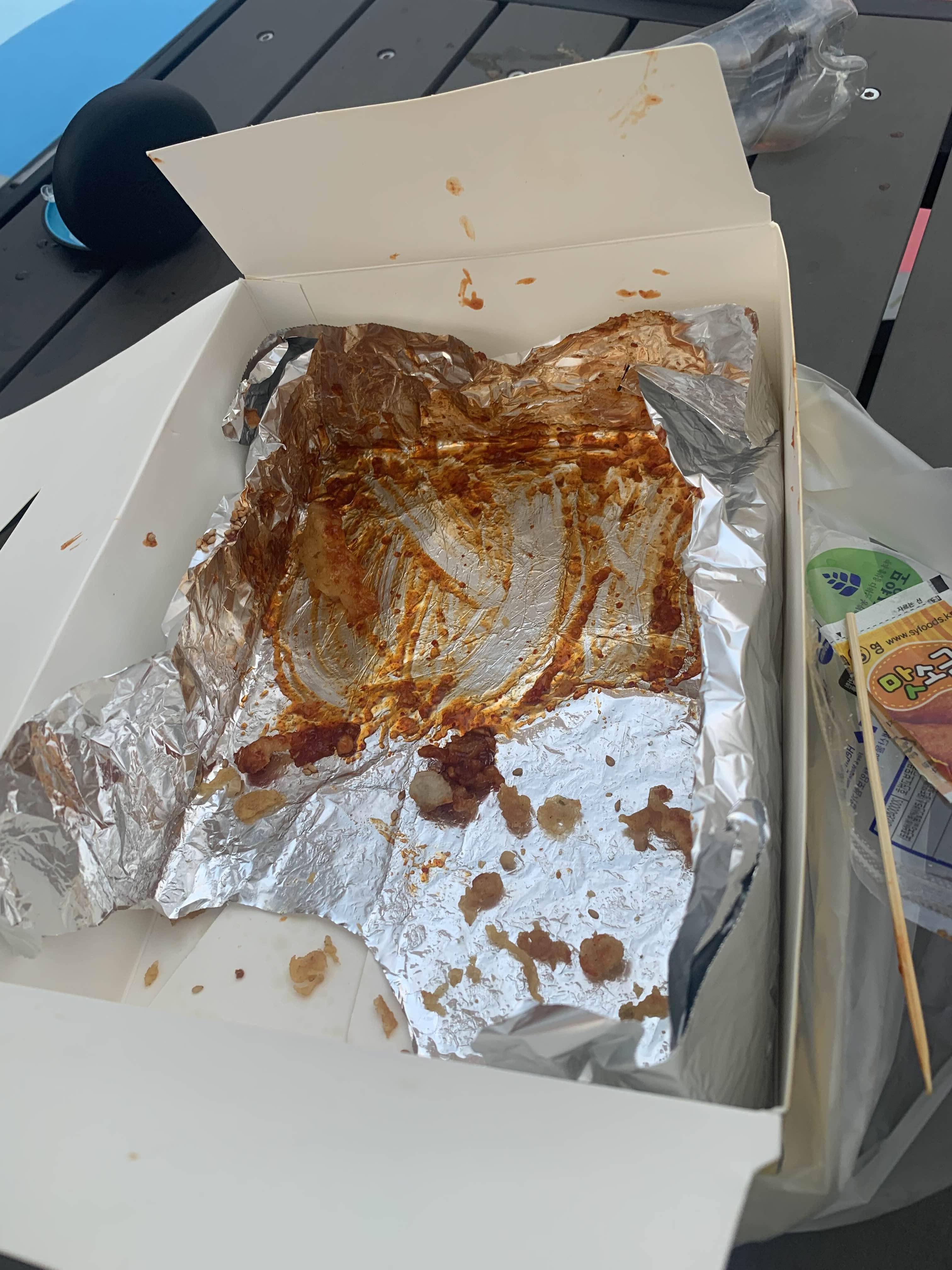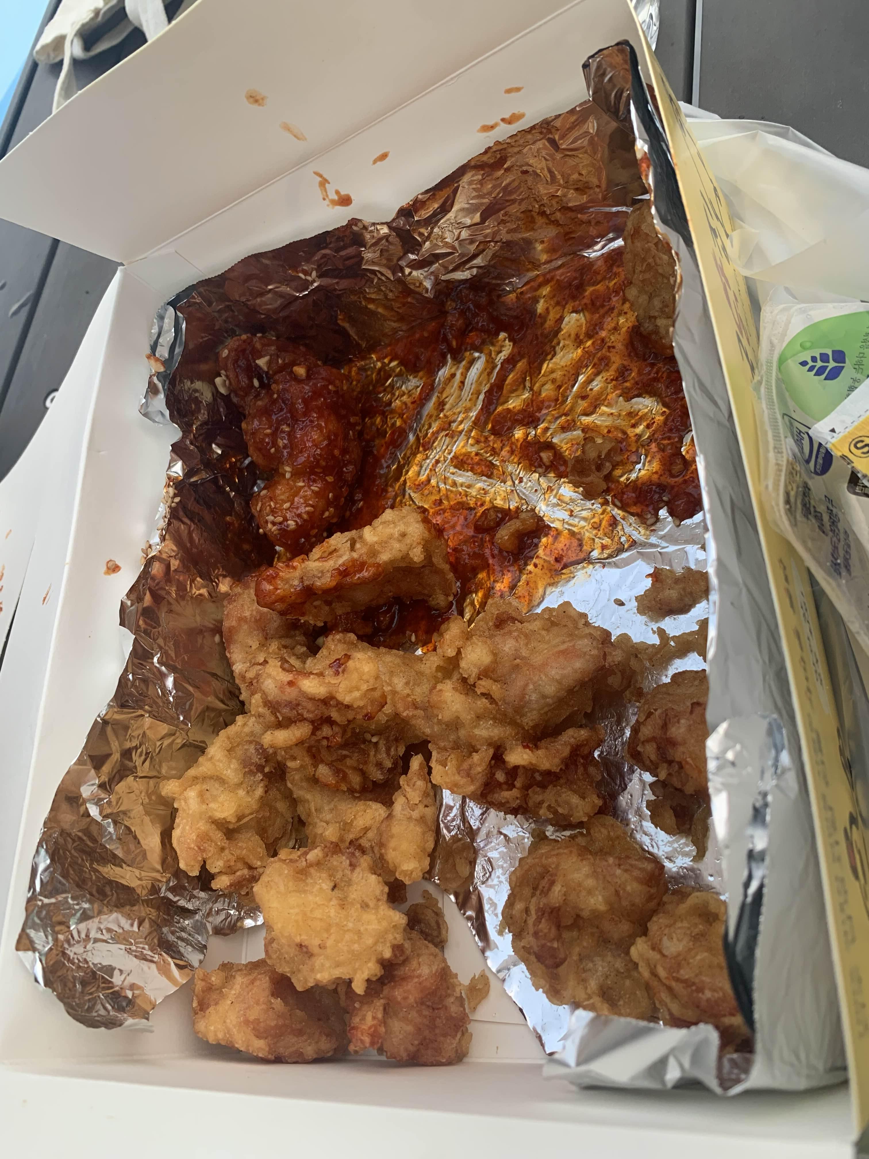 반반 통닭은 양념이 먼저 떨어진다. 남은 후라이드를 양념에 찍어서~~