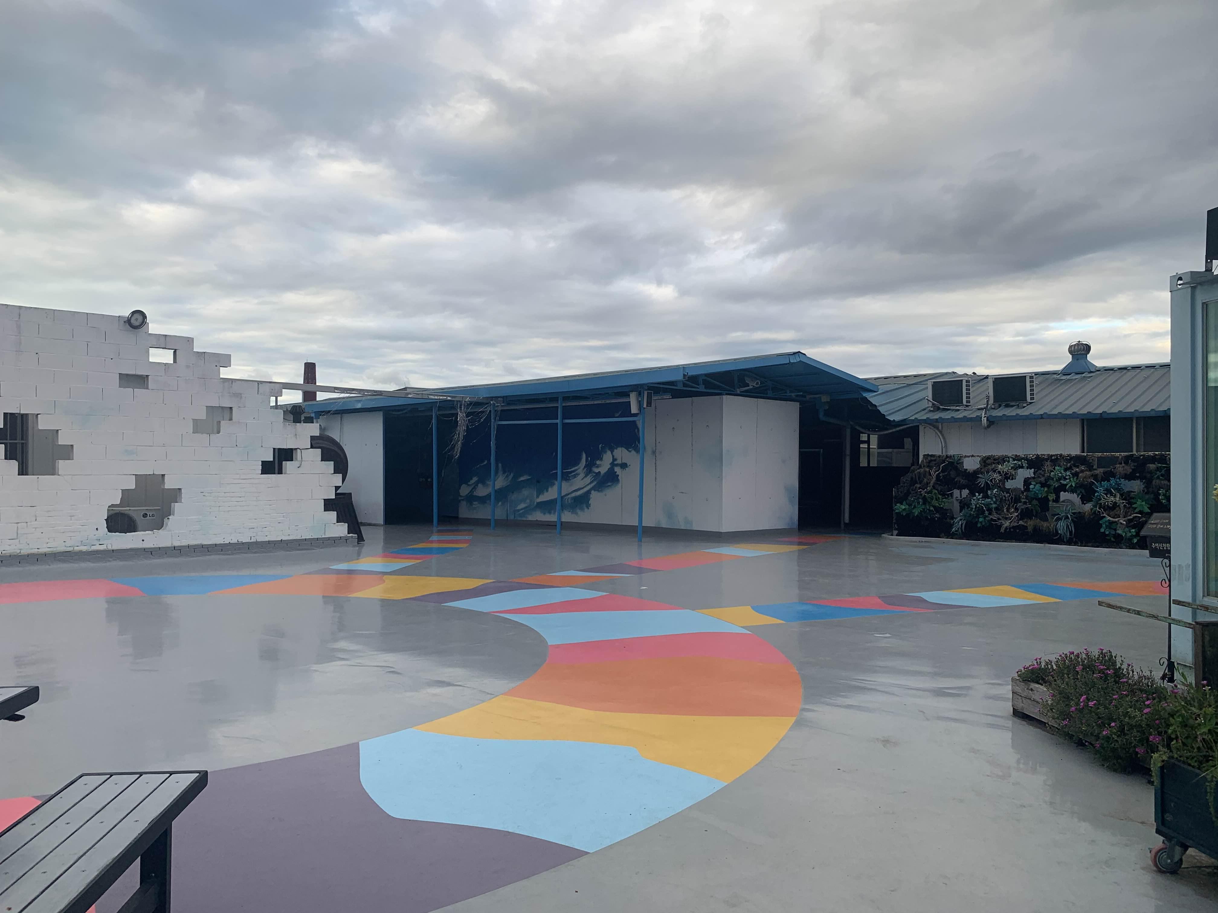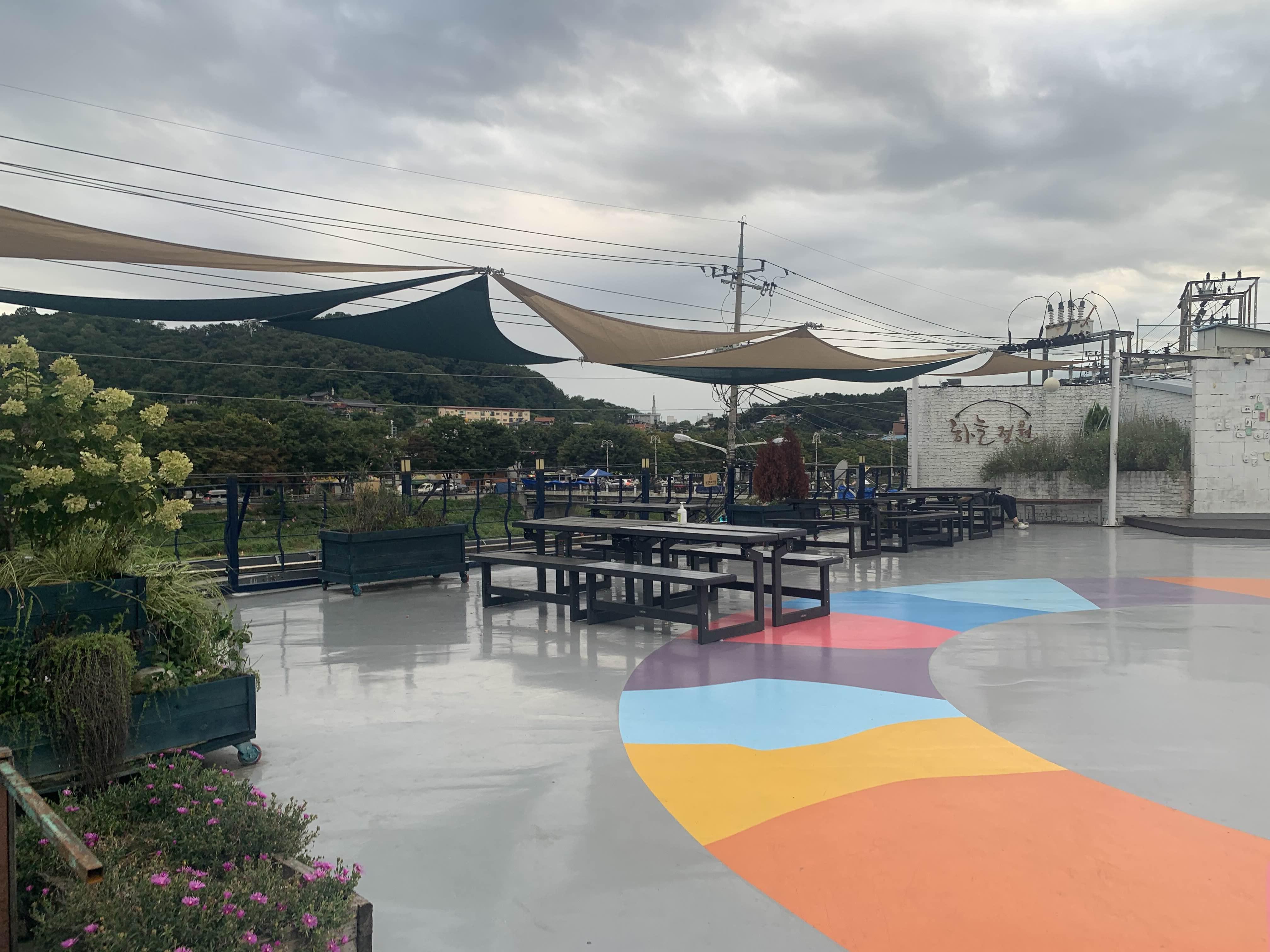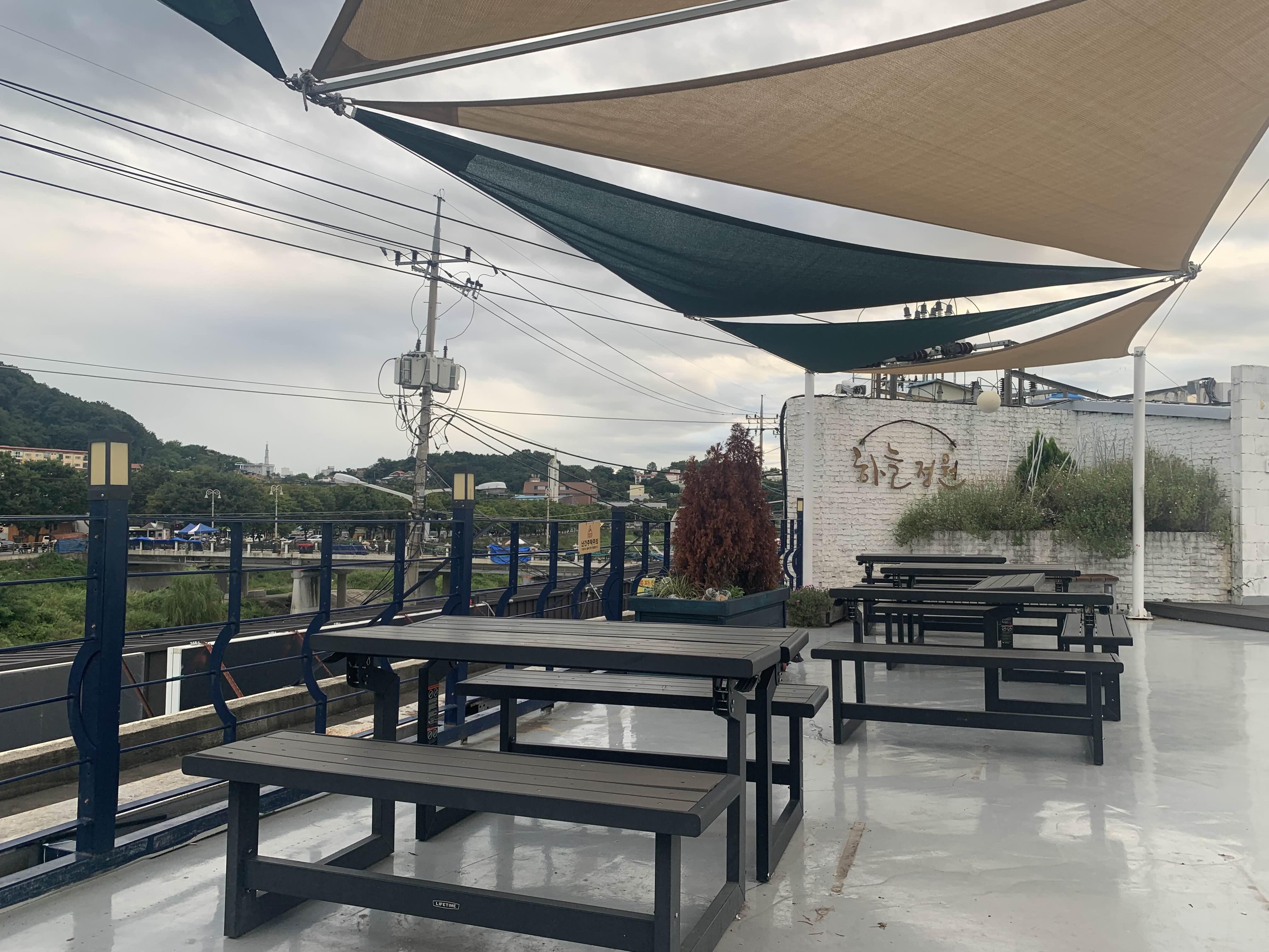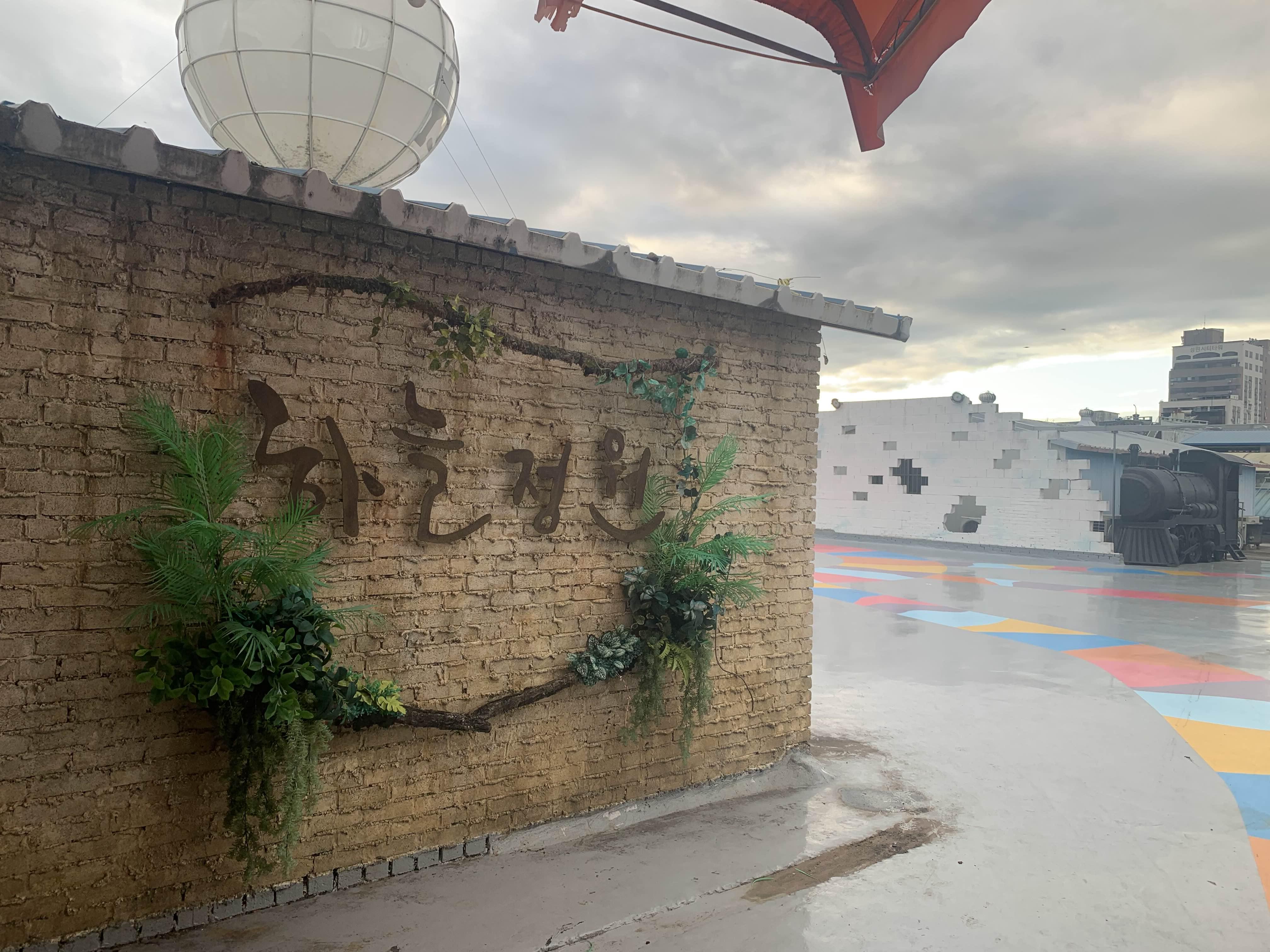 통닭을 먹기 위해서는 2층 청년몰이나 하늘정원으로 올라갑니다. 이번에는 청년몰이 아닌, 하늘정원~ 테이블이 준비되어... 통닭을 먹기 좋다.ㅎㅎ 하지만, 화장실이 없어서... 그래서 화장실은 청년몰로 이동하여 이용한다.