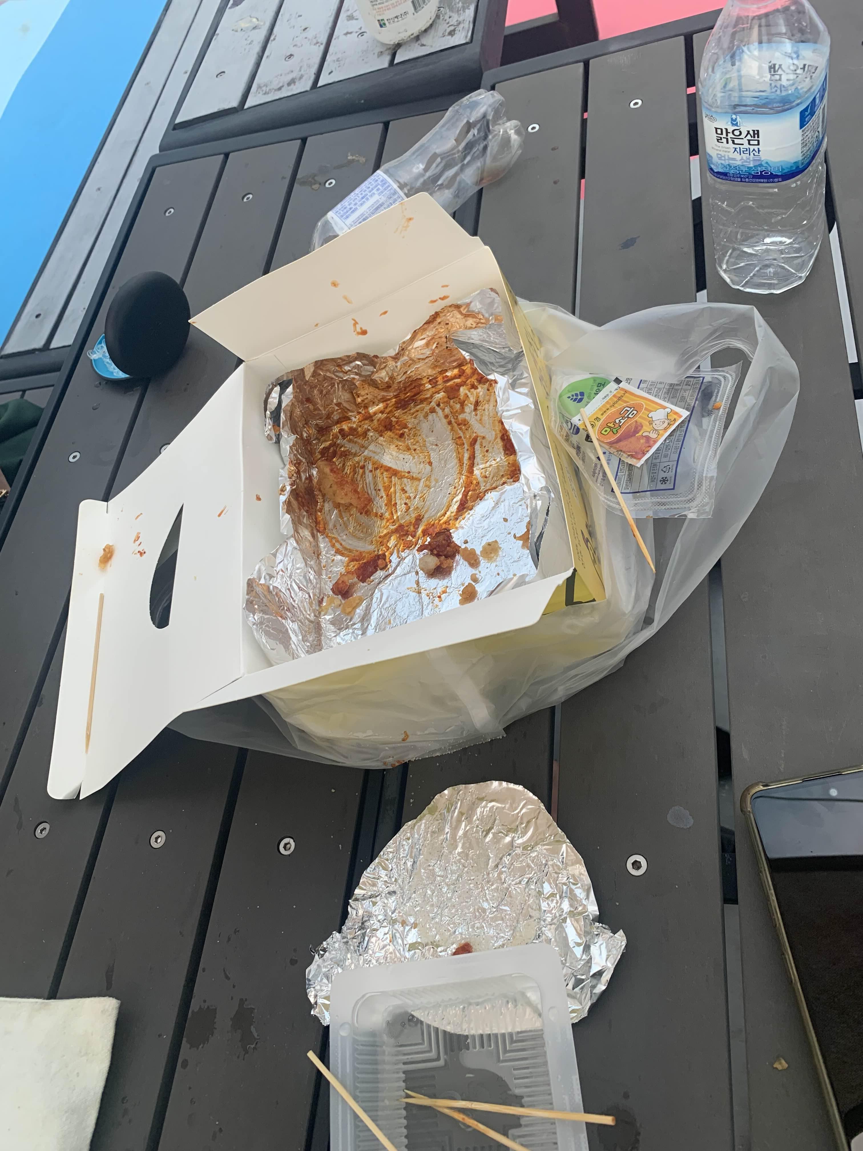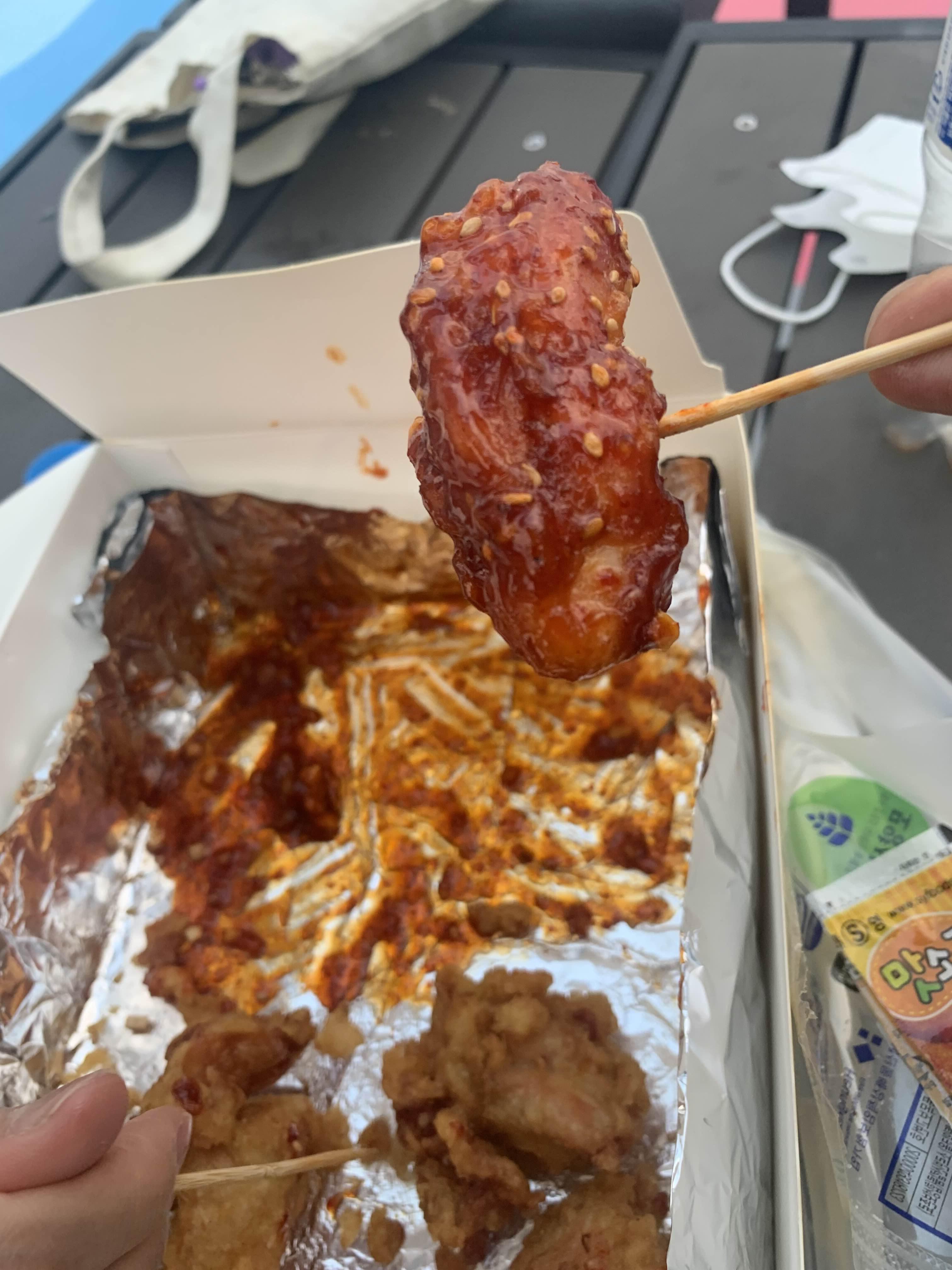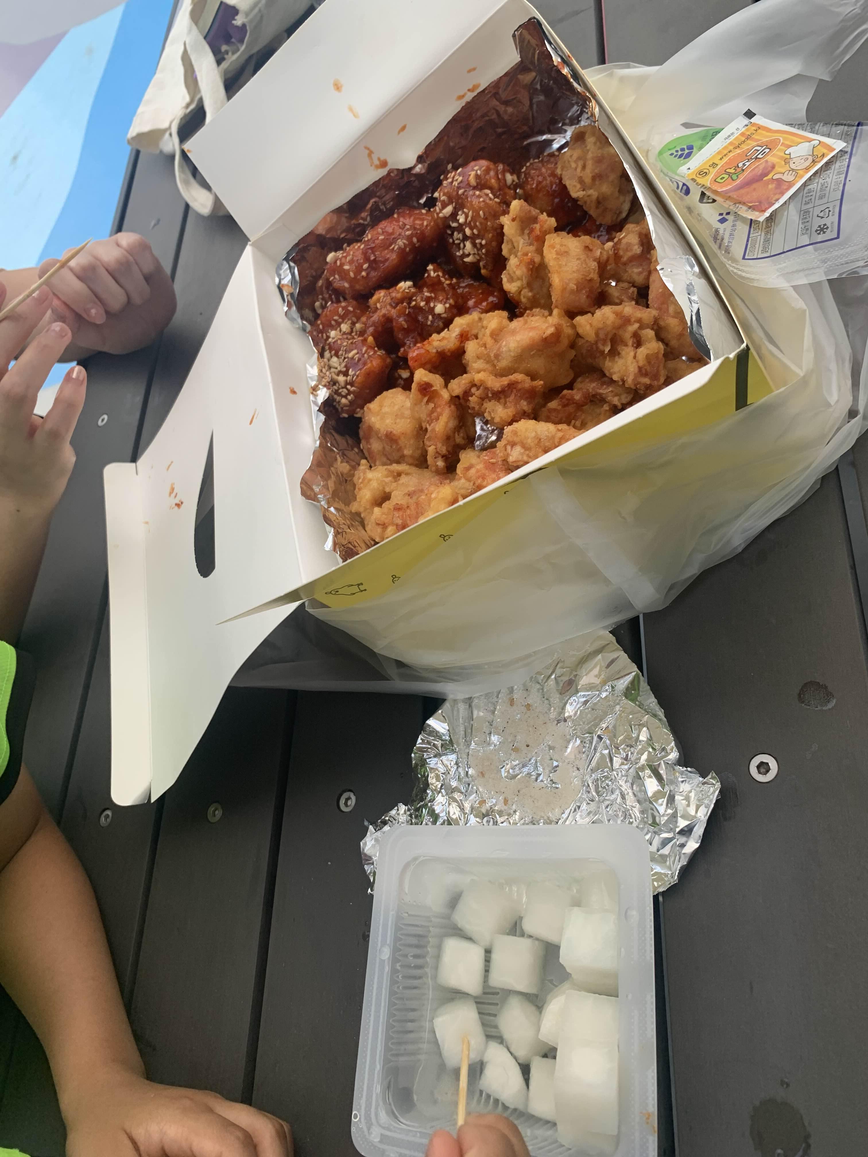 자리를 잡았으니 통닭 개봉하여 먹는다!!! 맛있다.ㅎㅎ 여전히 양이 많다. 통닭이 좀 비싸기는 하지만, 양과 맛을 생각하면 다른 통닭에 비해서 만족도가 높다.ㅎㅎ
