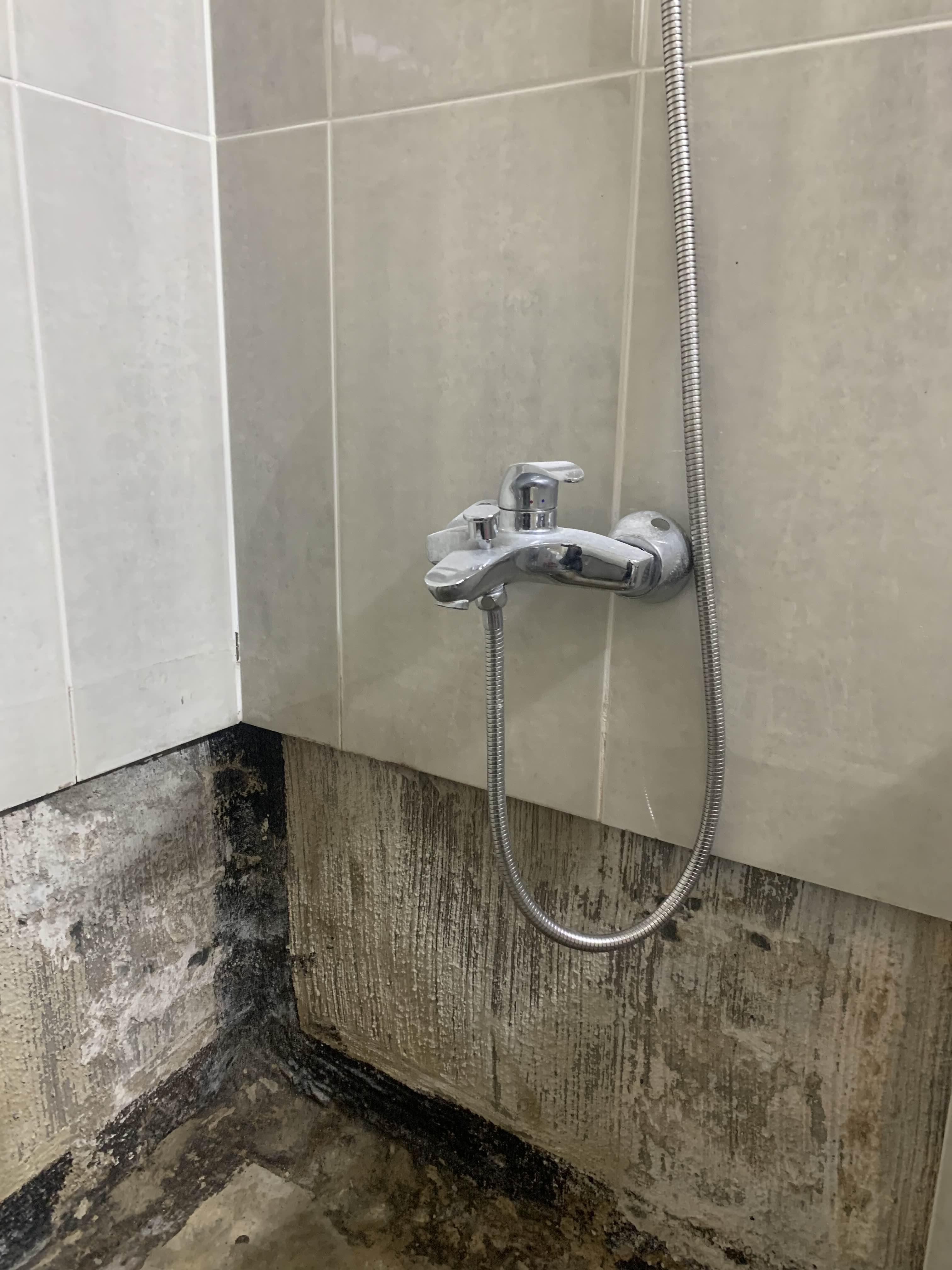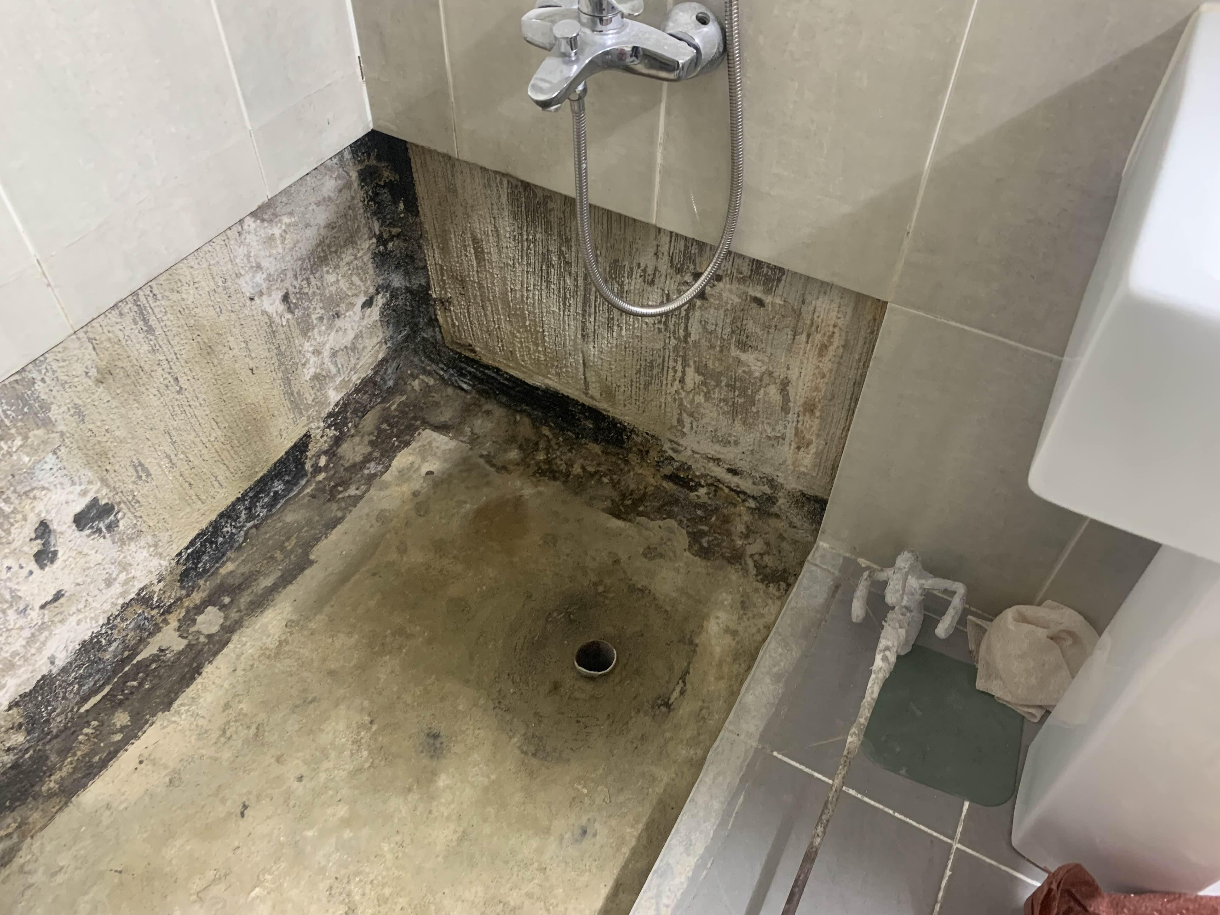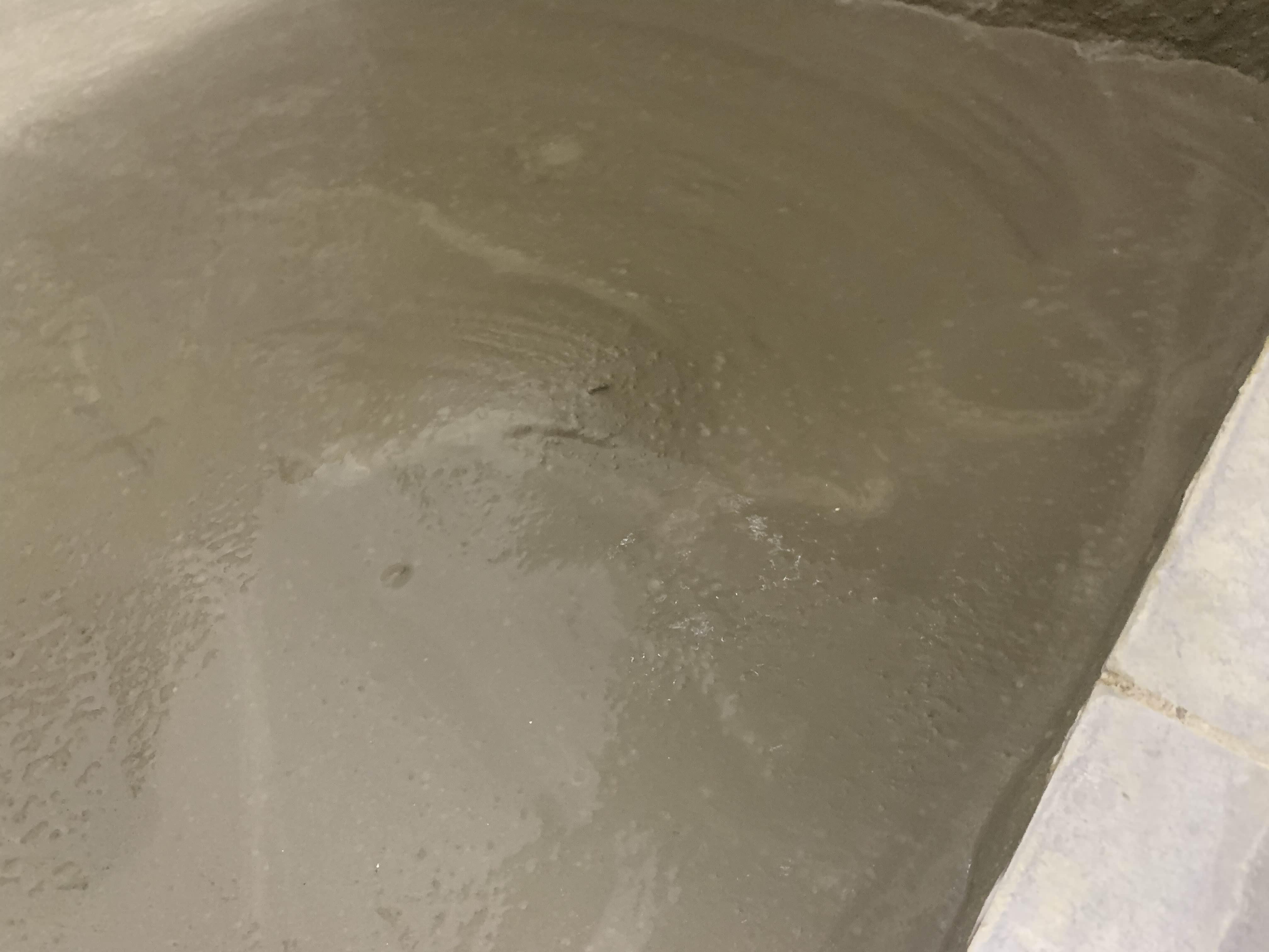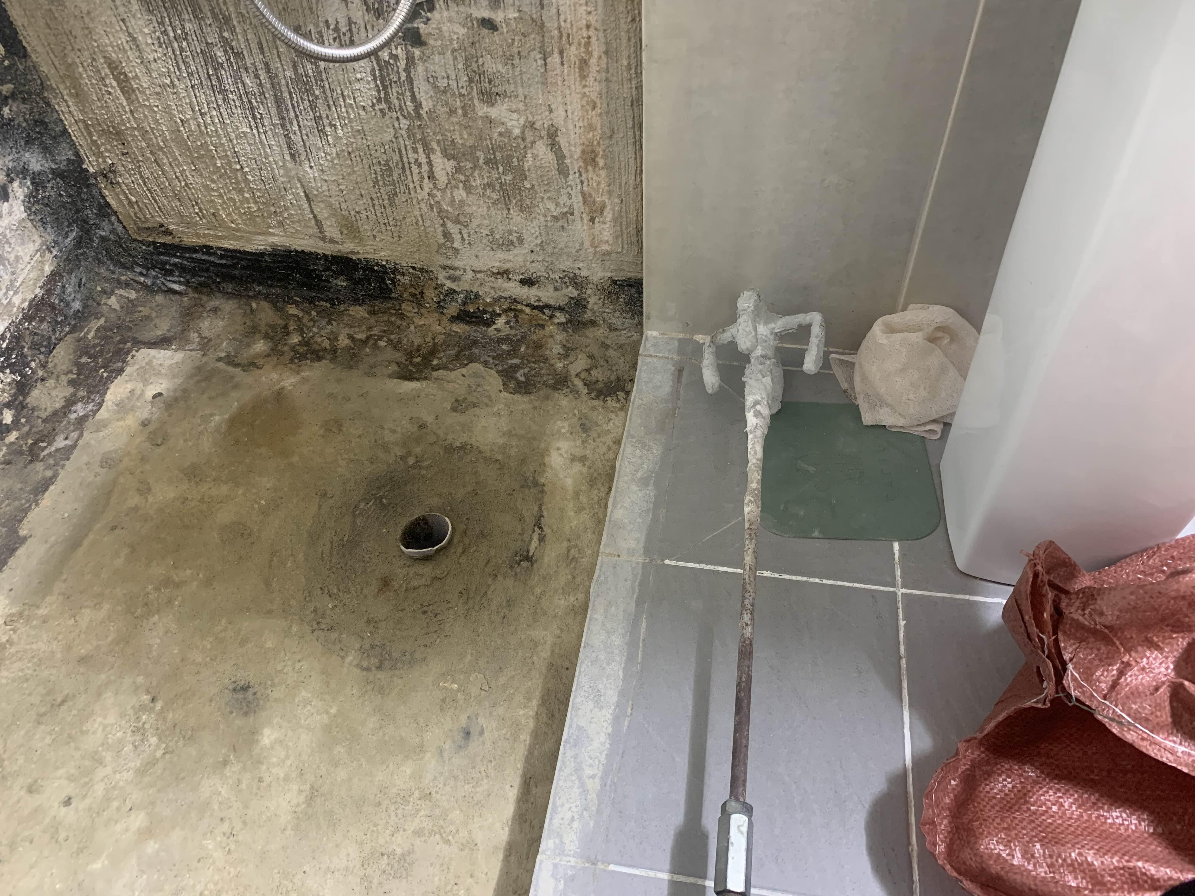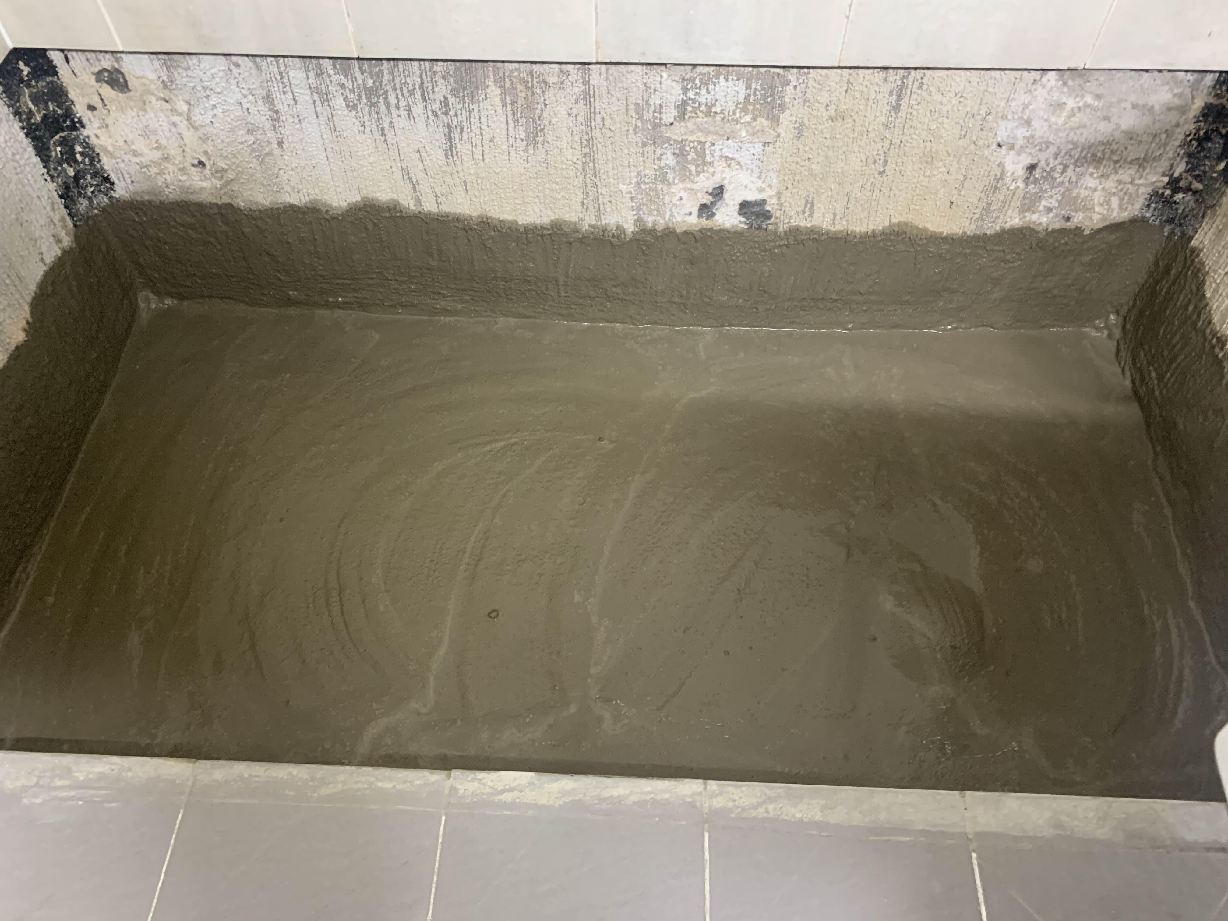 청소가 완료되었으면, 욕조 하부의 방수작업을 진행해준다. 방수는 시멘트 액체방수! 시멘트 액체방수는 두껍게 하면... 방수층이 깨지기 십상이다.