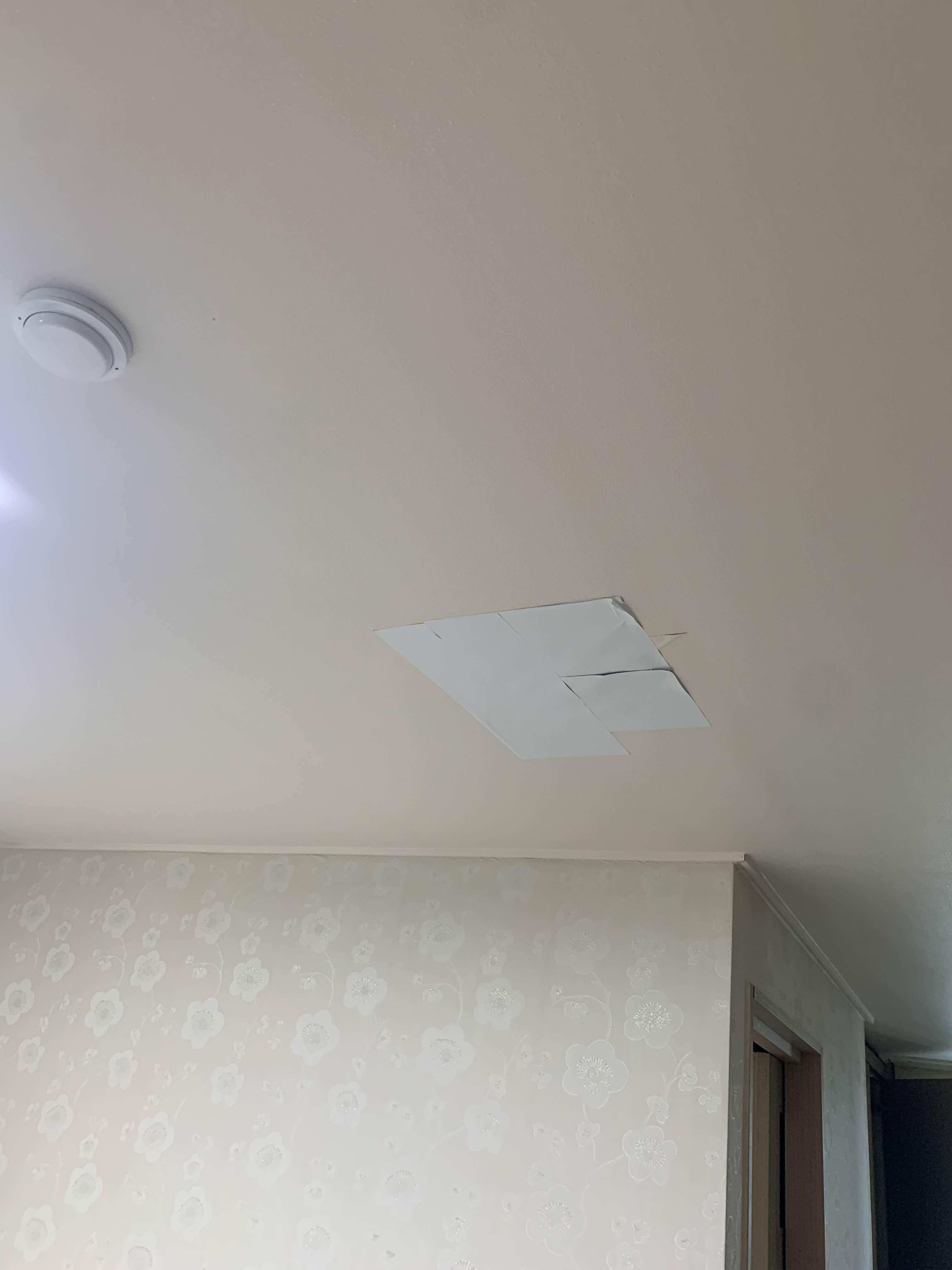 누수부위는 안방 천장!!! 화장실과 거리가 약 1~2m 떨어진 지점이다. 화장실 천장에는 누수 자국이 없다.