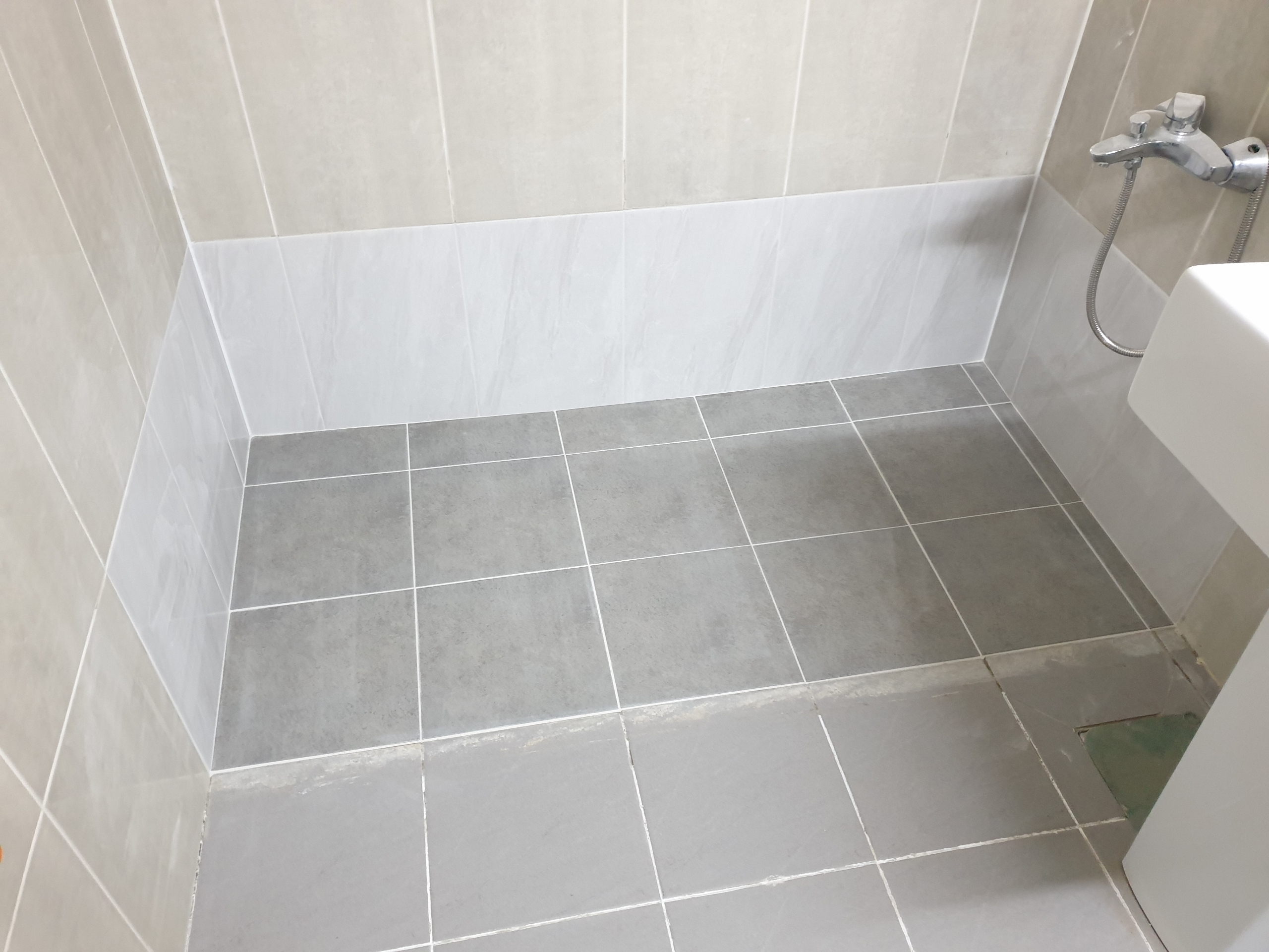 아파트는 약 10년이라는 세월이 흘렀다. 똑같은 타일을 구할 수 없다. 그래서 비슷한 타일을 선택할지? 포인트를 줄 수 있는 타일을 선택할지 고민이다. 바닥은 비슷한 타일, 벽체는 포인트... 기존 타일보다 짙은 색상으로 선택했다. 하지만..... 기존 타일보다 훤하다.ㅠㅠ