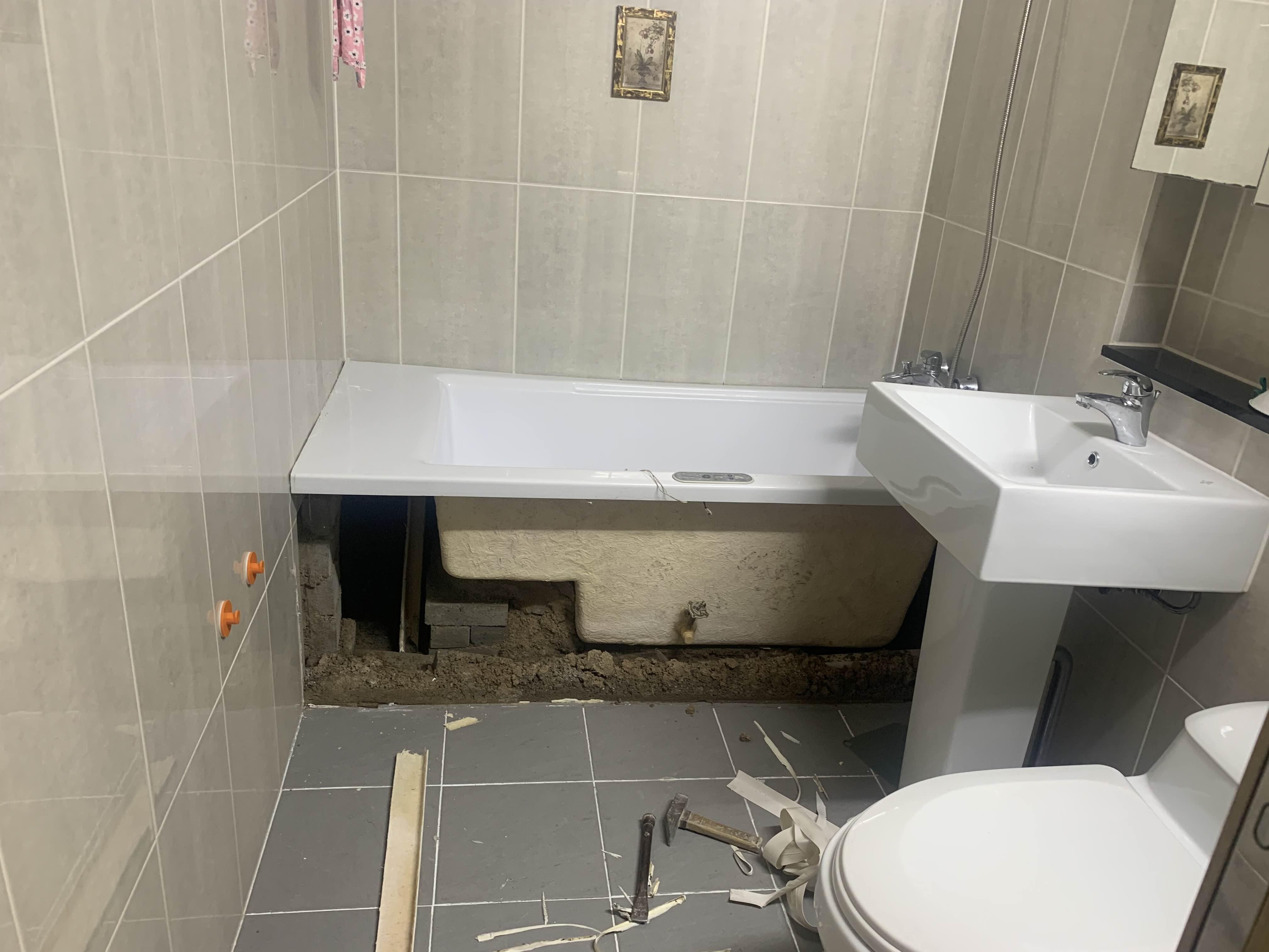 약 1시간 정도 걸려서 욕조 철거!!! 기존 타일을 살려서 철거하려고 시간이 좀 걸린 거 같다.