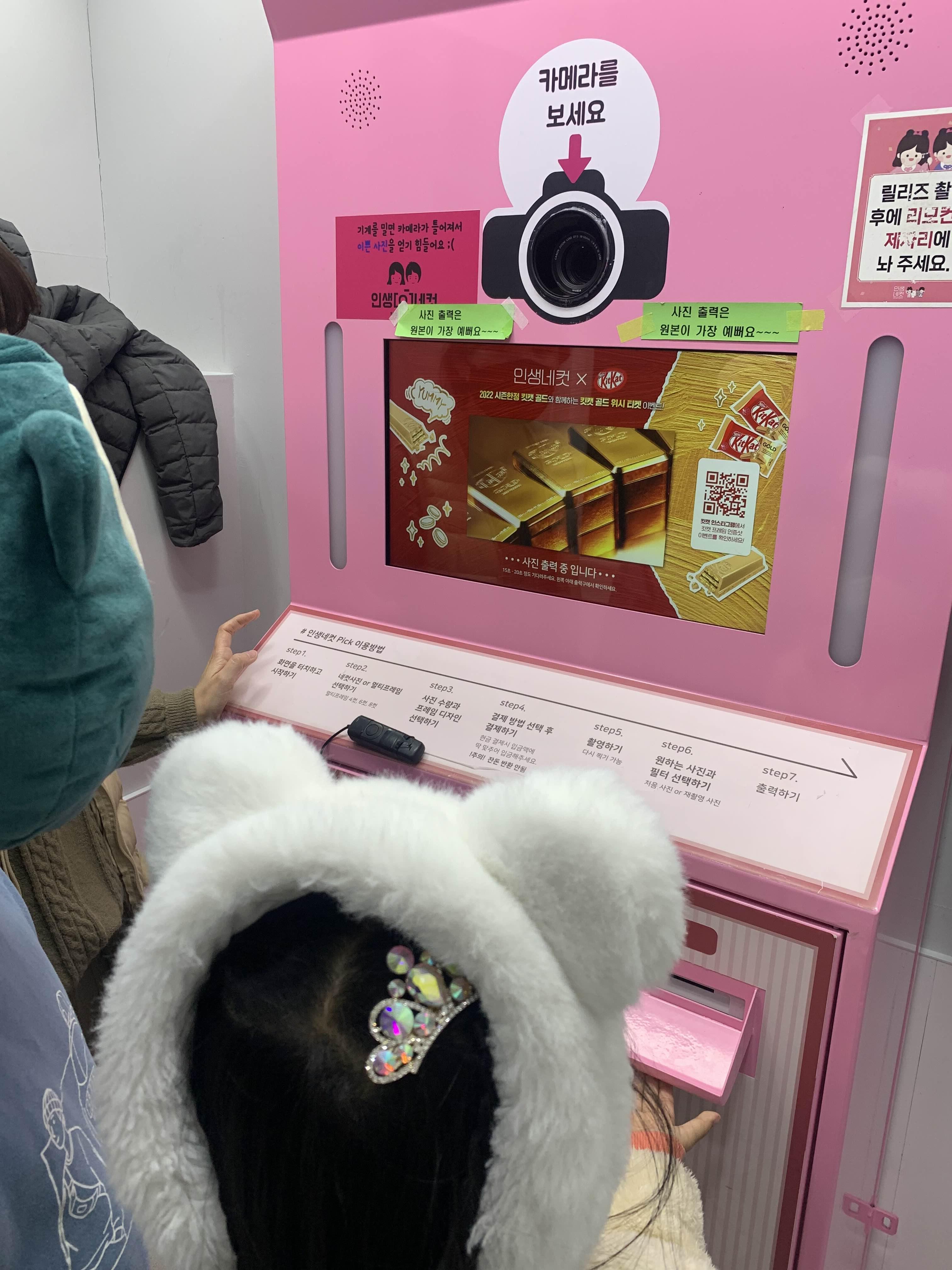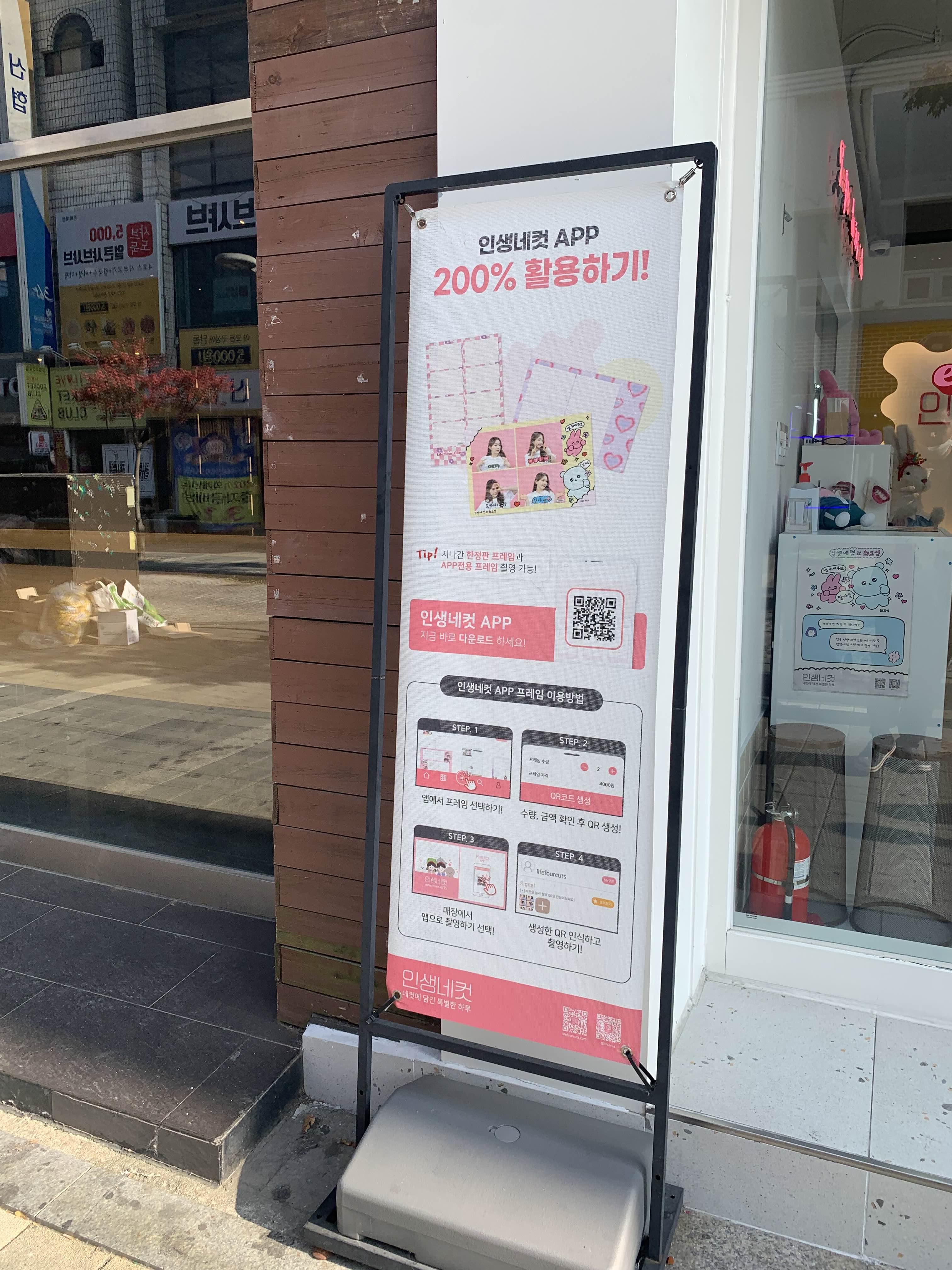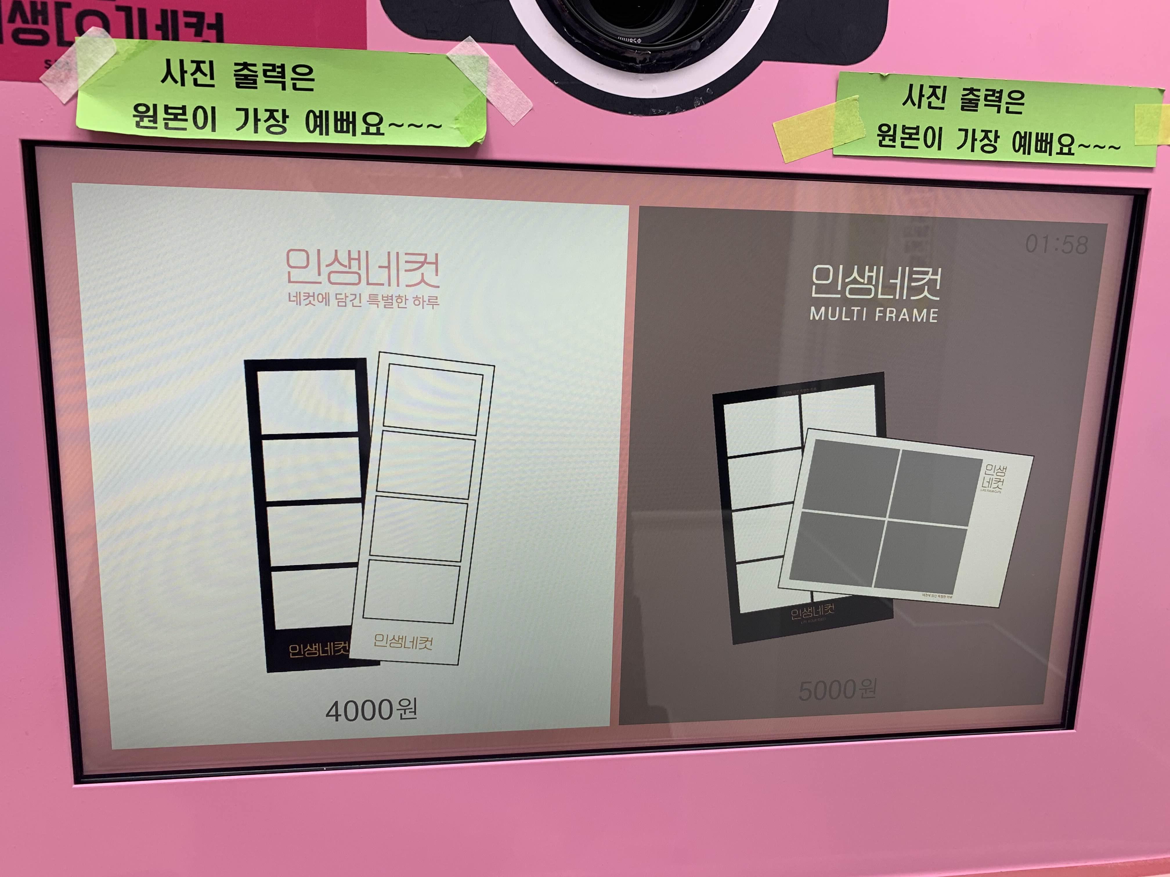 사진 4장이 출력되는 사진 촬영은 총 8장을 촬영하고 8장 중 4장을 선택하여 출력하는 방식입니다. 출력된 이미지를 볼 수도 있지만, 촬영된 이미지의 아랫부분의 QR코드를 이용하여 촬영한 이미지를 다운로드할 수도 있습니다. 다만.... 다운로드할 수 있는 이미지가 해상도가 좀 떨어진다는...ㅎㅎ