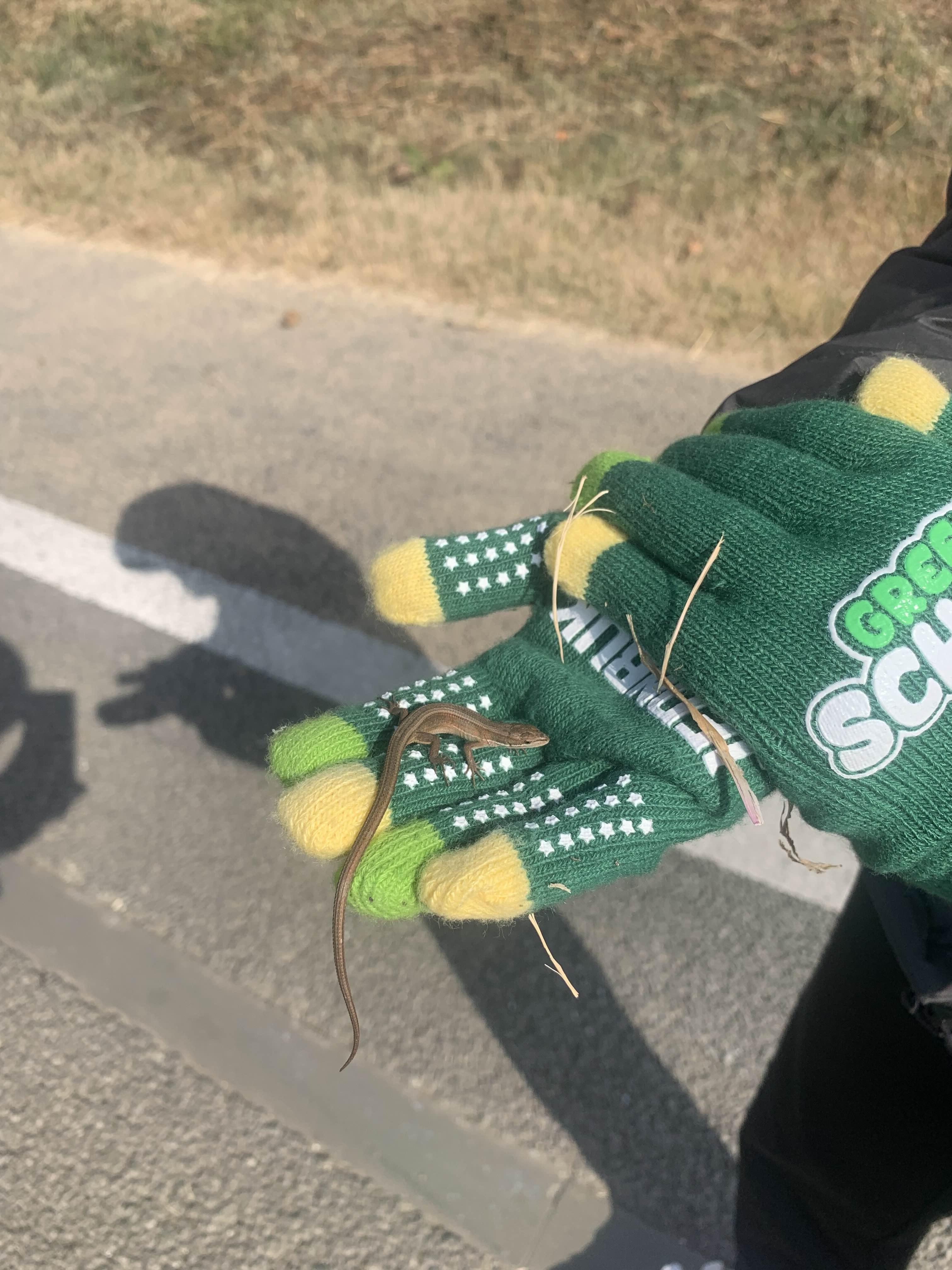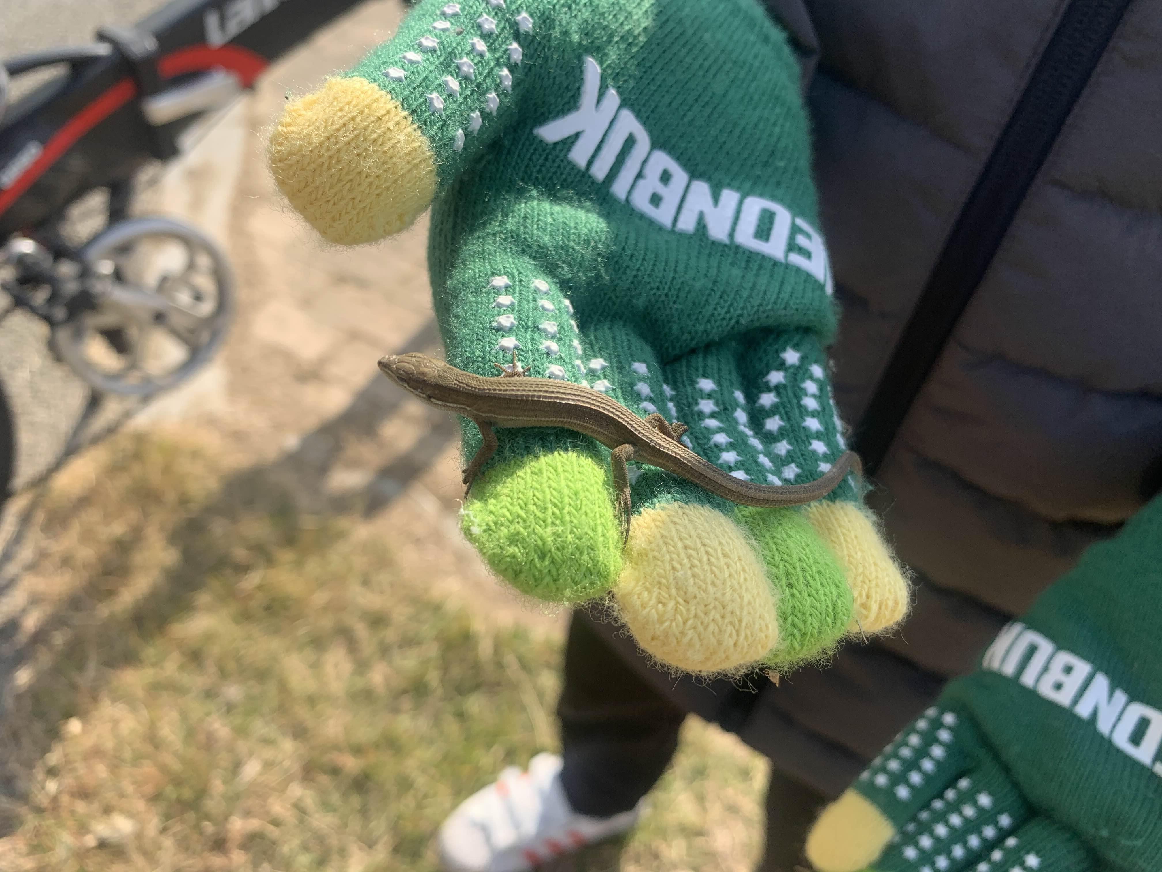 아이 손 위에 올라온 도마뱀은 움직임이 멈추고 가만히 있더군요. 곤충 채집함이라도 있으면, 채집함에 넣어서 관찰이라도 하는데.... 천변에 자전거 타러 나오서.... 아무것도 없어서... 도마뱀은 그냥 자연의 품으로 빠빠이~~~