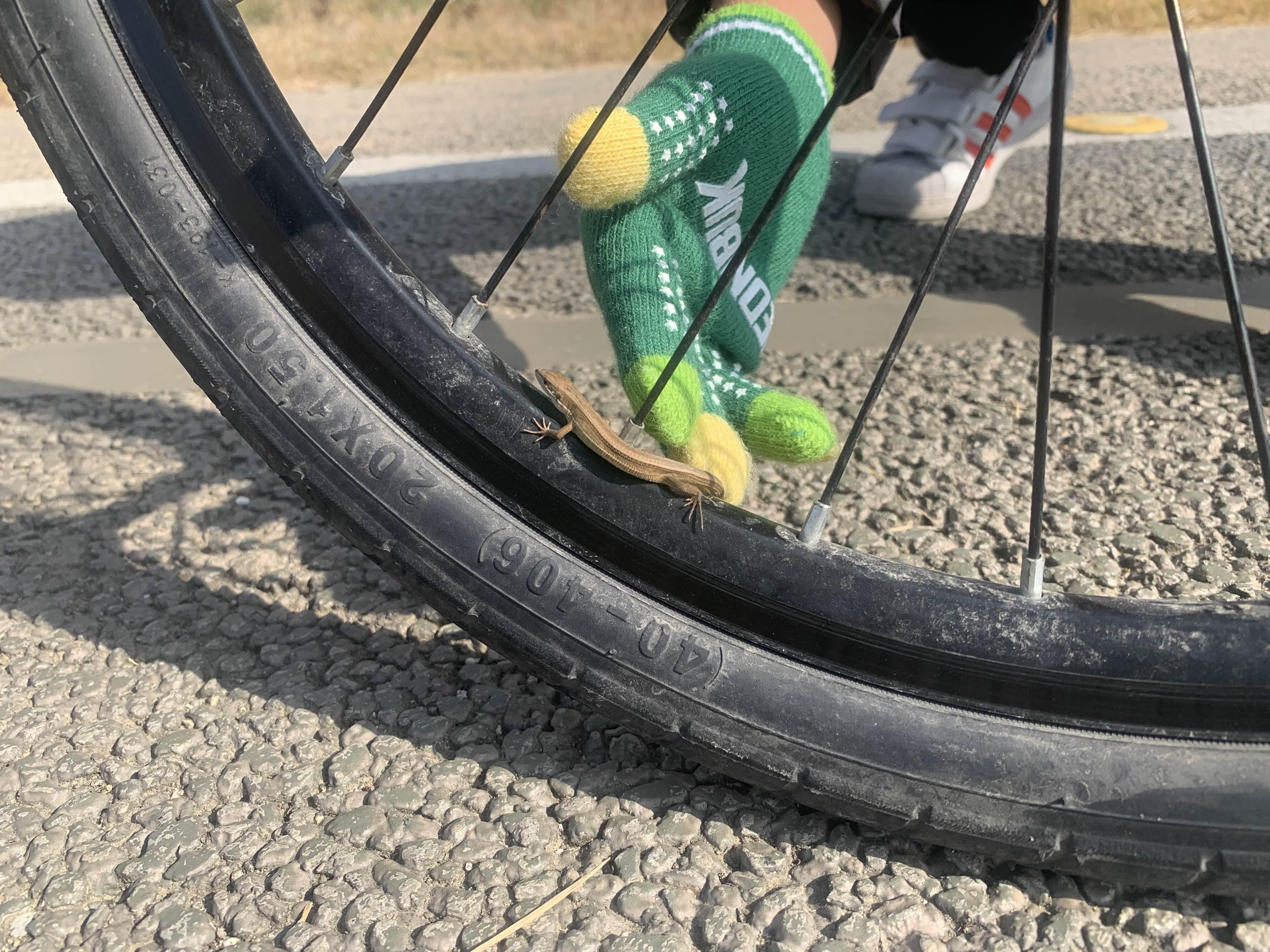 정말 오랜만에 관찰하는 도마뱀이다. 동물원이나 생태체험관에서 관람이 가능한 도마뱀을 천변 길가에서 볼 수 있다니 좀 신기했다. 이런 일반적은 지역에서 볼 수 있었던 기억이 있는데, 예전에 군대에 있을 때 백령도에서 많이 관찰했는데.... 천변이라니.ㅎㅎ 나도 신기했지만, 아이가 정말 신기해하더군요.ㅎㅎ 도마뱀이 자전거 타이어 위에 올라타더군요.