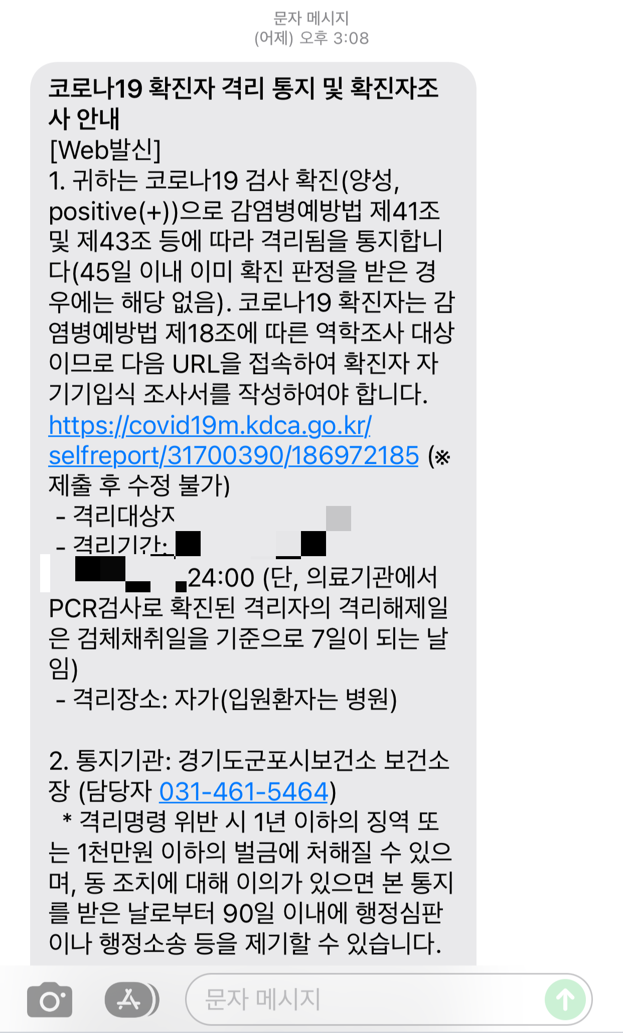 그리고 보건소 안내 문자의 "격리 장소:자가"인데... 자가의 정의가 뭐지?ㅎㅎ