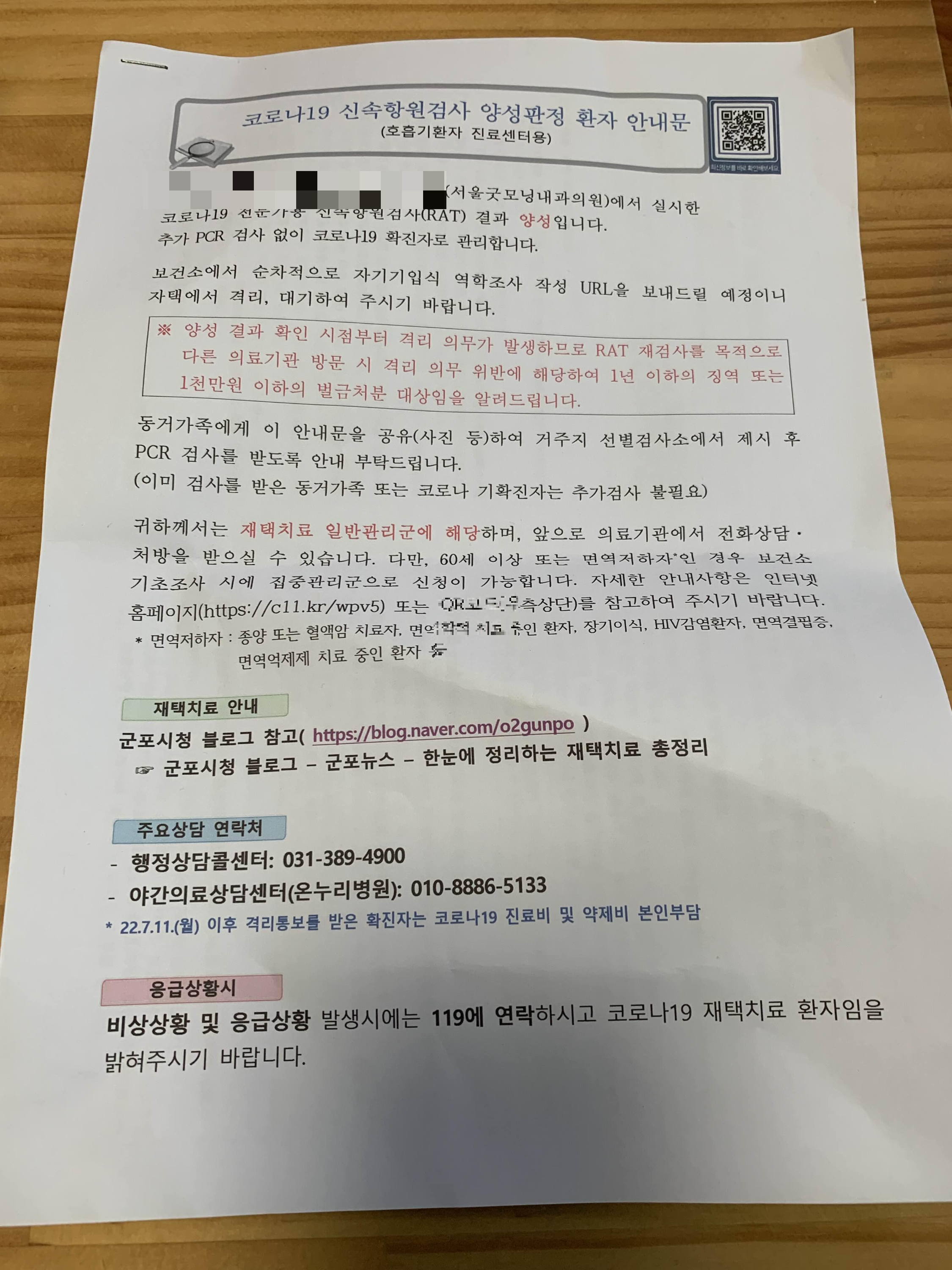 내과의원에서 코로나19 확진이라고 하면 위 안내문과 처방전을 주시더군요. 병원 진료비는 3,000원으로... 예전에는 1만 원인가 했던 거 같은데? 그때는 코로나 확인이 아니라서 그런가? 암튼 코로나 검사 비용이 저렴해진 거 같다.(보건소는 지금도 무료인가? 아시는 분 댓글!) 처방전은 약국에서 약으로 바꾸고... 집으로 향했습니다. 병원에서 검사를 받을 때만 했어도... 몸살기가 조금 있는 정도였는데.... 진료받고, 집으로 향하는데.... 으악!!! 몸살기가 점점 더 올라오더군요.