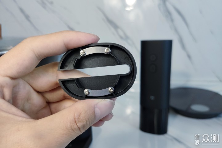 바닥 표면에는 실리콘 미끄럼 방지 다리가 장착되어 있어 주방 조리대에서 여전히 매우 안정적입니다. 배터리함도 후면에 위치해 AAA 건전지 2개를 사용하며, 공식 테스트 결과 하루 30분 사용 시 300일 사용이 가능하다.