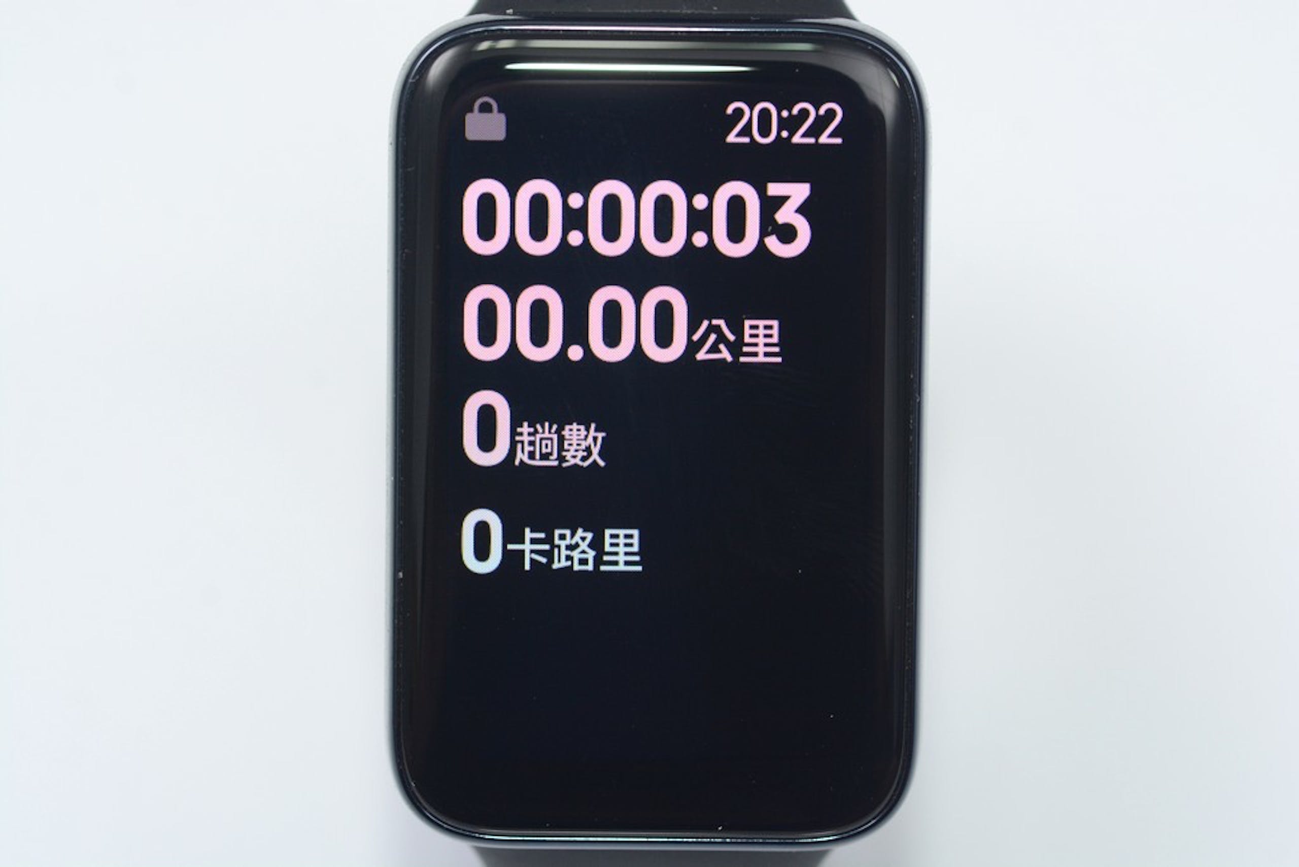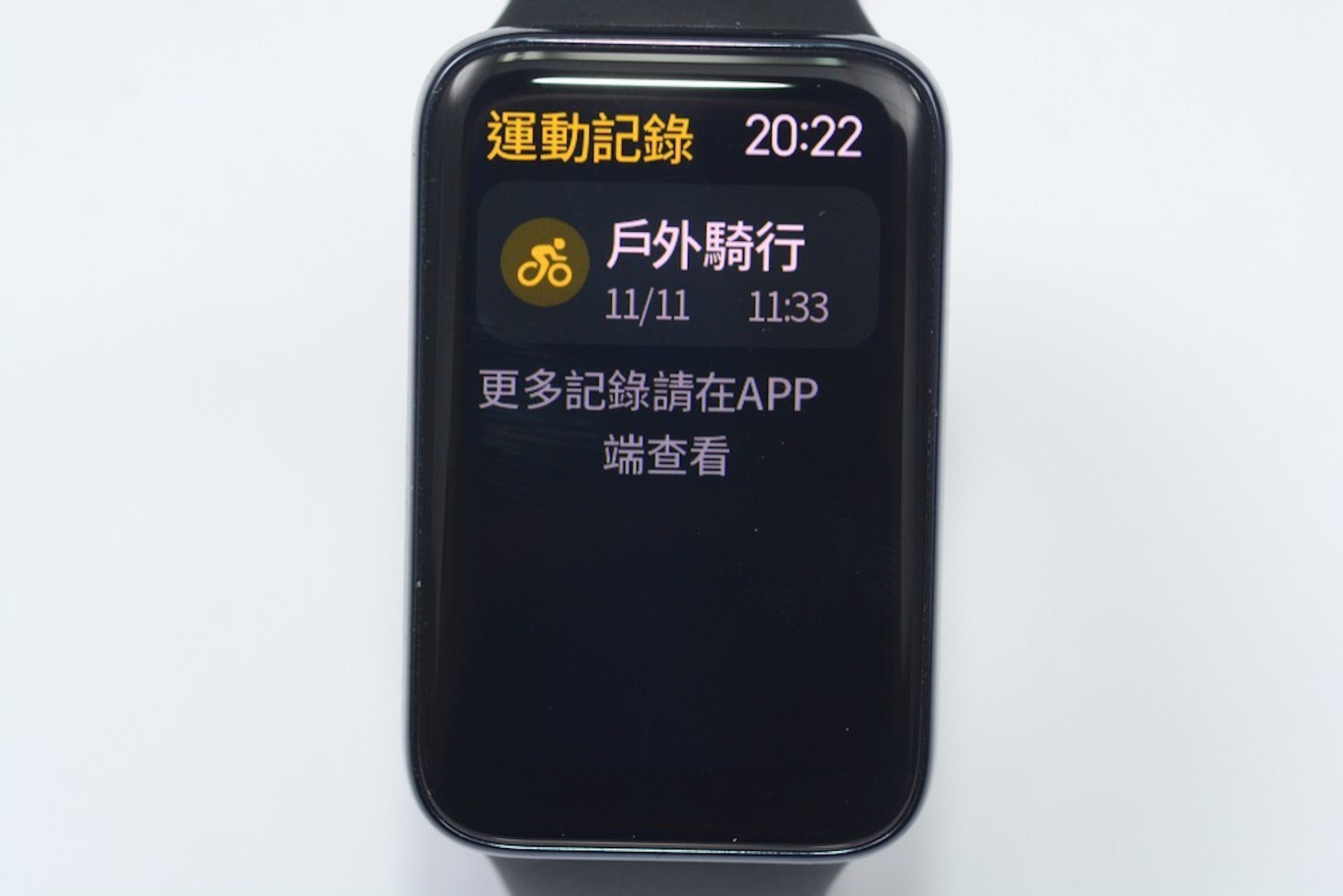 ▲운동을 마치면 휴대폰으로 보는 것은 물론, 지금 막 운동 기록도 팔찌에서 바로 확인할 수 있다.