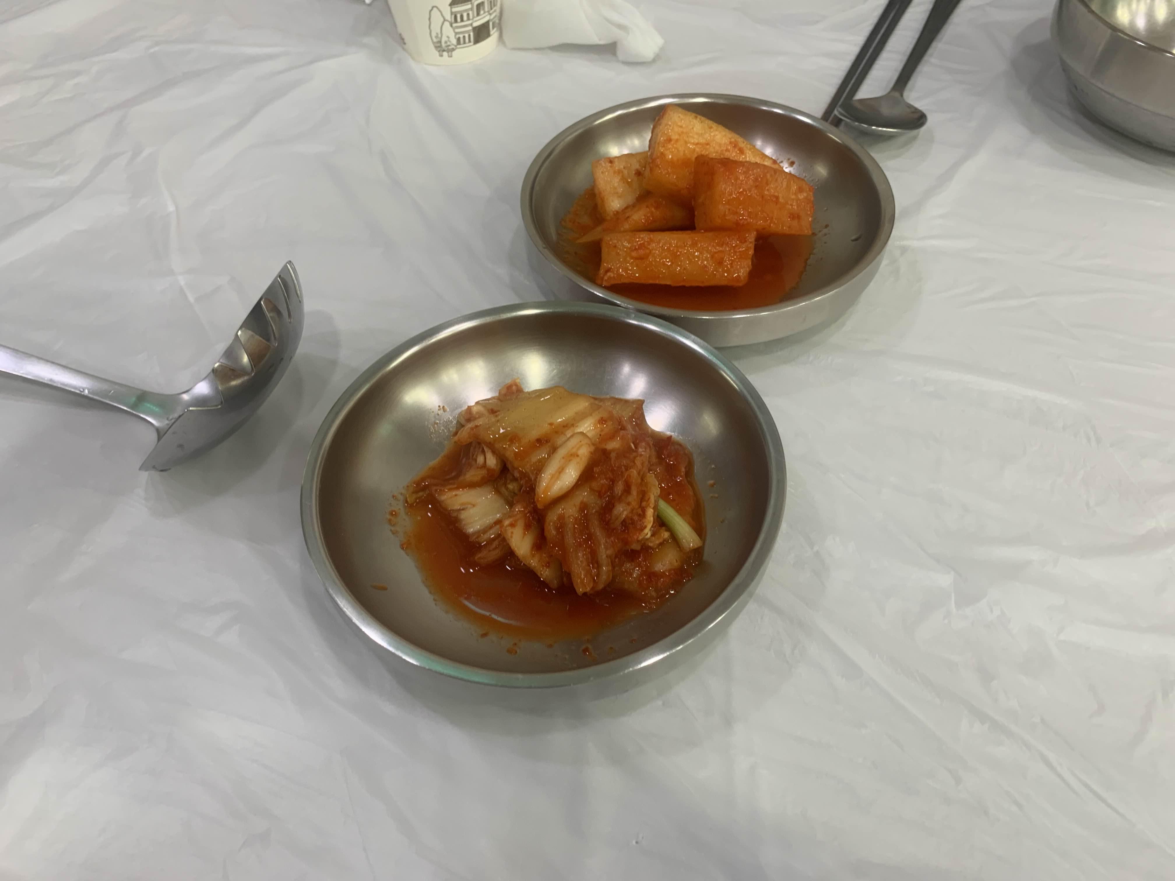 칼국수의 풍미를 한 것 올려주는 배추김치와 깍두기!!