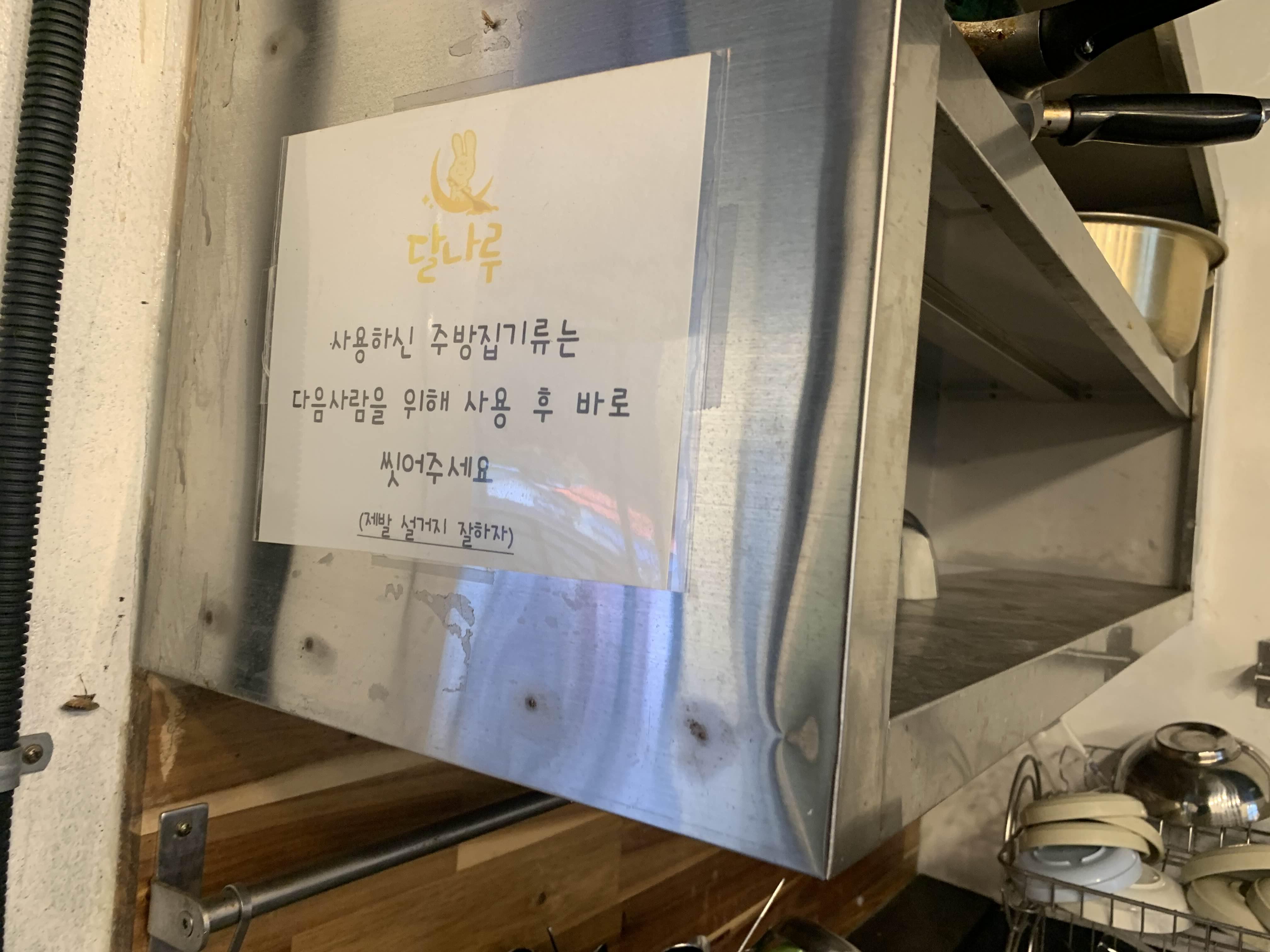 사용한 주방집기류는 셀프 설거지를 해야 하더군요.