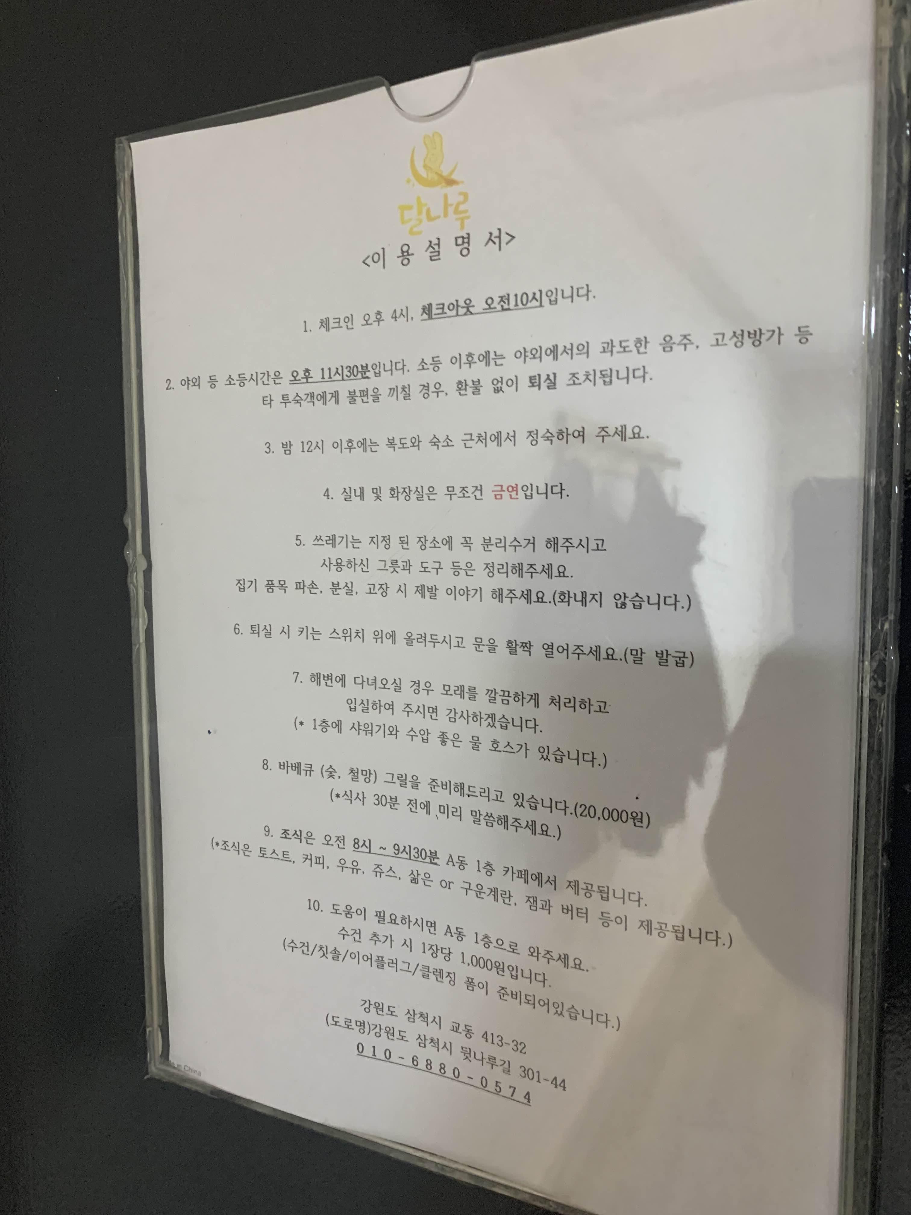 객실 내 조그마한 모니터!! 컴퓨터 모니터인 줄 알았습니다. 하지만, TV 화면이더군요.ㅎㅎ 야외 소등은 오후 11시 30분이라는 안내문.... 소등 시간이 상당히 늦더군요. 게스트하우스 특징이라 할 수 있겠네요. 빨라 잠자야 하는데.... 평일이라 사람들이 없어서 조용히 잘 것 같은.....(하지만, 여러 명은 낚시 아저씨 분들이.... 12시가 다되어서 이야기하시는;;;)
