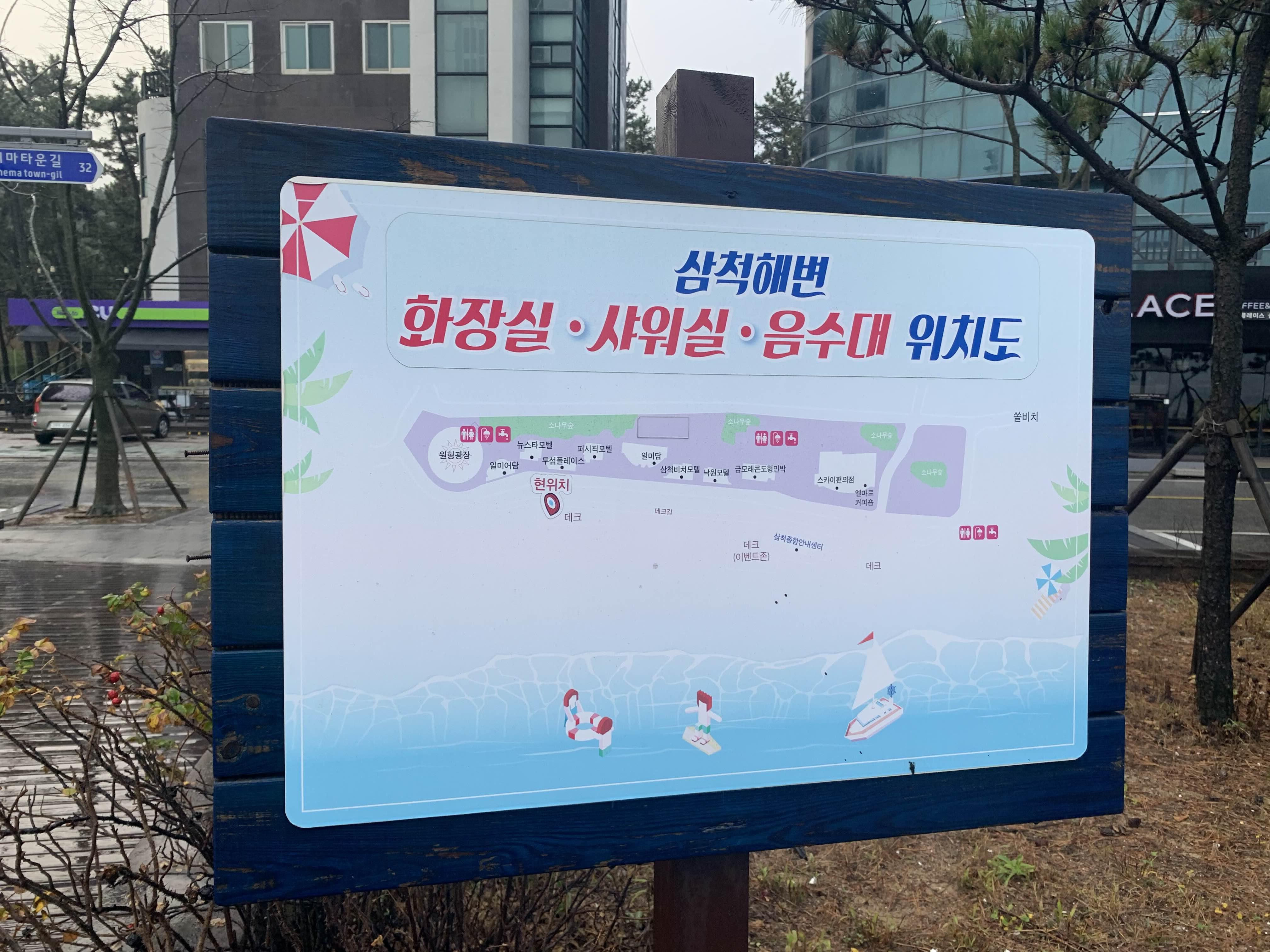해변에서 가장 필요한 장소는 화장실!!! 중간중간 위치해 있어, 편의시설이 잘 되어 있었다.