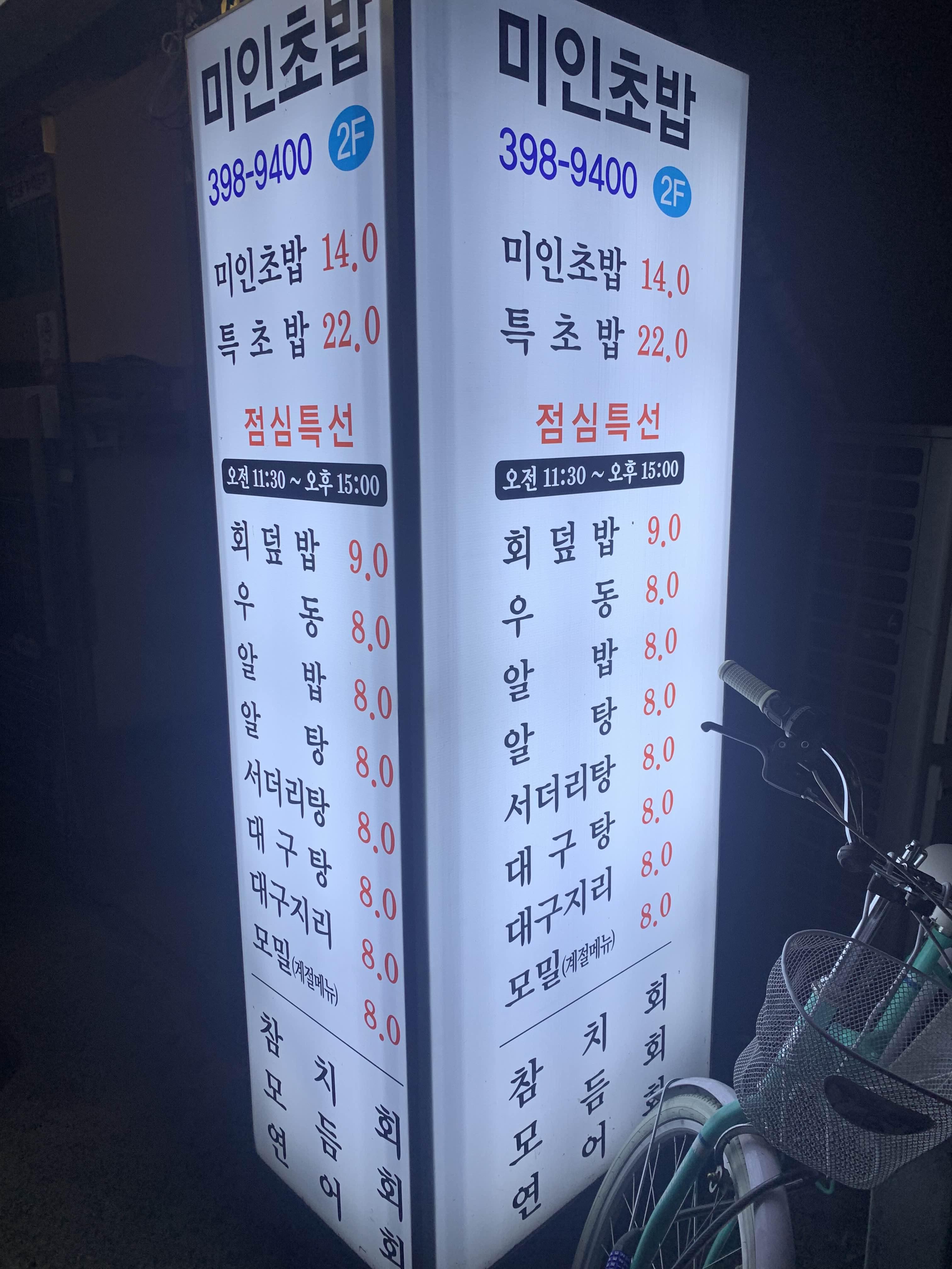 저녁식사를 위해 방문한 미인 초밥! 공영주차장 옆 롯데리아 2층에 위치한 식당이네요~