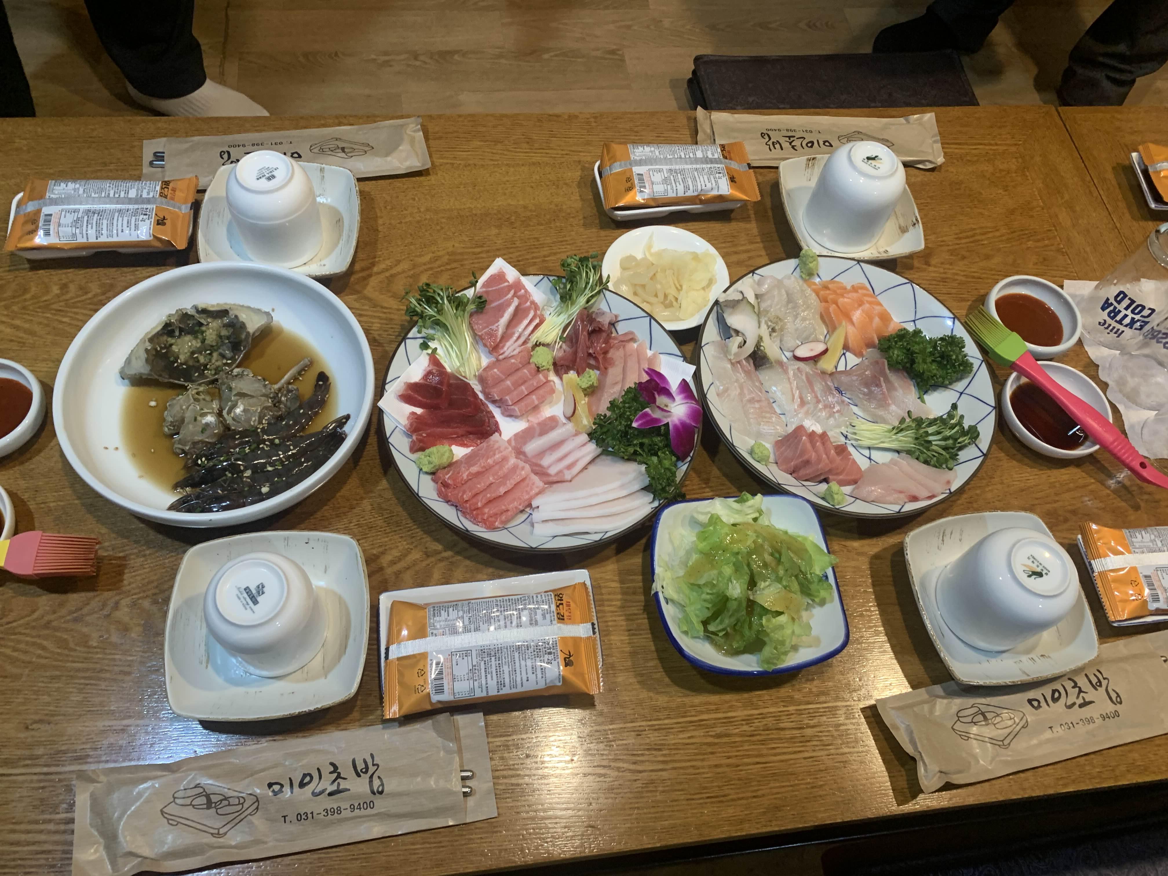 금정역 공용주차장 근처에 위치한 식당입니다. 식당은 다소 작은 식당으로 음식을 정갈하게 나오는 식당이었습니다. 회식으로 방문한 식당이라.... 메뉴판 스캔이나 주문을 별도 하지 않아서.ㅎㅎ 나오는 음식만 맛나게 먹었던 식당입니다. 참치회, 생선회, 간장게장, 새우장은 여느 식당에서나 맛볼 수 있는 수준이었으나.... 여기 초밥은 맛이 괜찮더군요.ㅎㅎ 초밥은 다시 한번 맛보기 위해 재방할 것 같습니다.