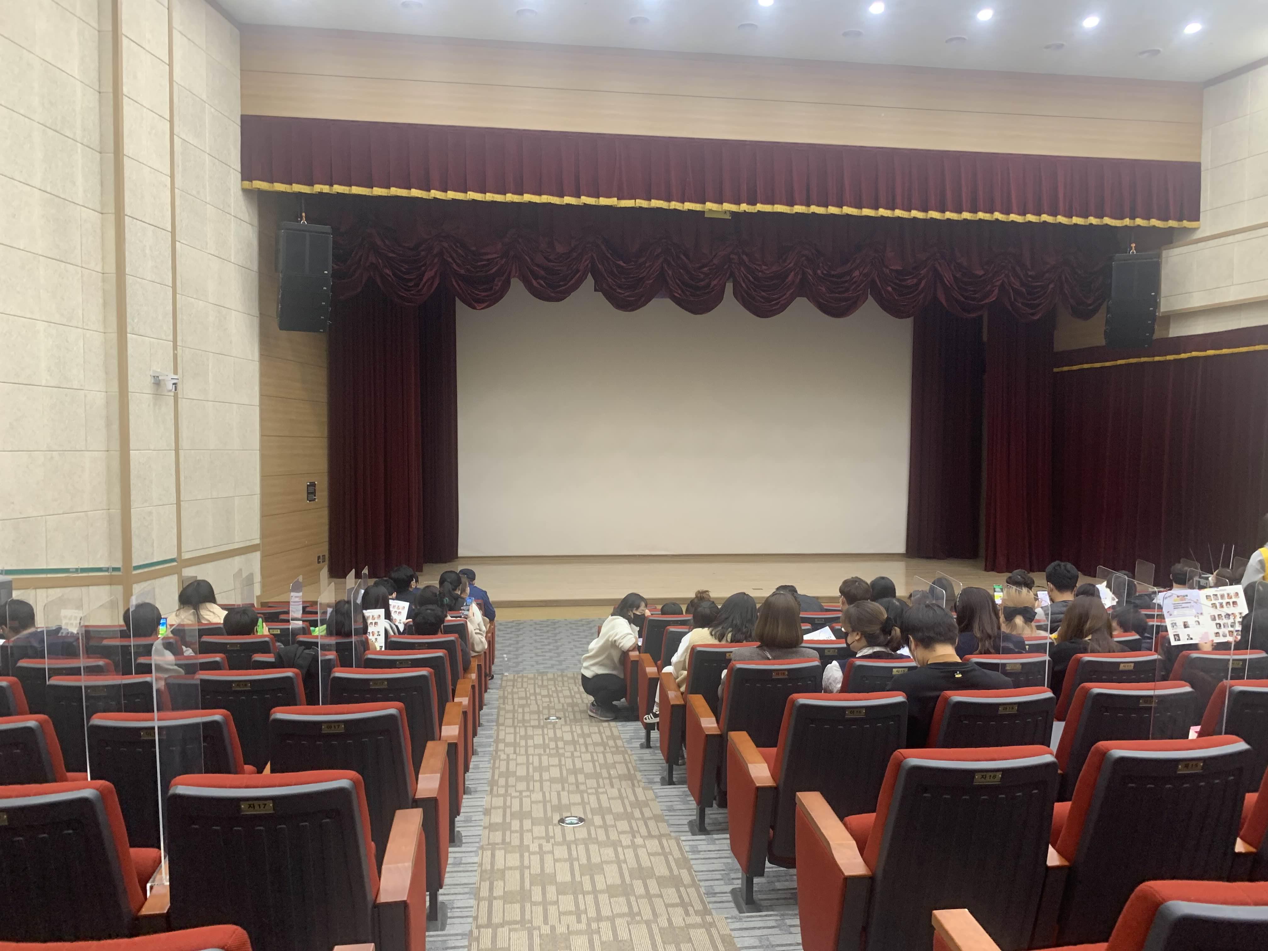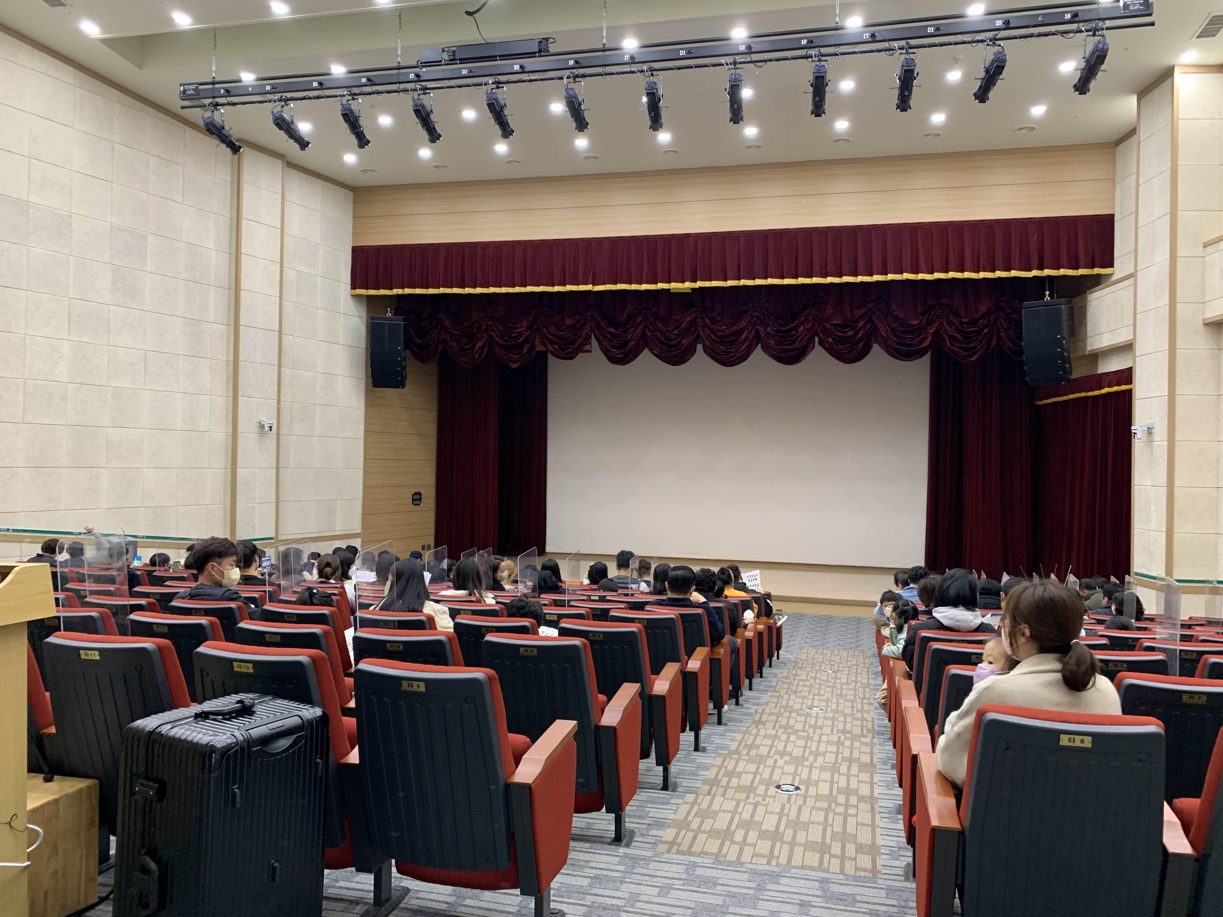 무대장치 천정! 공연장의 핵심인 조명 설치와 무대 플래카드를 설치할 수 있도록 높은 천장 고를 되어 있더군요.