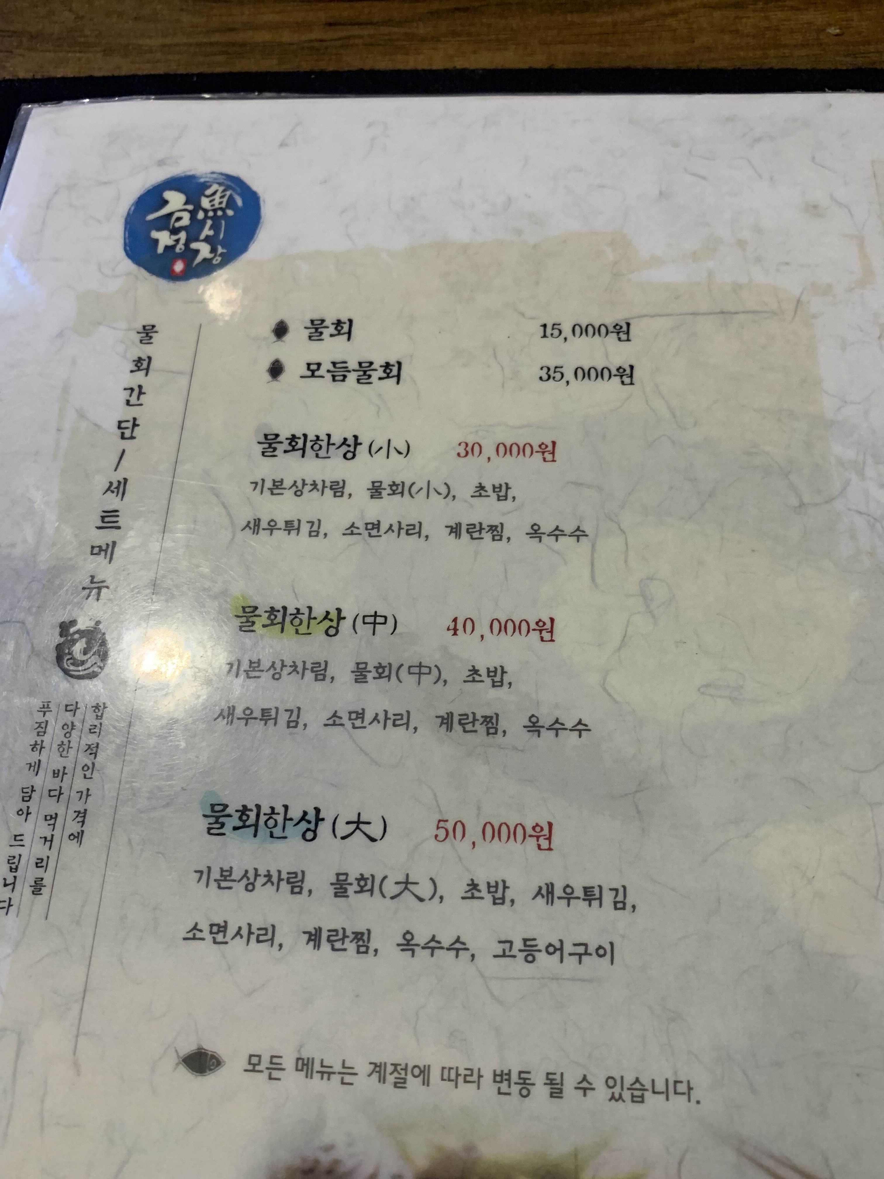 금정역에 위치한 회!!! 코스요리?를 저렴하니 맛볼 수 있는 식당입니다.