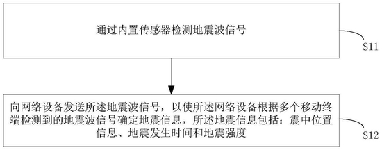요약서는 본 발명 이 내장된 센서를 통해 지진파 신호를 감지하는 단계; 지진파 신호를 네트워크 장치에 전송하여 네트워크가 장치 모바일 단말기에서 감지된 지진파 신호는 지진 정보를 결정하며 지진 정보에는 진원 위치 정보, 지진 발생 시간 및 지진 강도가 포함됩니다.