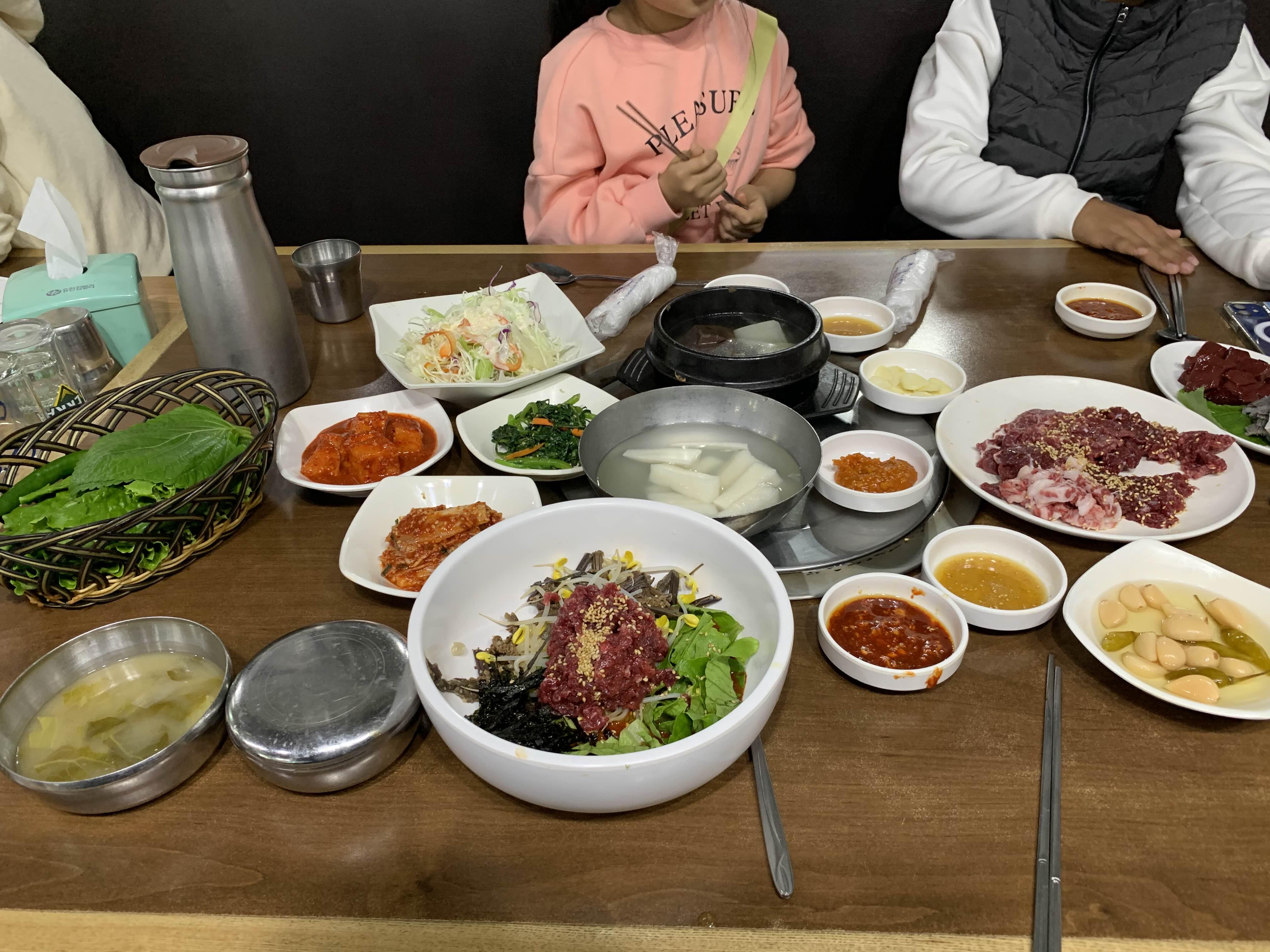 간단히 점심식사를 해결하기 위해 방문한 식당입니다. 백반 1인 식사도 가능한 거 같아.. 방문해 봄!ㅎㅎ 가격은 9천 원으로... 백반! 요즘 물가를 고려하면 비싸다고 말하기도 좀!ㅎㅎ 안내받은 테이블에 앉아서 식사를 기다리는데...얼마 안 되어 국이 먼저 나오더군요. 혼자 방문해도, 국은 냄비에 나오는데... 비주얼이 먹음직스럽더군요.ㅎㅎ 미역국에 건새우가 들어있는데... 식감이 나쁘지 않았다.그리고, 마늘이 넉넉히 들어가 있어 국물이 상당히 개운했다. 그리고, 반찬이 도착!!배추김치가 조금 나와서.. 조금 더 달라고 하니, 셀프!! 처음이라 한번 가져다주셨다.ㅎㅎ8가지 반찬에 미역국! 우선 제육볶음은.... 대량으로 볶아서 그런지... 식감은 쫄깃하지는 않고... 구내식당에서 먹는 그런 식감..