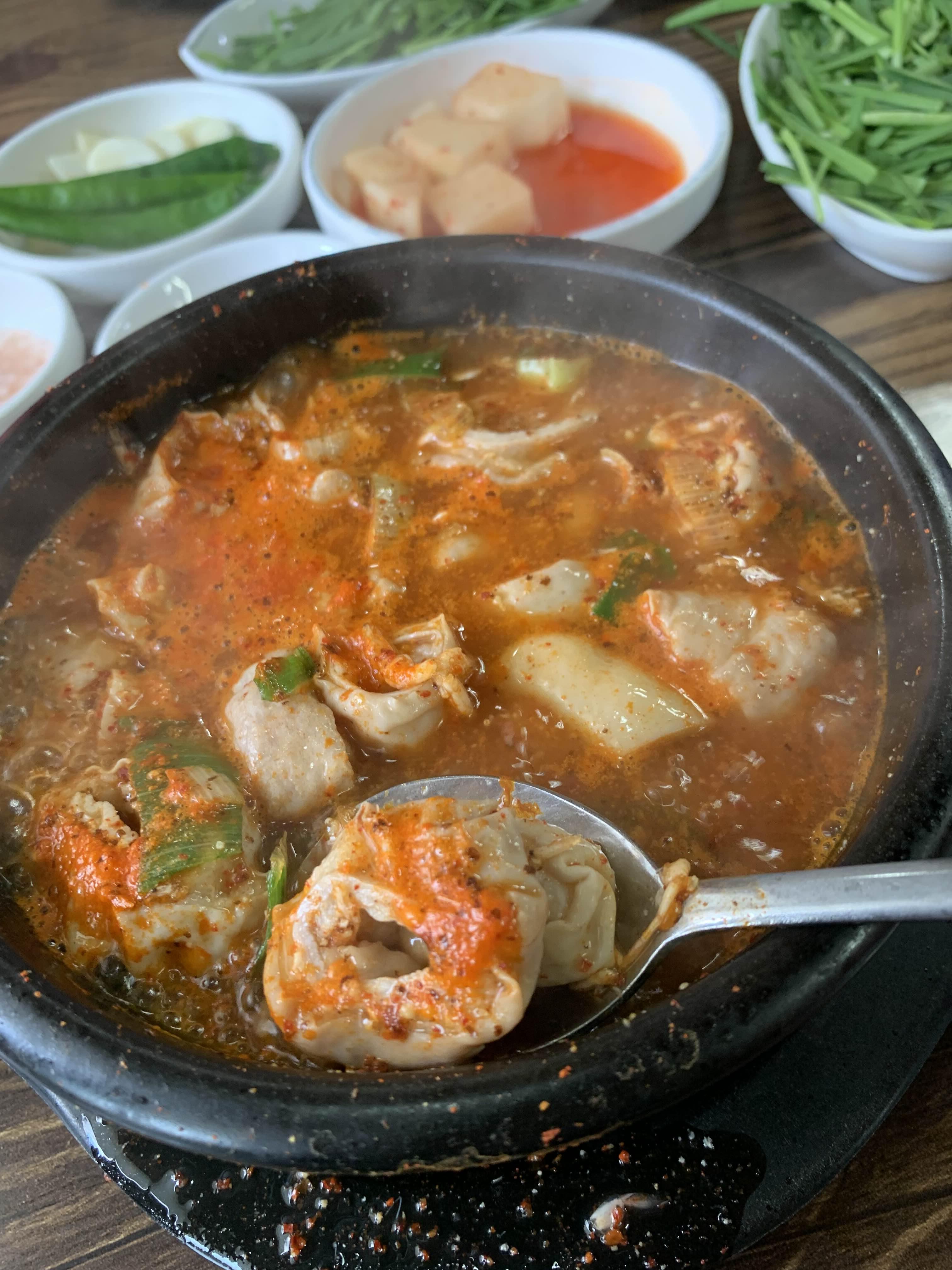 점심식사를 해결하기 위해 방문한 호성순대!!자녀가 곱창/막창 종류의 음식을 좋아해서.... 막창국밥이나 맛볼 겸? 방문한 식당입니다. 일전에 순대국밥을 맛나게 먹었던 기억이 있는 식당입니다. 예전부터 유명했던 식당이라.... 막창국밥은? 어떤지? 궁금하기도 하고... 맛있을 거 같아 기대감을 가지고 방문한 식당입니다. 근처 불법주차로 인한, 안내문이 식당 출입구에 붙어 있더군요.ㅎㅎ 막창 국밥을 맛보기 위해 방문하였기에... 막창국밥 11,000원 주문했습니다. 음식을 주문하면... 밑반찬으로 상추무침과 깍두기...깍두기는 그냥저냥....상추무침은 맛이 괜찮음!ㅎㅎ 주문하고 얼마 안되어... 막창국밥이 나왔습니다. 건더기가 두북하게 들어가 있더군요.순댓국에 별도의 양념을 추가하지 않아..