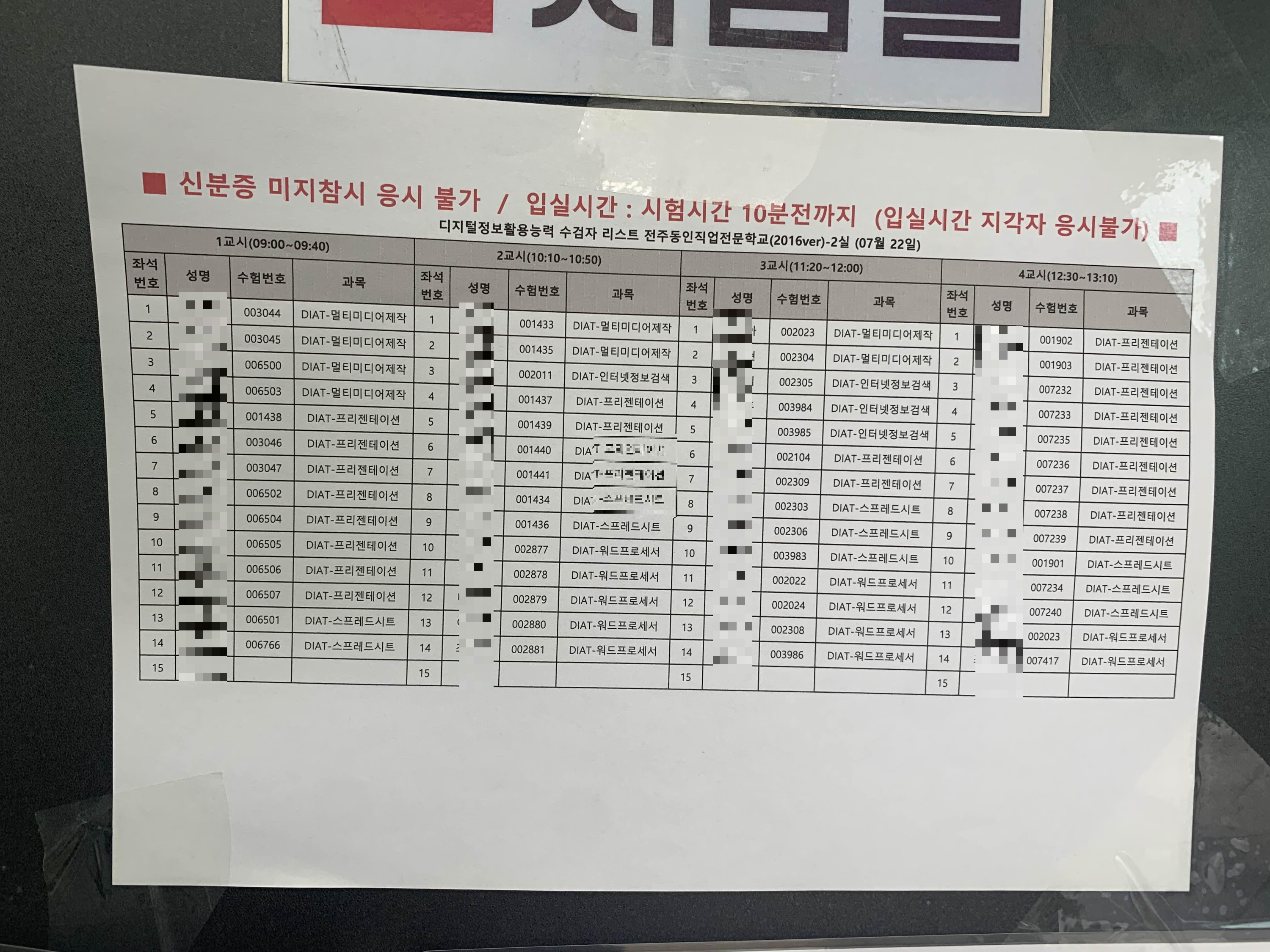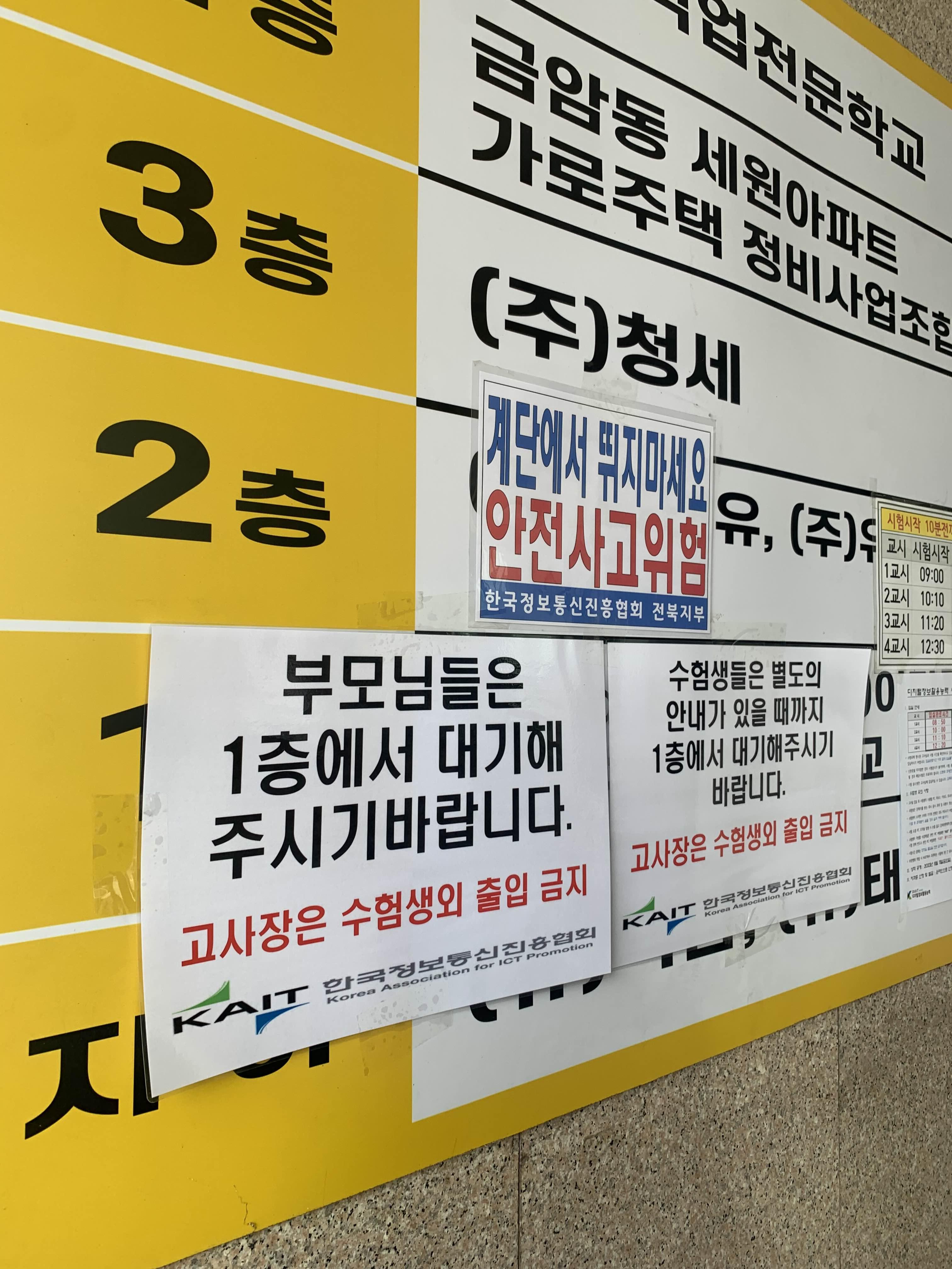 시험장은 동인직업전문학교..... 전북대학교(공설운동장 길 건너편) 대학로에 위치한 학교? 에 시험을 본다고 하더군요.